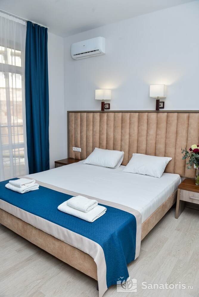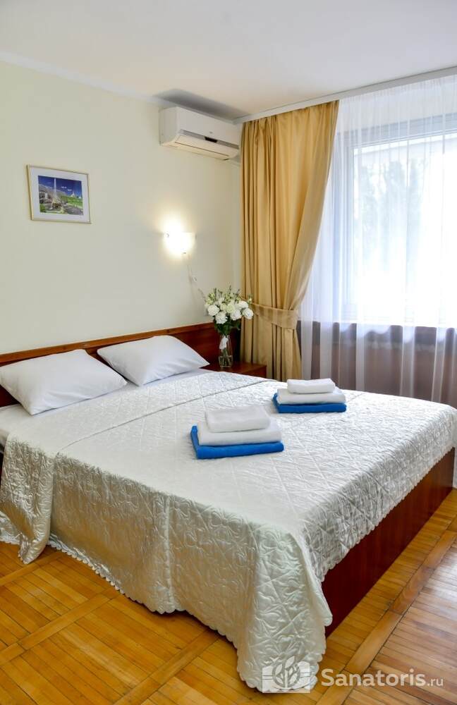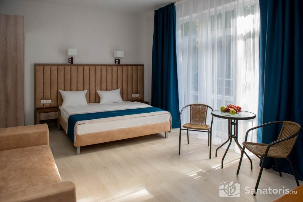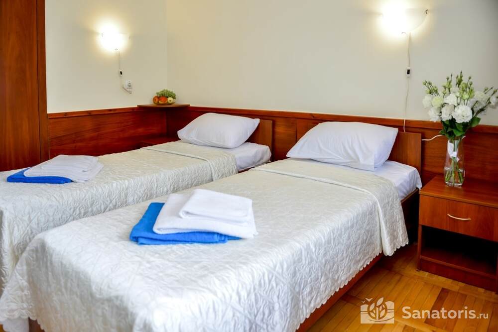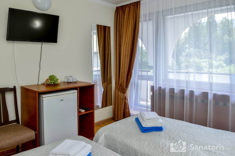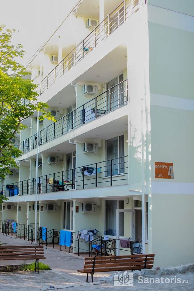 Пансионат, построенный в 1990 году, состоит из 5 корпусов и вмещает 400 гостей. Жилой фонд представлен комфортабельными номерами, которые оборудованы санузлами, всей необходимой мебелью и техникой, включая ТВ, холодильник и сплит-систему.