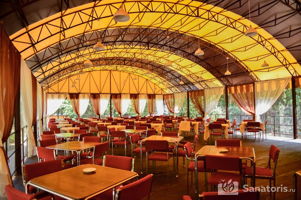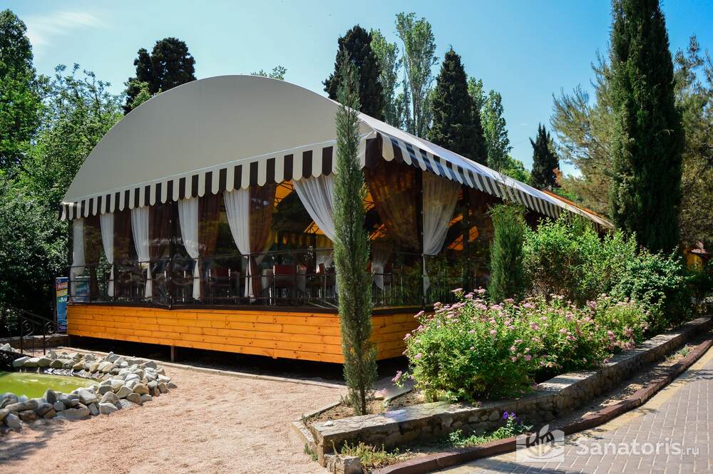 Особого внимания заслуживает уникальная система питания в пансионате. Отдыхающих ждет уютная столовая, расположенная в деревянном срубе с панорамным видом на местные красоты. Для тех, кто предпочитает более изысканные блюда на набережной работает ряд кафе и ресторанов.