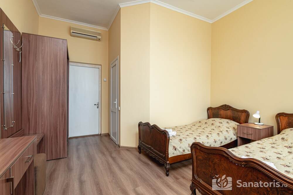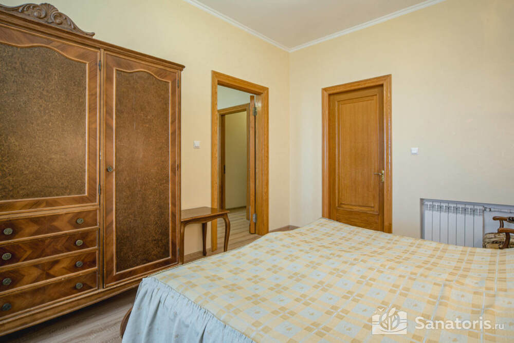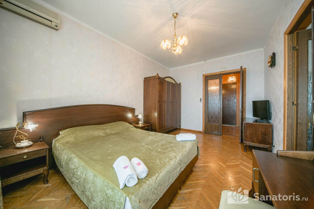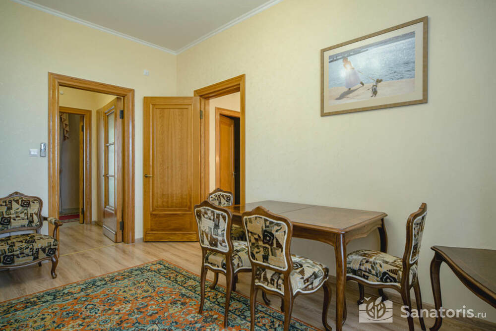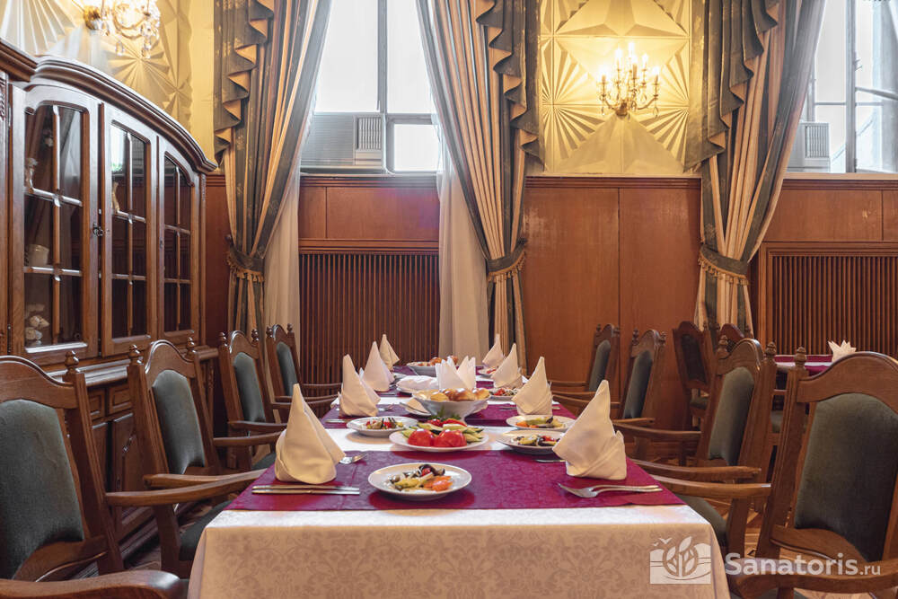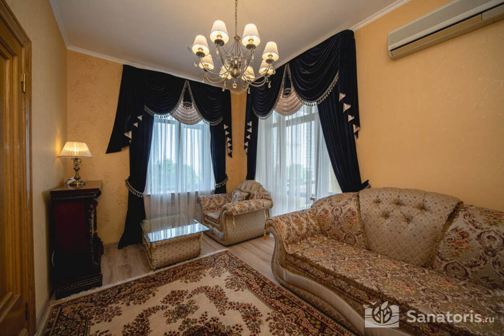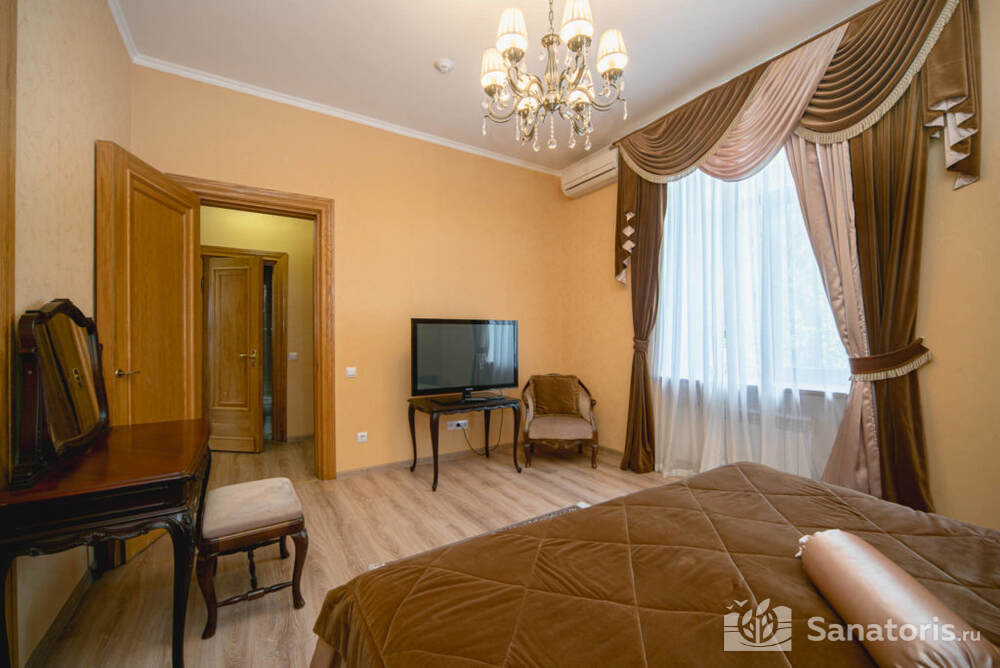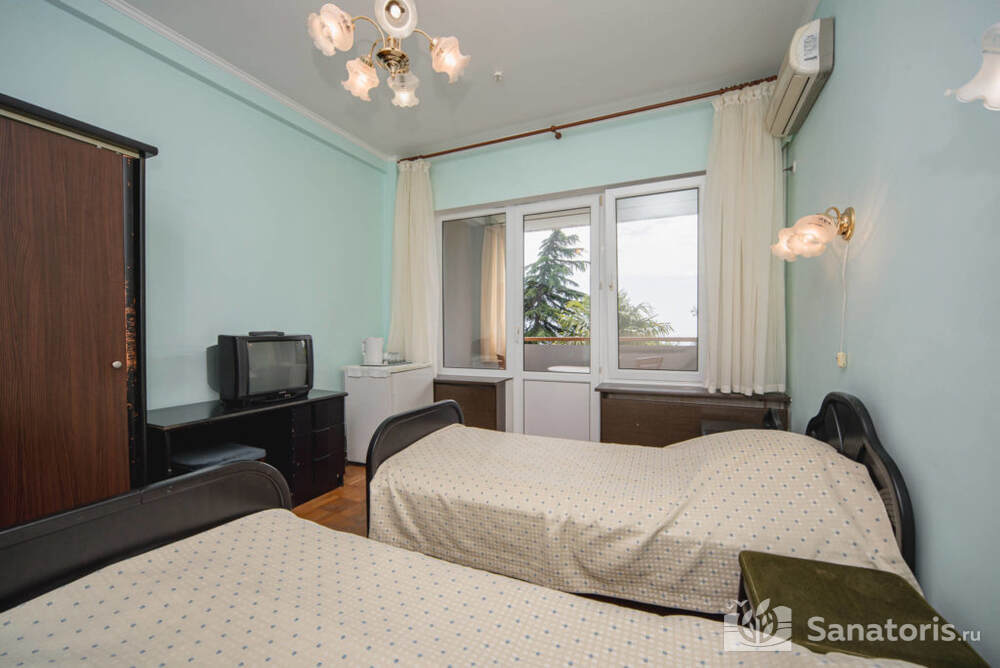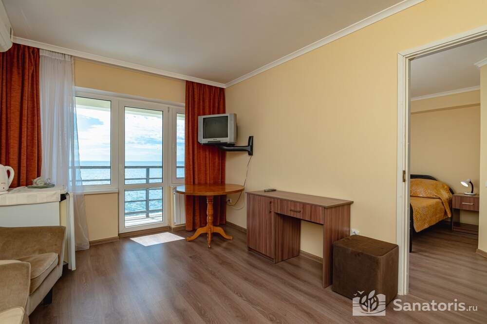 Номера комфортные и эконом-класса. В качестве досуга предлагается плавание в бассейне. На территории санатория их два, с морской и пресноводной водой. Имеется ванна с гидромассажем, а также подводными гейзерами. Можно посетить баню, поиграть в теннис или бильярд, посетить спортивную площадку. На территории здравницы работает библиотека и кинозал. Регулярно для гостей санатория организуются увлекательные экскурсии.