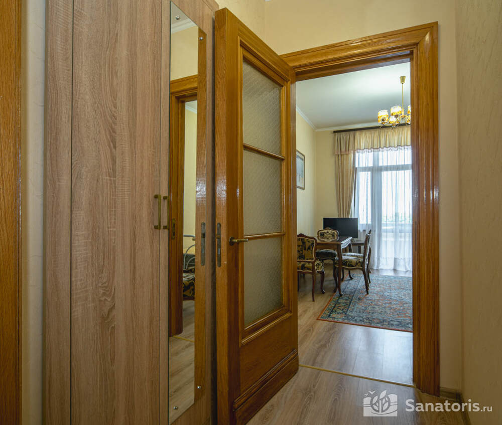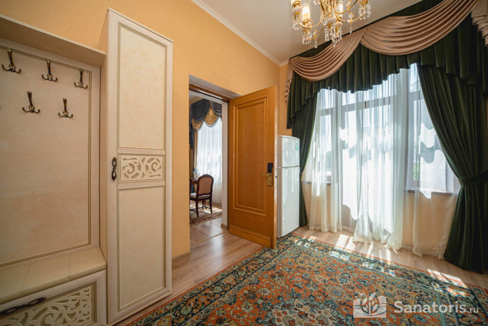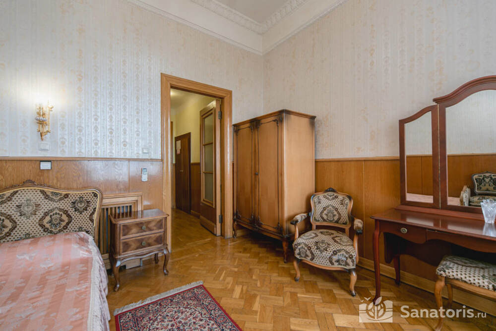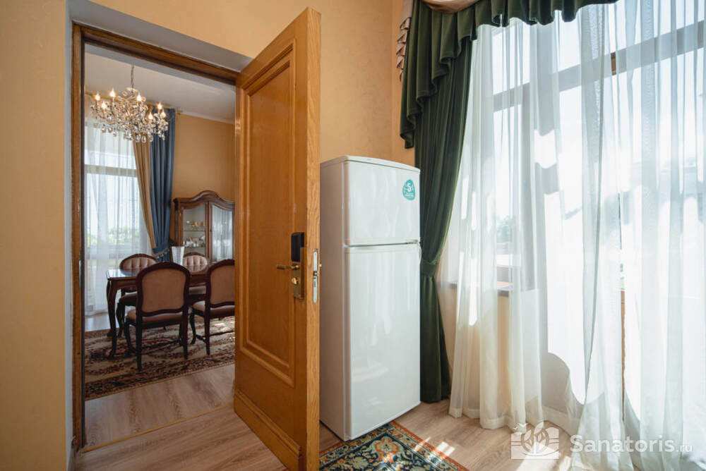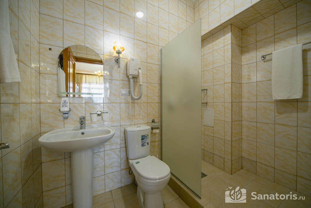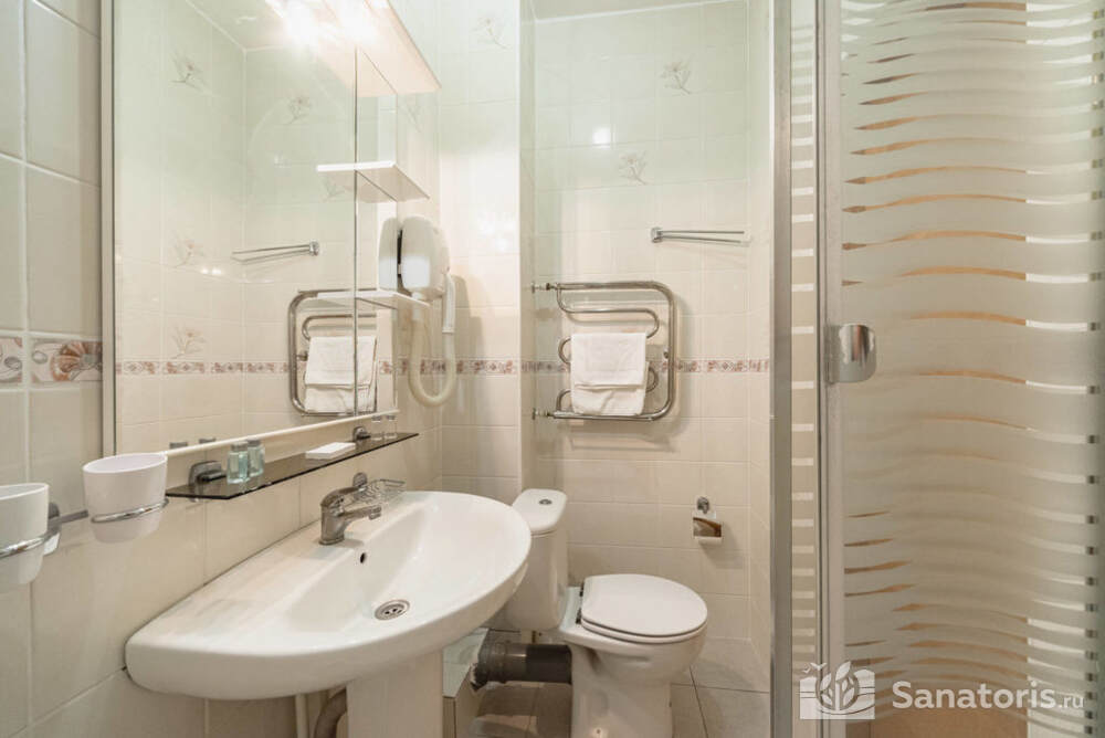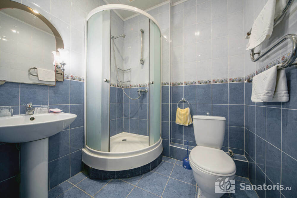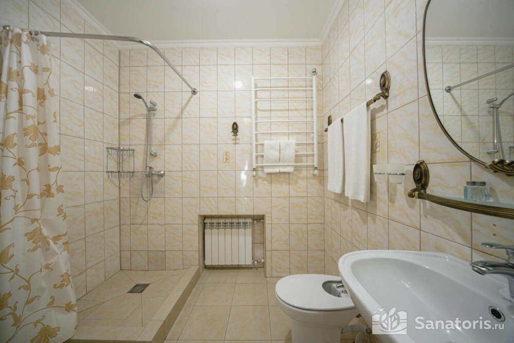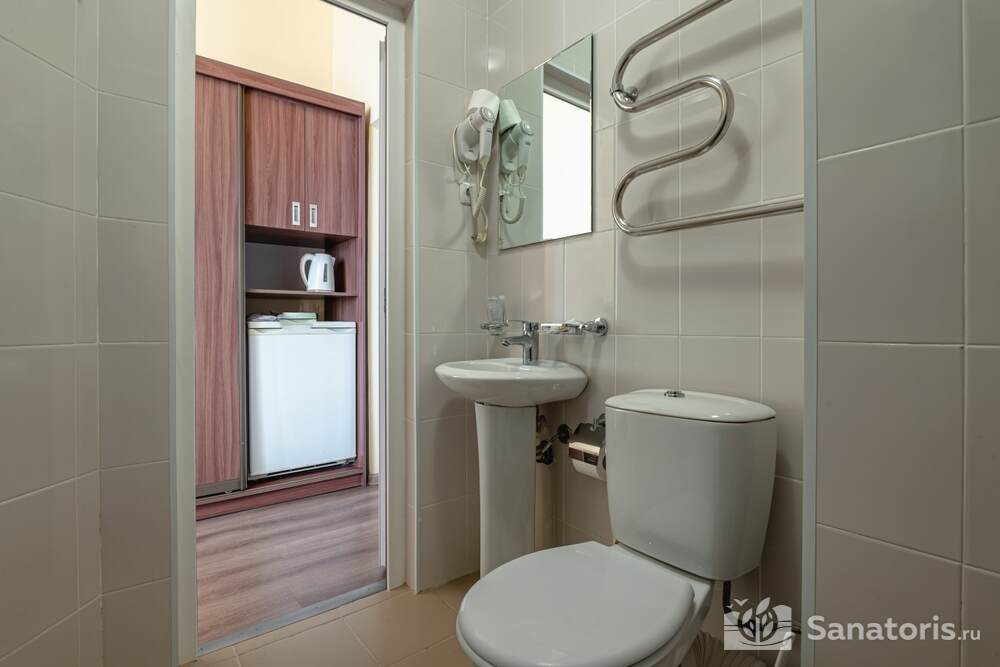 Номера комфортные и эконом-класса. В качестве досуга предлагается плавание в бассейне. На территории санатория их два, с морской и пресноводной водой. Имеется ванна с гидромассажем, а также подводными гейзерами. Можно посетить баню, поиграть в теннис или бильярд, посетить спортивную площадку. На территории здравницы работает библиотека и кинозал. Регулярно для гостей санатория организуются увлекательные экскурсии.