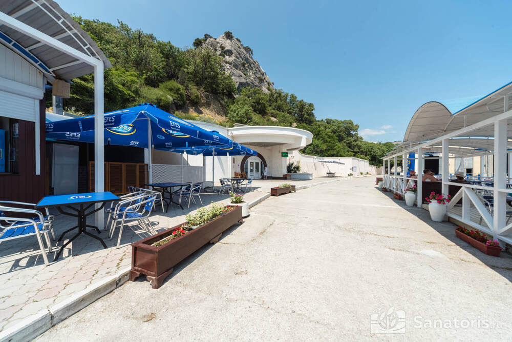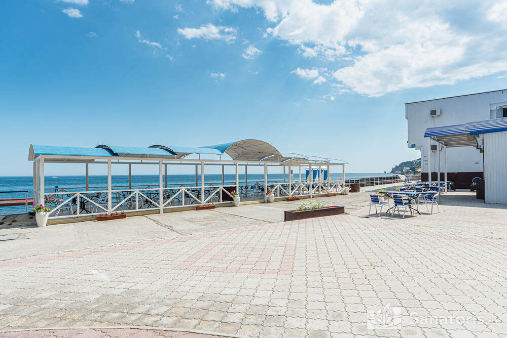 Питание в здравнице Нижняя Ореанда заказное. Это позволяет отдыхающим выбрать блюдо в соответствии с личными предпочтениями. Помимо столовой, которая больше напоминает ресторан, работают кафе. Одно из них есть на пляже, где можно перекусить. Для детей также организовано много развлечений. Если родителям надо сходить на процедуру, они могут на некоторое время оставить ребенка в игровой комнате. Даже на пляже есть аниматоры, которые развлекают детей.