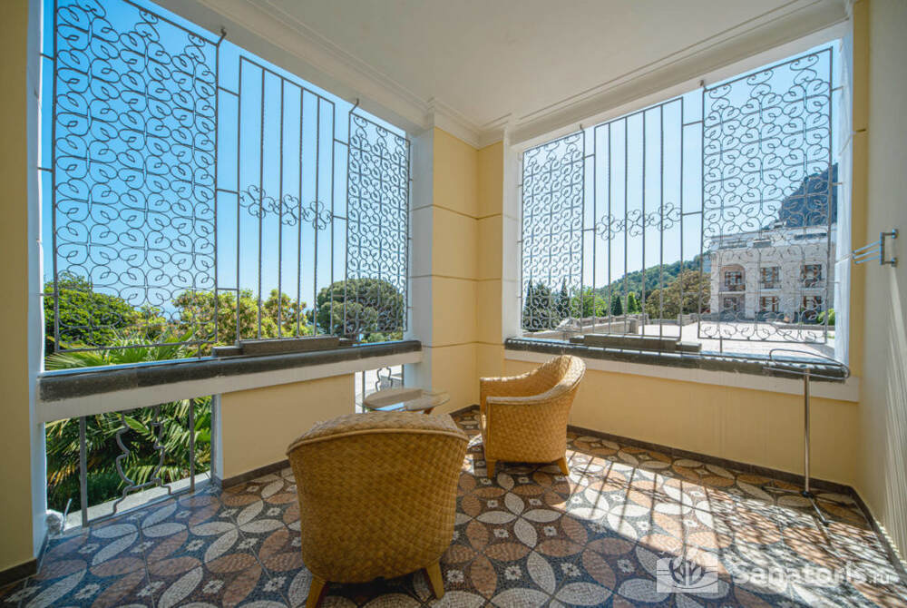 Здание здравницы построено в царском стиле. Оно несколько раз было реконструировано. В этих местах много лет назад жила семья Романовых. Климат здесь субтропический. А большое количество хвой делает воздух еще более полезным. Для тех, кто страдает проблемами, связанными с органами дыхания, а также сосудистой и сердечной системами, здесь идеальные условия.