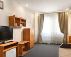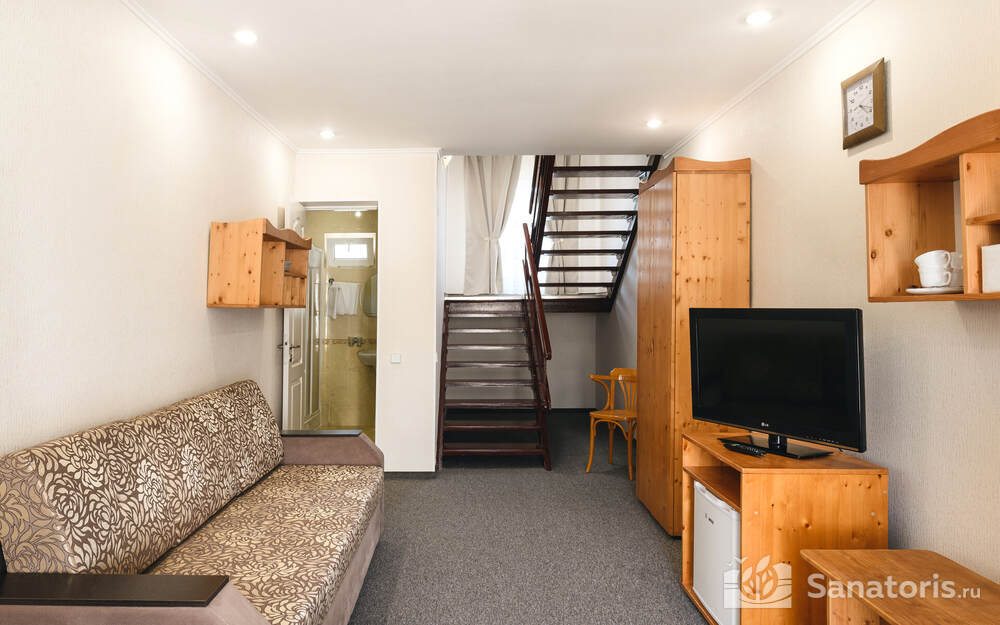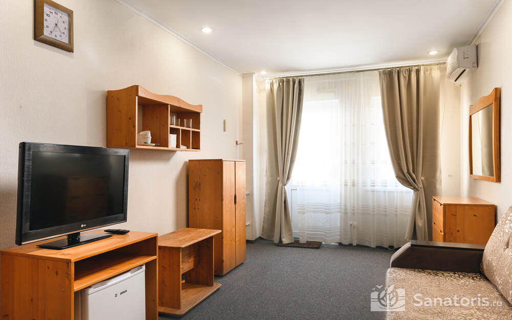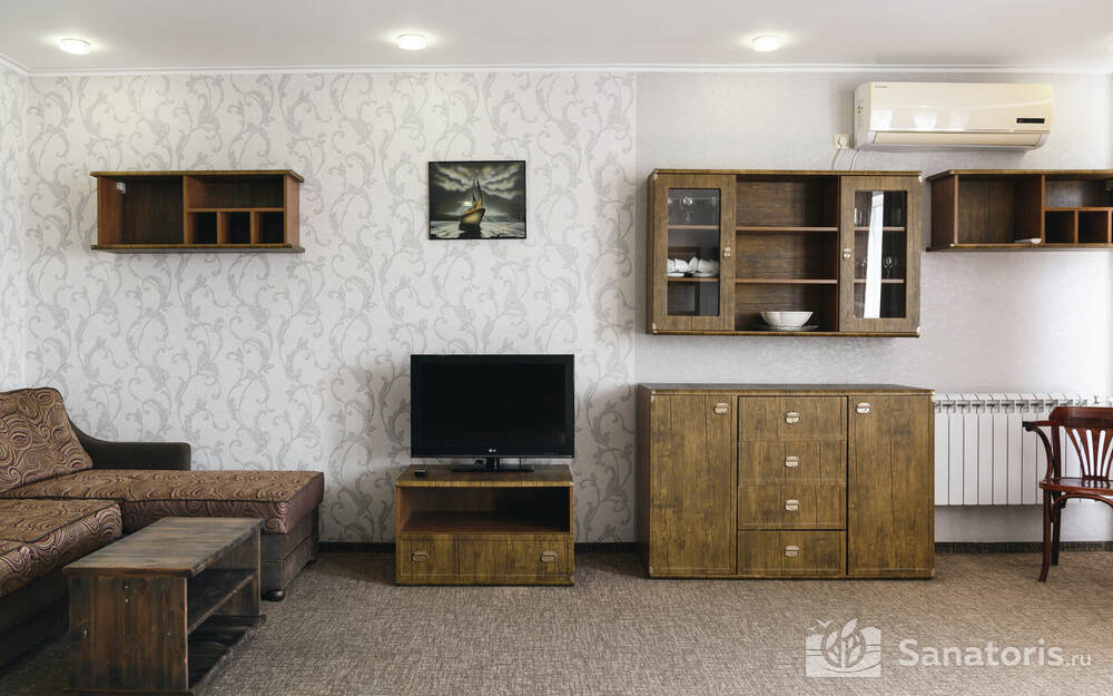 В санатории созданы все условия для проживания. 1 и 2 корпуса подвергались капитальному ремонту 10 лет назад. Гостям предлагаются различные по комфортности номера. Независимо от категории все они имеют душ (либо ванну), санузел, оборудованы холодильником и телевизором. Номера класса комфорт оснащены системами климатконтроля и сейфами, помещения самого высокого класса – еще электрочайниками, утюгами. У санатория имеется своя скважина с артезианской водой, откуда осуществляется горячее водоснабжение.