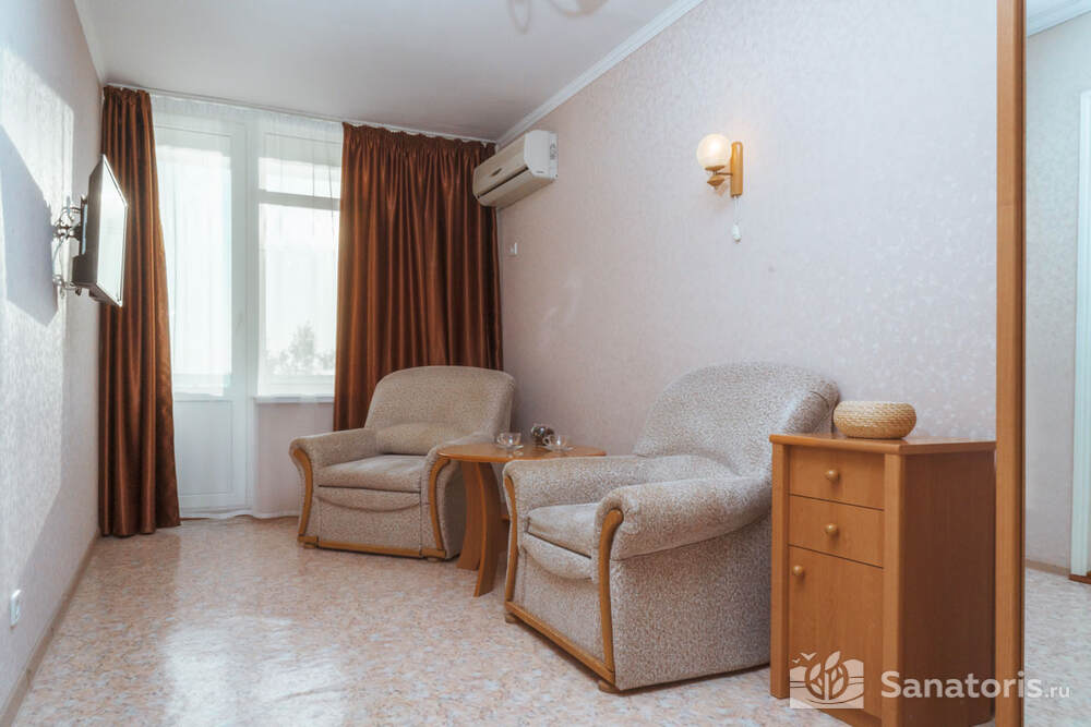 Санаторий подходит для тех, кто страдает от хронических заболеваний и нуждается в профилактическом комплексе мер. Здесь работает медицинский центр, предлагающий целебную грязь, воды и рапы Сакского озера. Санаторий оборудован качественным диагностическим оборудованием. Опытные специалисты проводят множество оздоравливающих процедур – массаж, гидромассаж, лечение грязью, бальнеологические процедуры. После санаторно-курортного лечения вы почувствуете себя обновленным и полным сил.