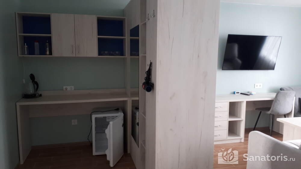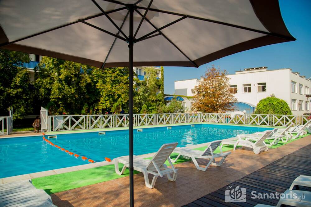В санатории есть отдельный бассейн с опцией подогрева, доступный для клиентов комплекса. Также работают парикмахерская, массажный кабинет, а прямо под открытым небом находятся многочисленные тренажеры. Если вы любите проводить отдых в движении, то в вашем распоряжении – бильярд, настольный теннис и спортплощадки.
