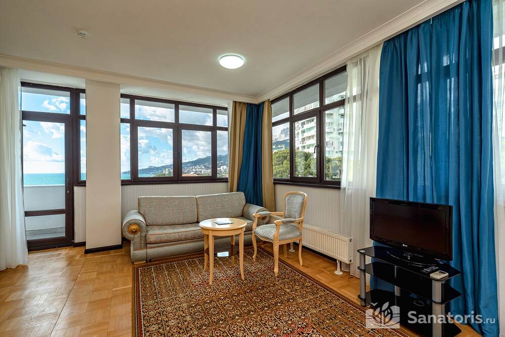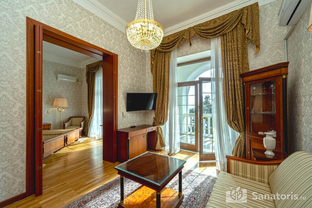 Первый корпус состоит из 4 ярусов. Он находится на территории парка в 300 метрах от береговой линии. Именно это здание раньше служило охотничьим домиком известному князю. После реконструкции он превратился в корпус туристической базы. В корпусе №1 представлены комфортабельные апартаменты и номера класса «де люкс».