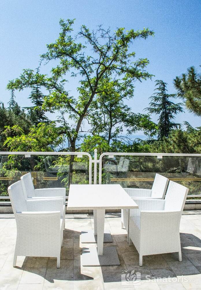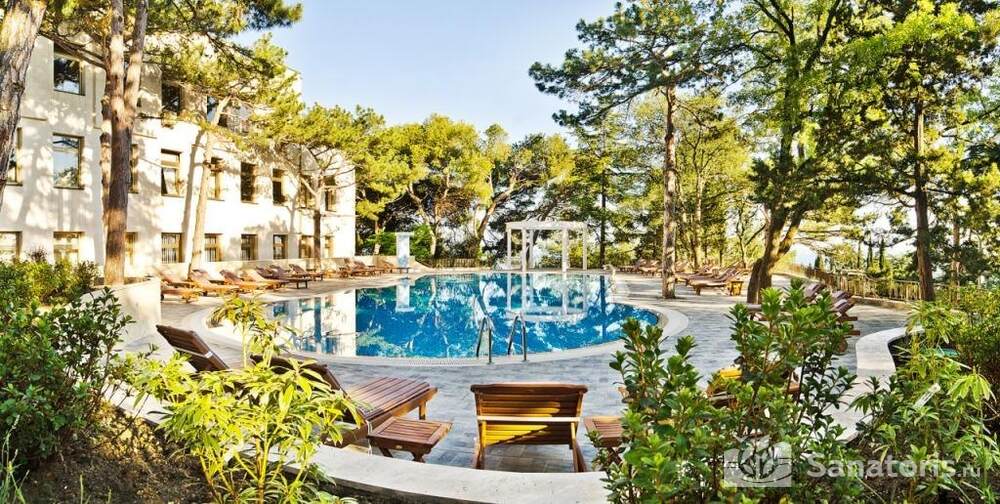 Благодаря сосновым деревьям эта территория отличается чистейшим лечебным воздухом. От самого берега моря произрастают величественные сосны. Туристический комплекс обладает уникальной лечебной базой. Здесь гостям предоставляют разные виды спа услуг, которые помогут качественно оздоровиться и отдохнуть. Приехать на базу можно в любое время года.