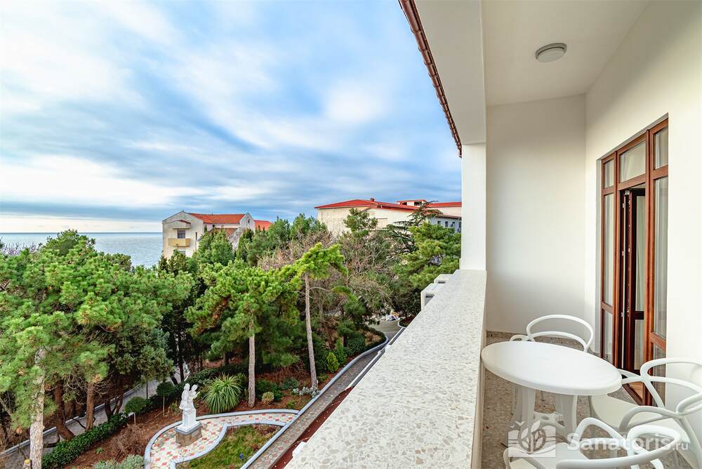Третий корпус состоит из 5 ярусов. Он находится в 80 метрах от моря. Для спуска к пляжу предусмотрены парковые аллеи. Здесь представлены апартаменты различного класса комфортабельности.