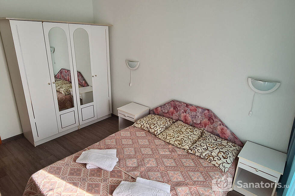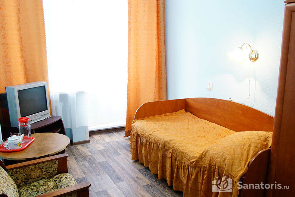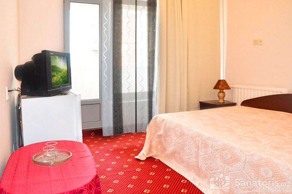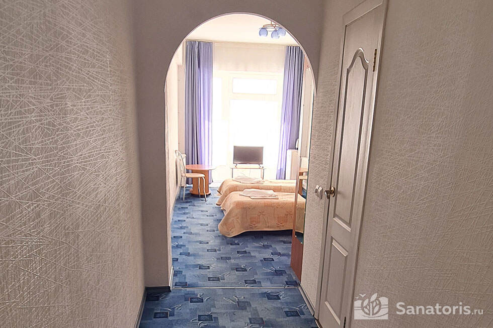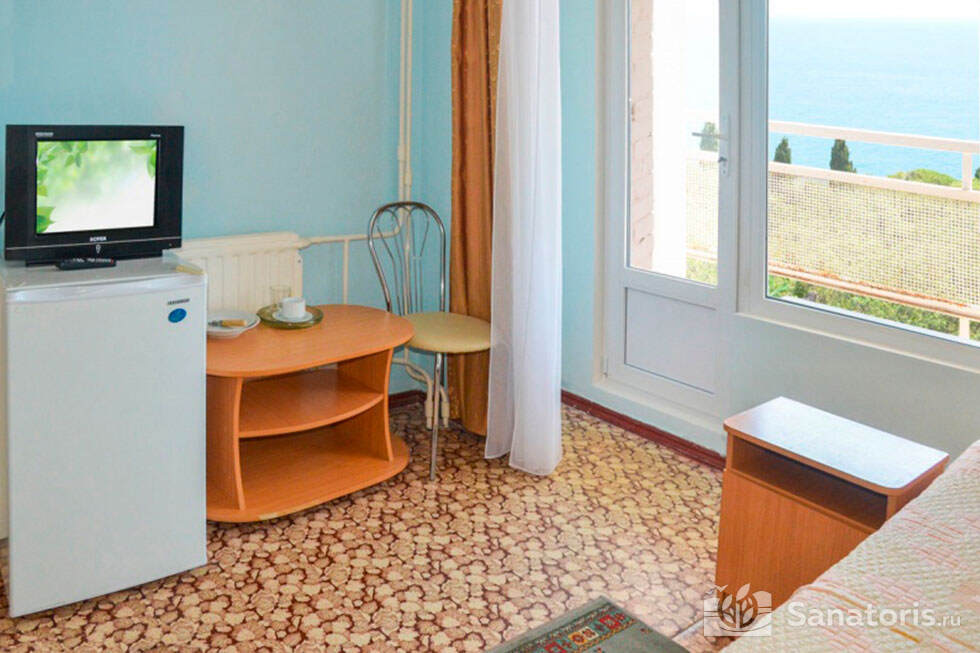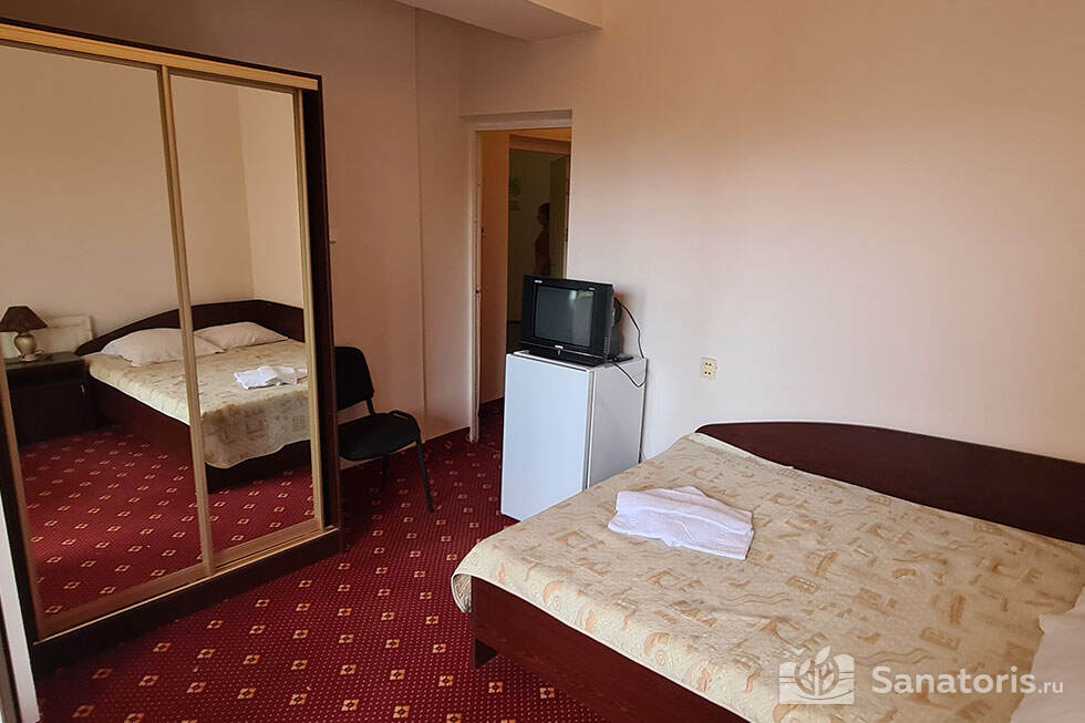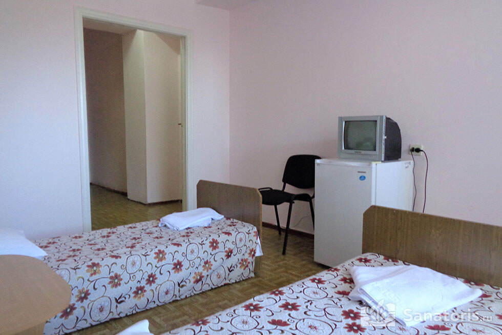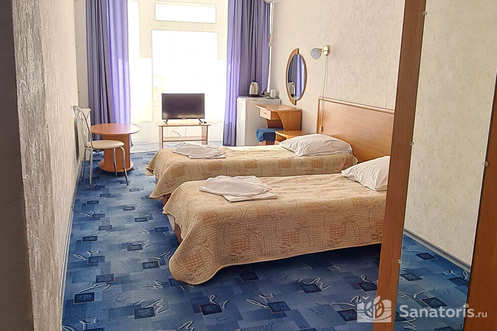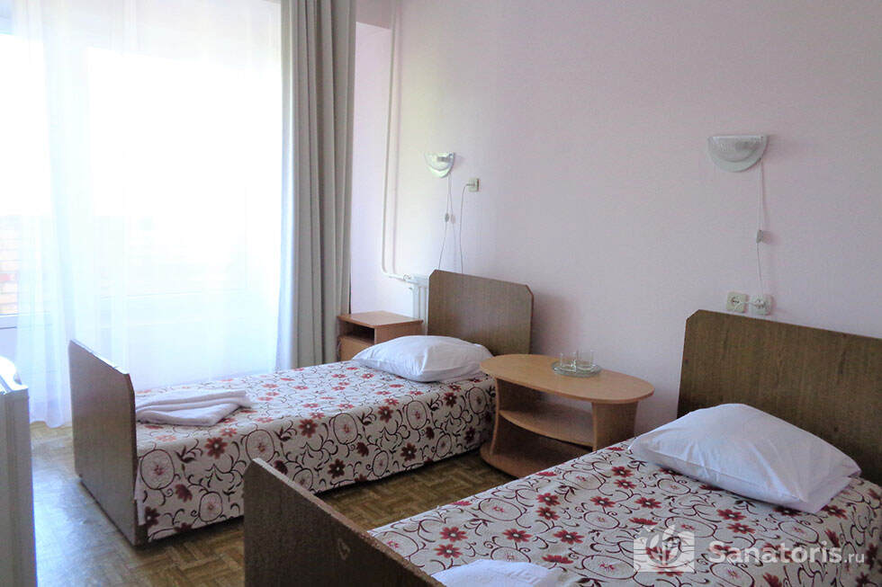 Номера санатория Южнобережный в основном двухместные. Они оборудованы всем необходимым, чтобы создать комфортные условия для длительного пребывания. В них имеется мебельный гарнитур, фен и электрический чайник.