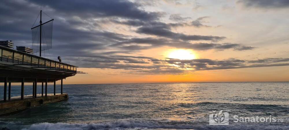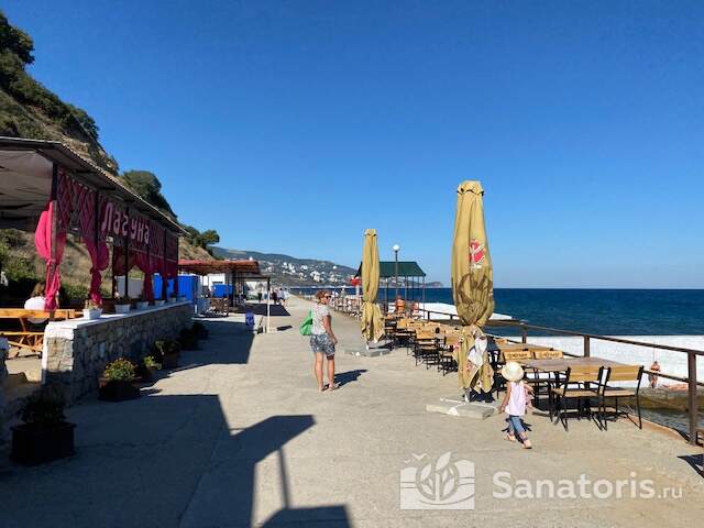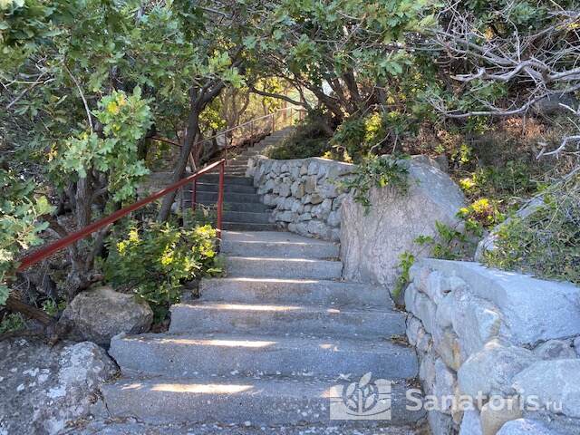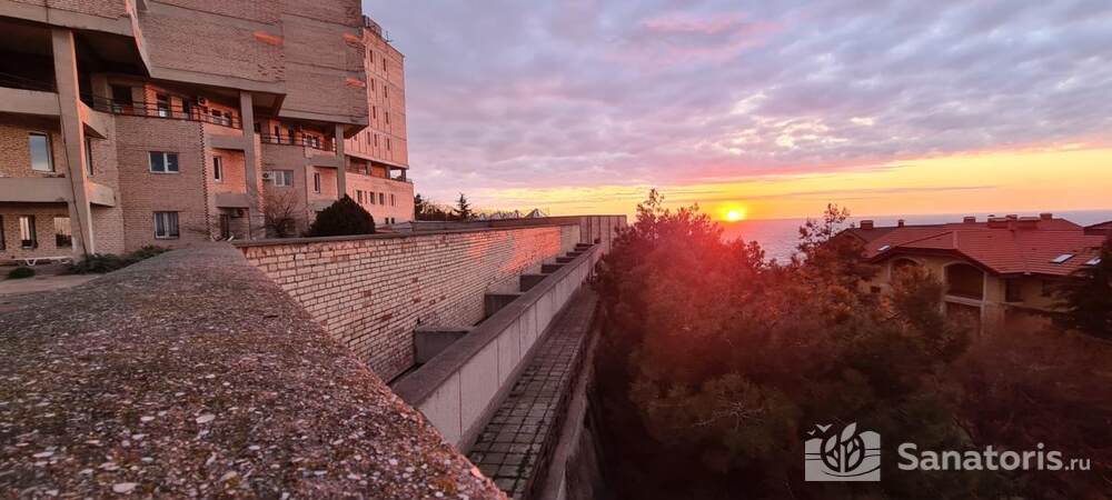 Санаторий Южнобережный расположился в городе Алупка. Рядом с ним раскинулась потрясающая оливковая роща и центральная городская часть. Вид с окон здравницы открывается на море и на гору Ай-Петри.
