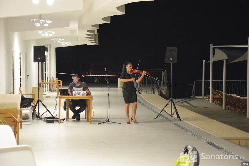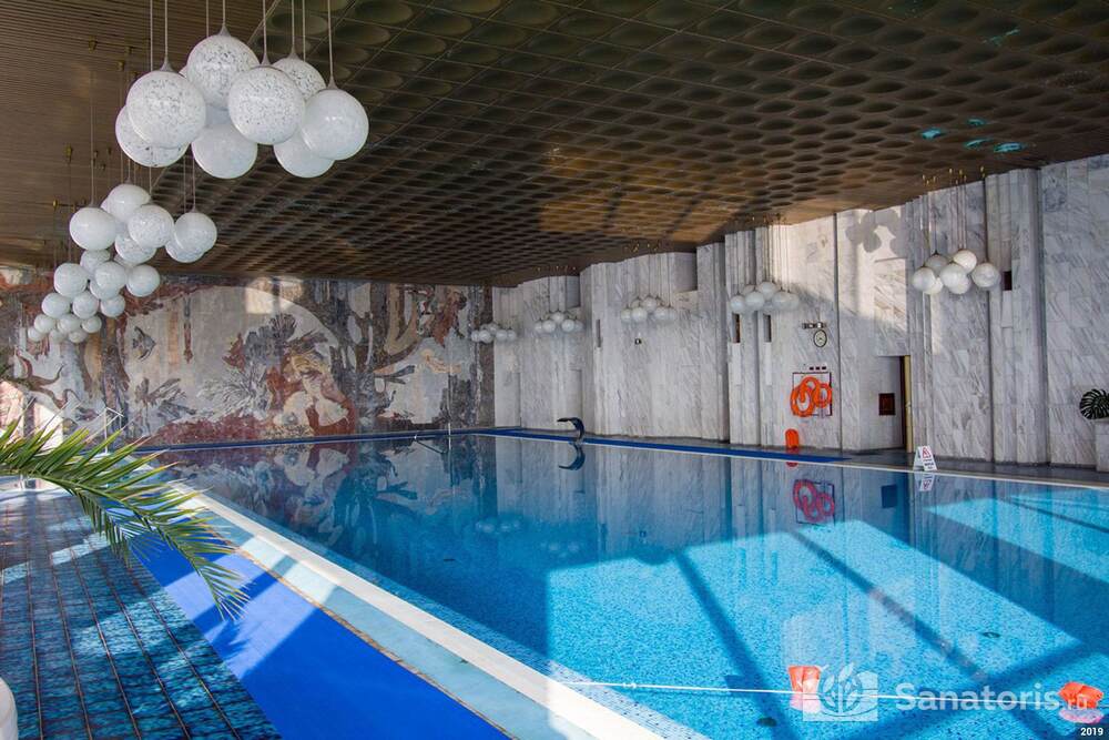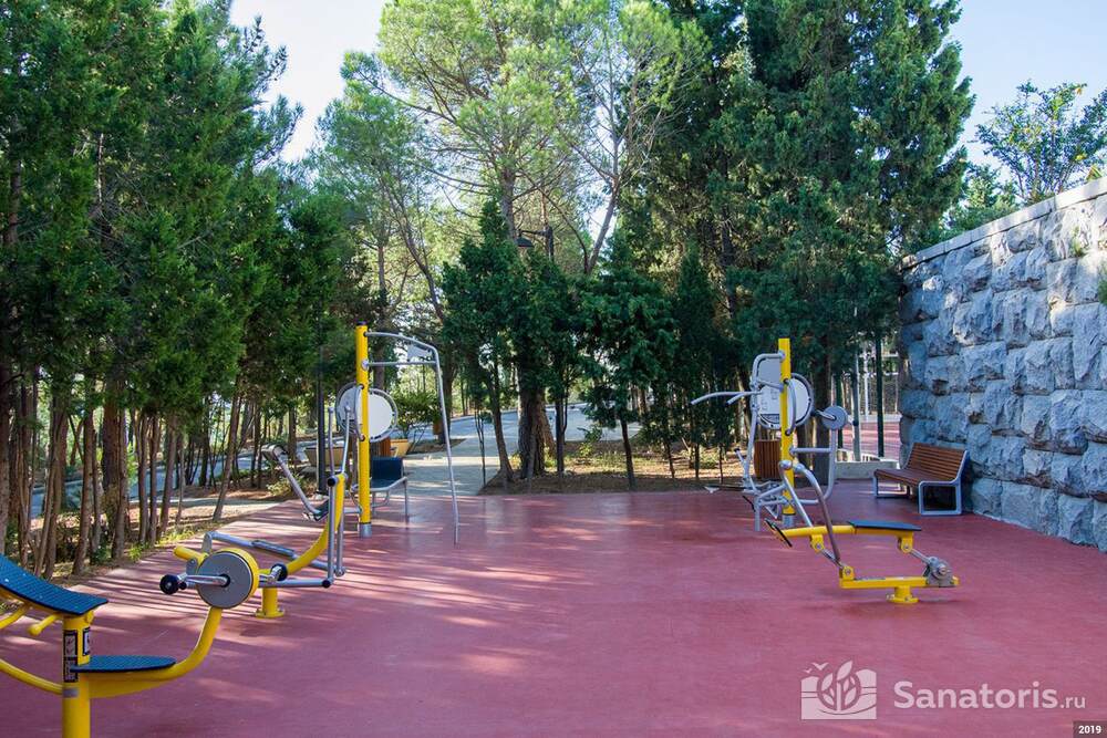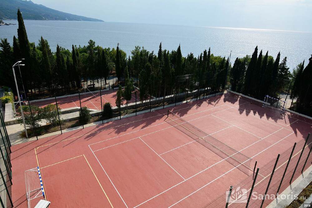 На ухоженной территории здравницы также расположены также климатопавильон, спортивный зал, теннисные корты, кинотеатр, бассейны с морской водой, русский бильярд и пул, прекрасно оборудованный пляж с отличным пляжным инвентарем, детские комнаты, сауна и баня.