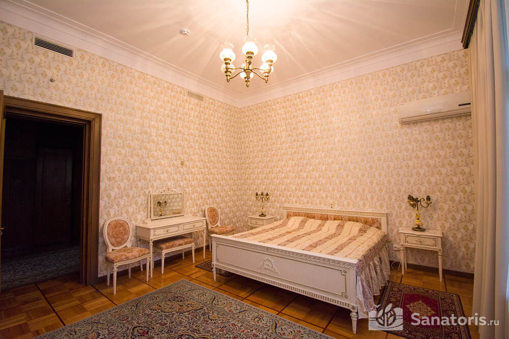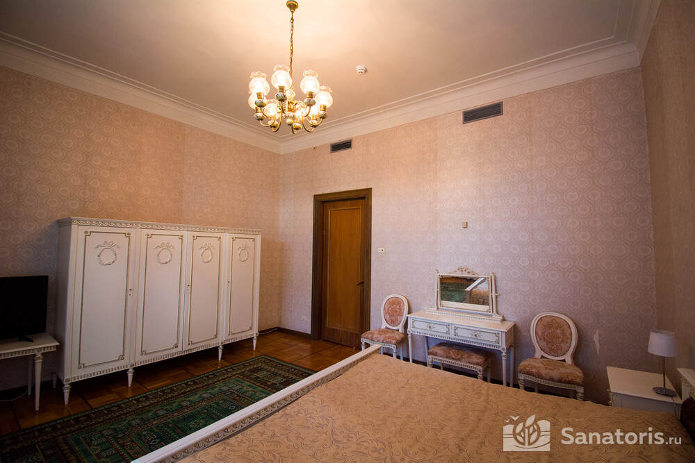 Номерной фонд санатория включает в себя 3 жилых корпуса, соединенных между собой застекленными галереями и 2 коттеджи. Для гостей предоставляются номера любого уровня сервиса: «улучшенный стандарт», 1-, 2-, 3-, 4 –комнатный «люкс». Галереи –переходы между зданиями позволяют удобно перемещаться по санаторию, не покидая корпуса. Охраняемая территория здравницы создает для гостей полную безопасность пребывания на отдыхе.