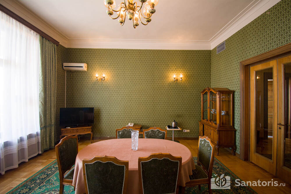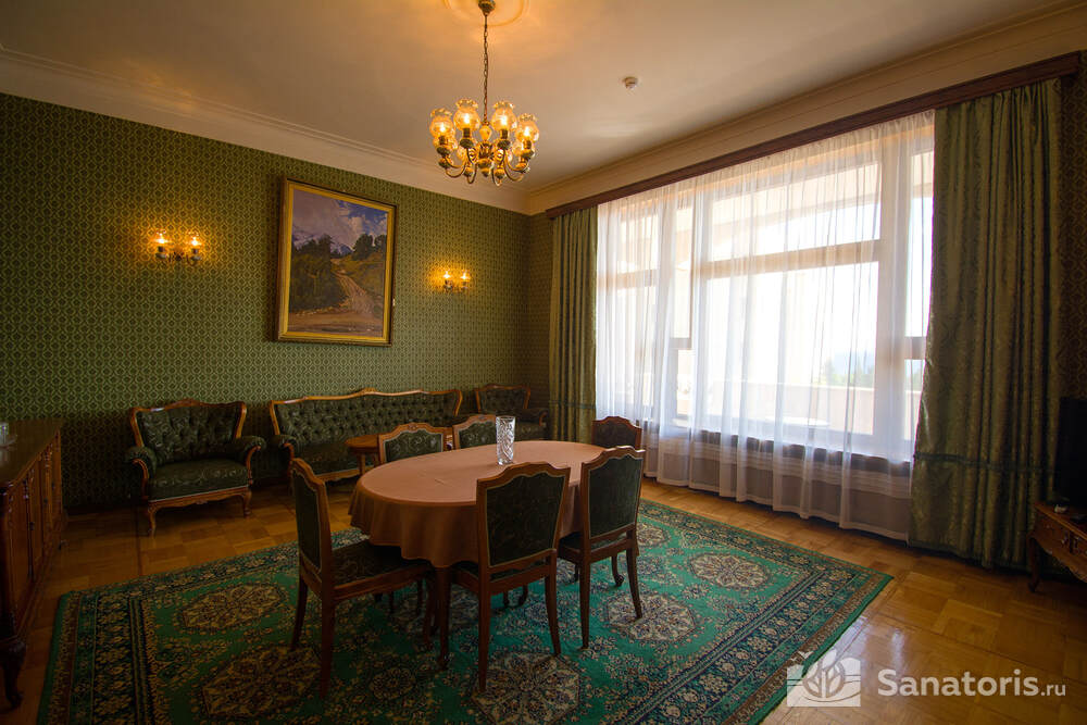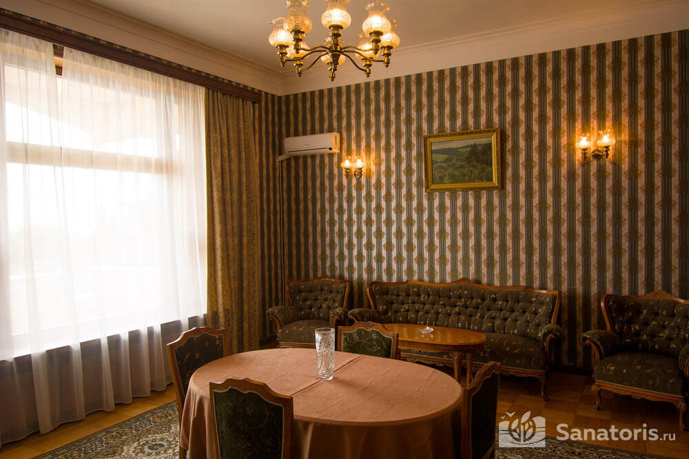 К услугам гостей – лечебная и диагностическая инфраструктура и терренкуры, камеры для хранения ценностей и банкоматы, салон красоты и прачечная, уникальная парковая зона.