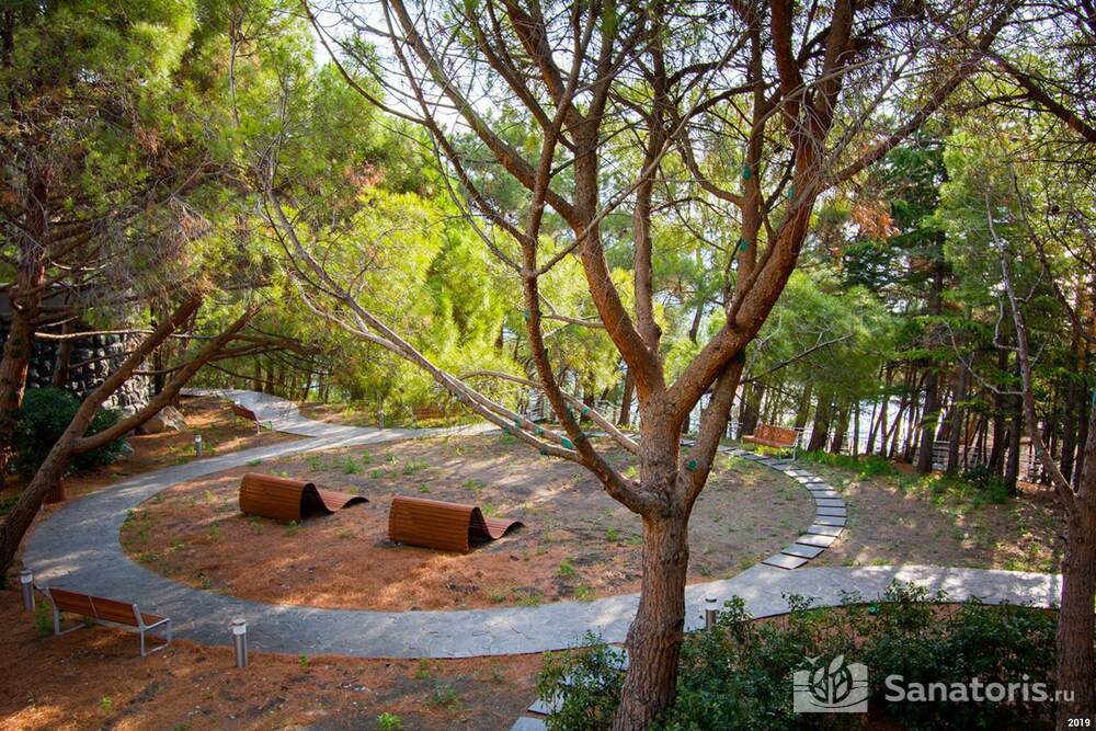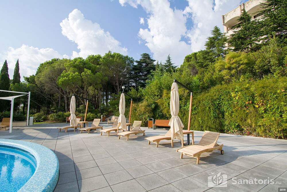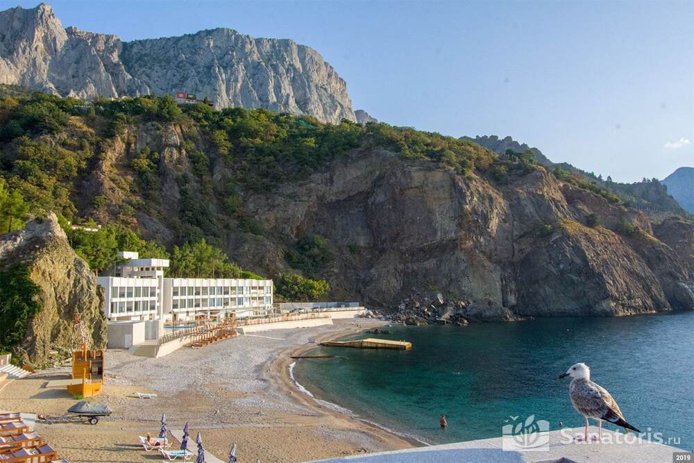Уединенное спокойное место среди нетронутой крымской природы придется по душе любителям размеренного отдыха, а собственный отдельный пляж позволит комфортно провести свое время, наслаждаясь морским и горным воздухом, купаниями в море. Элитный санаторный комплекс располагается всего в 42 км от Ялты на площади в 17 га, гости могут совместить время лечения в здравнице с осмотром достопримечательностей.