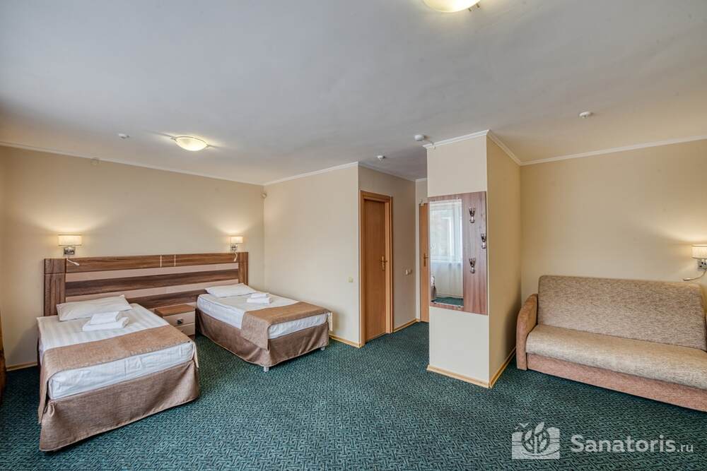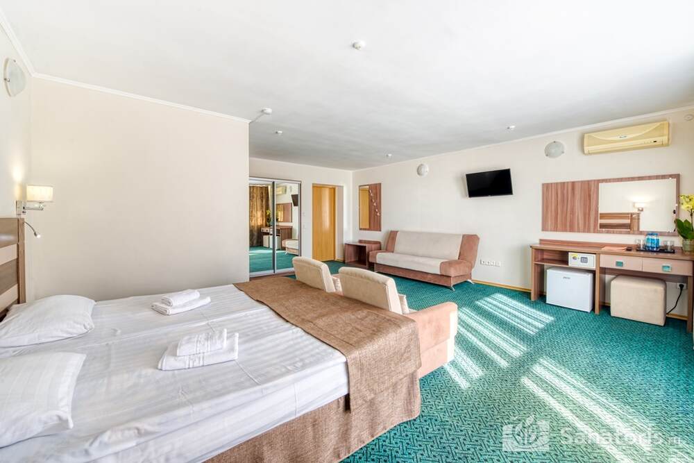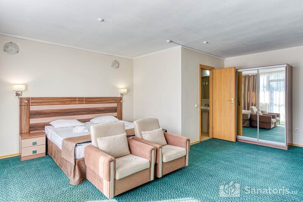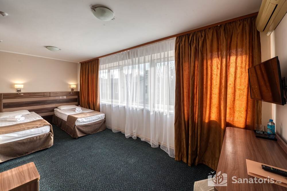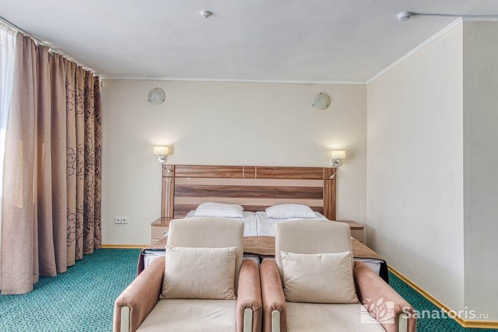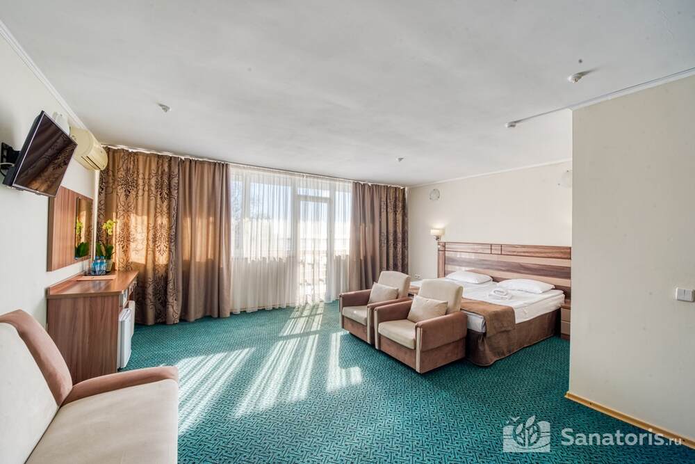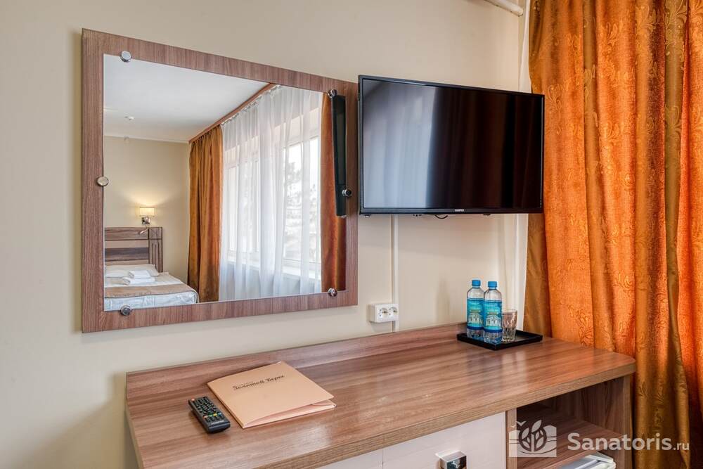Номера санатория Золотой берег уютные и комфортные. В них есть все необходимое, чтобы отдых прошел по высшему класс. При этом имеется возможность подключения бесплатного интернета.