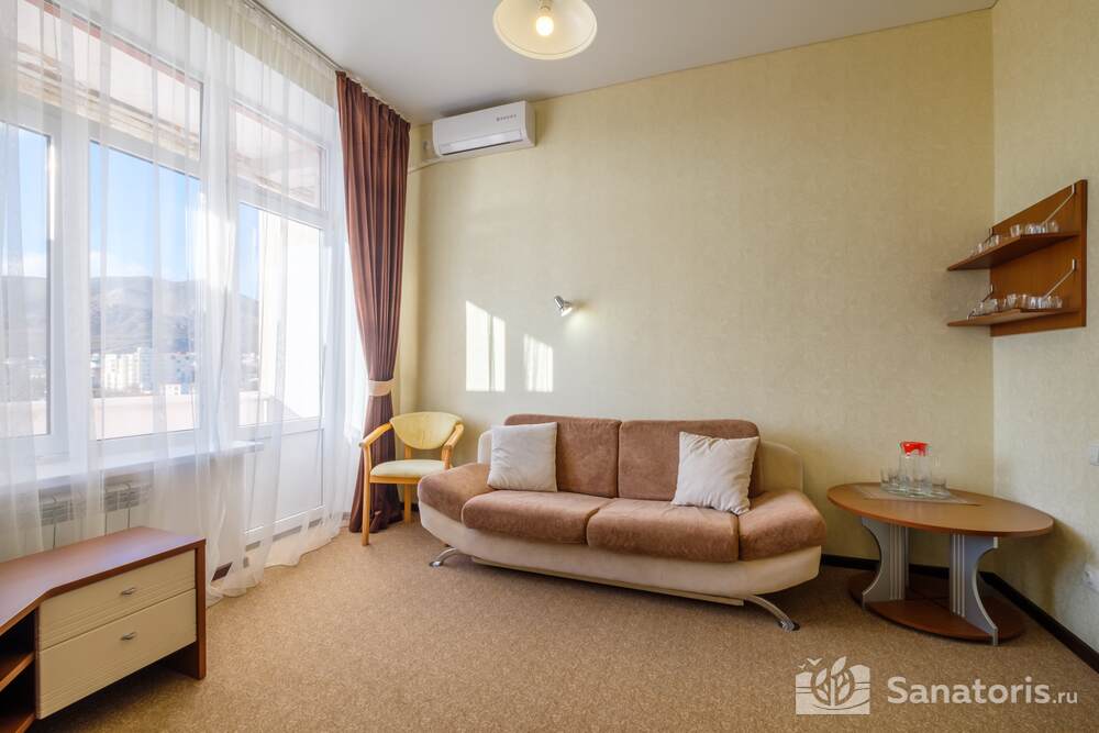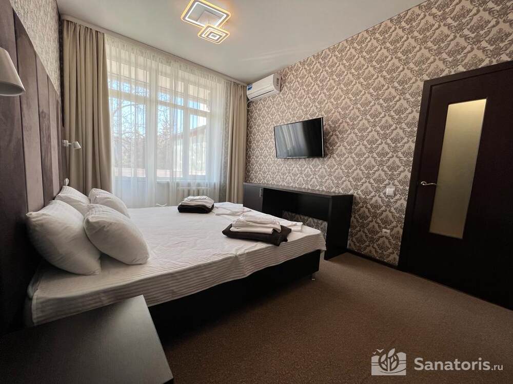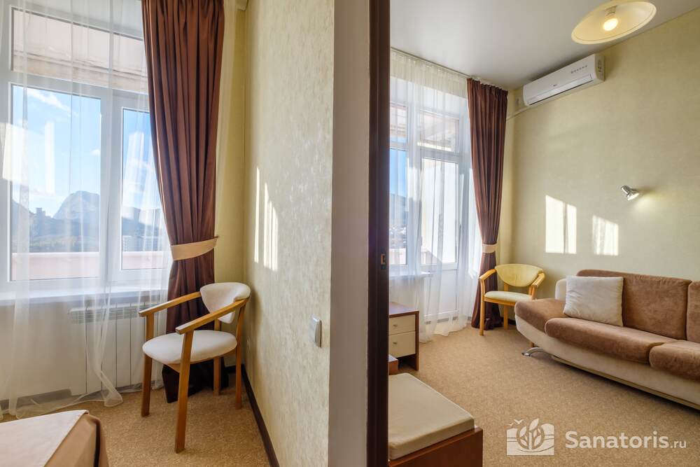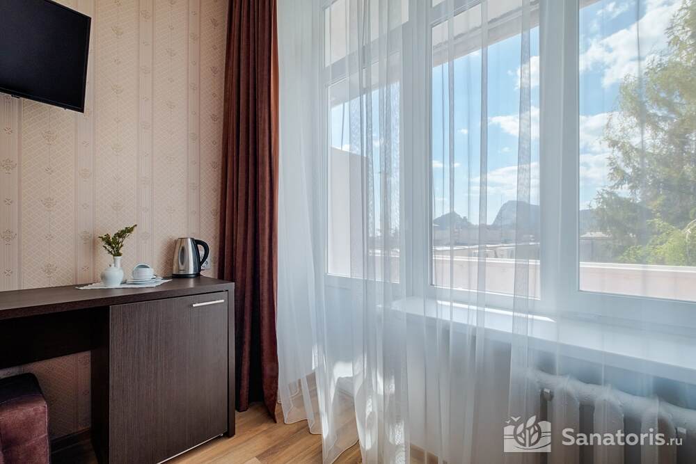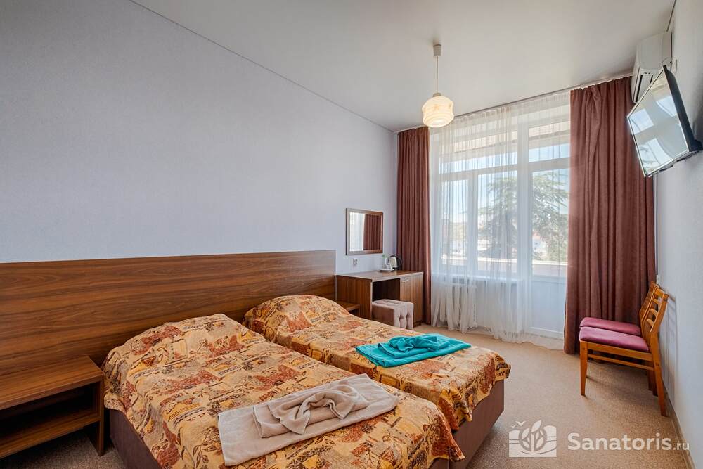 На территории санатория лечение проводится при разных нарушениях. Это могут быть поражения кожи, гинекологические заболевания, дисфункции со стороны желудка. Здравница состоит из нескольких этажей. Дополнительно имеются сооружения обслуживающего и административного характера. Из номеров здравницы открывается невероятный вид.