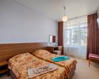 Стены санаторного комплекса Звездный окружены благоухающим парком, в котором приятно прогуляться вечером. Удобно и то, что до города можно дойти пешком, а приехать в здравницу получится на поезде. Питание в санатории разнообразное и трехразовое. Имеется летнее кафе, вместительный ресторан и бар, где падают полезные коктейли и свежевыжатые соки.