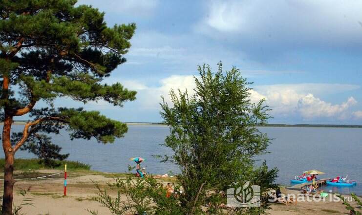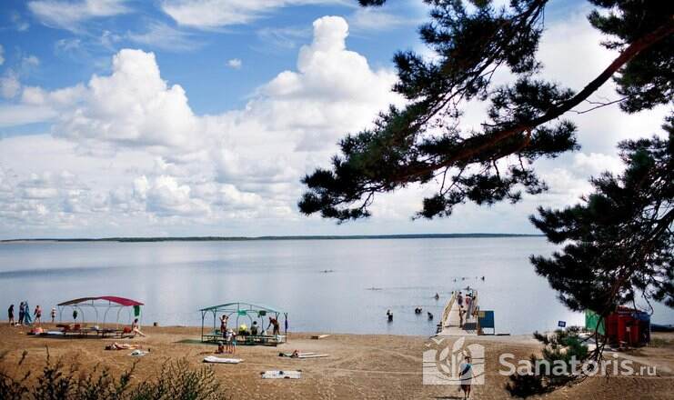 Находится санаторий оздоровительного типа «Озеро Медвежье» на берегу одноименного озера. До города Кургана 200 км. Озерная вода и отложения на дне водоема имеют целебные свойства, что привлекает отдыхающих. По легенде у водоема появлялся бурый медведь. Он опускал в воду больную лапу и держал до излечения. И сам водоем по своей форме напоминает фигуру медведя. Вода по своему составу приравнивается к Мертвому морю в Израиле и имеет те же целебные качества.