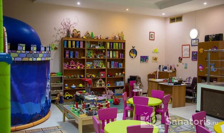 Для маленьких гостей имеются площадки с качелями и песочницами, игровая комната с воспитателями. Родители могут оставить своих детишек с опытным педагогом и заняться своими делами.