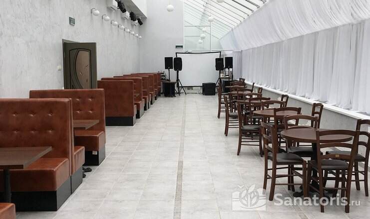 На территории санатория можно организовать любое праздничное мероприятие или банкет. Так же здесь организовывают корпоративные вечеринки для сотрудников фирм. Под каждое мероприятие организовывается специальное меню.