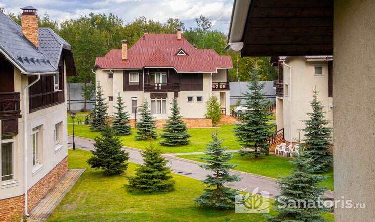 На территории оздоровительного комплекса есть несколько отдельно стоящих зданий. Вокруг каждого из них имеется великолепный природный пейзаж:
