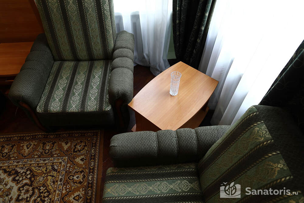 Для проживания гостей оборудован трехэтажный спальный корпус. В нем имеется два лифта. На первом этаже находится администрация санатория. Именно здесь принимают гостей на отдых и оздоровление.