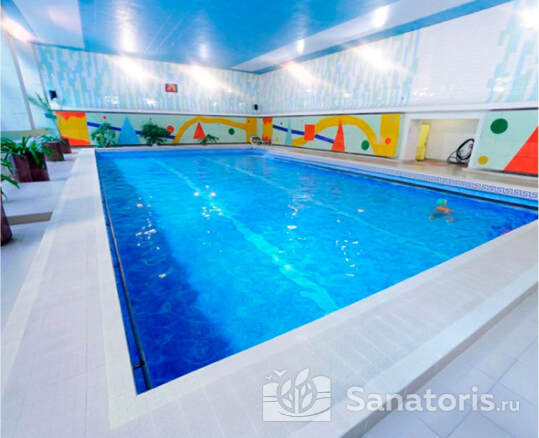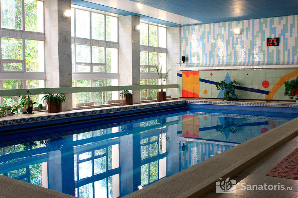 На территории пансионата есть просторный бассейн. Вода в нем пресная. Его могут посещать все постояльцы санатория абсолютно бесплатно. Оставить личный транспорт можно на охраняемой стоянке.
