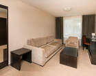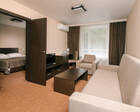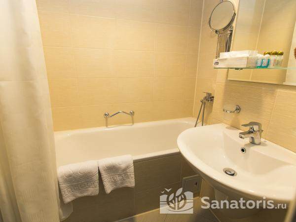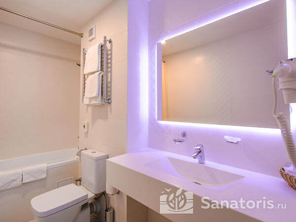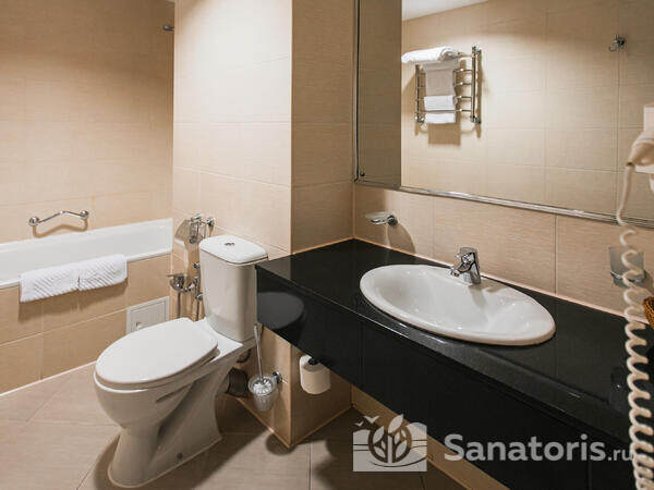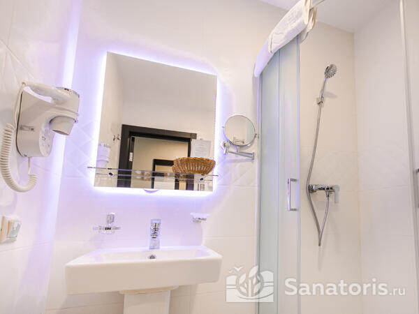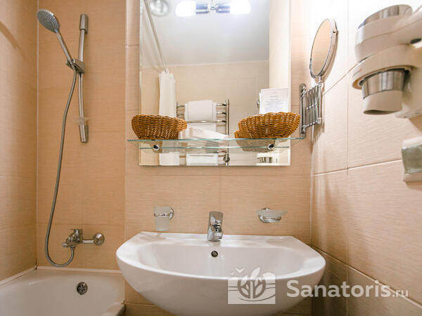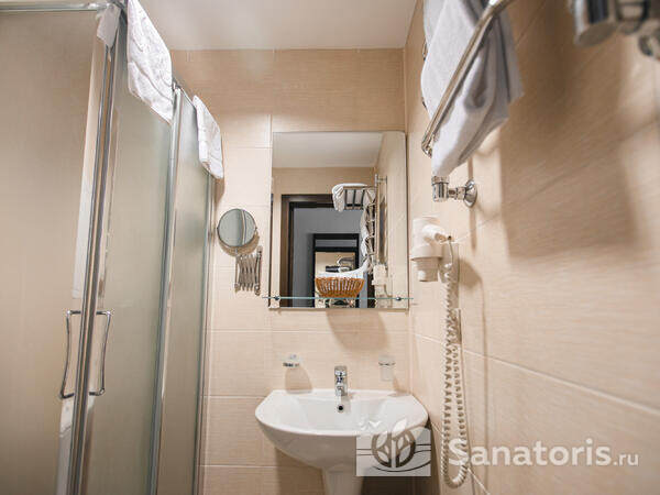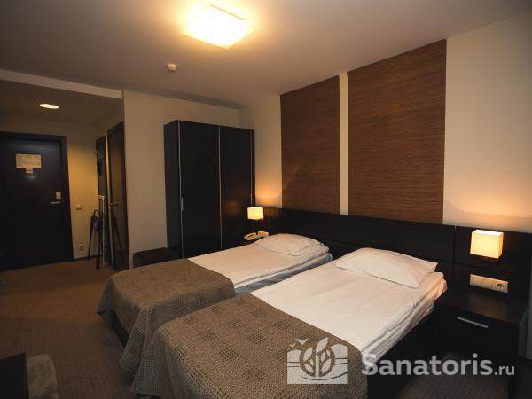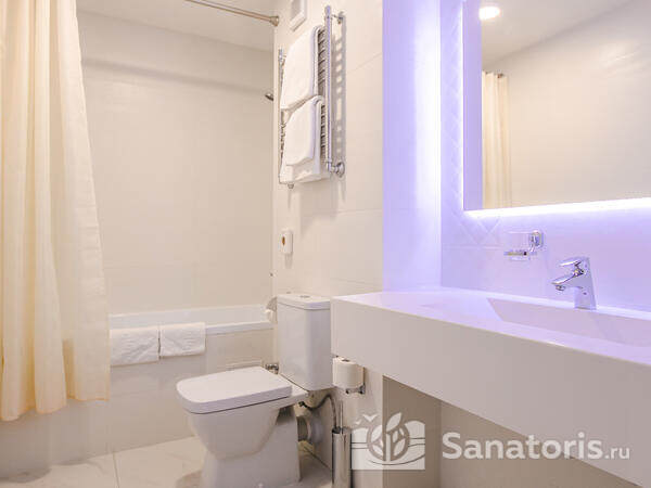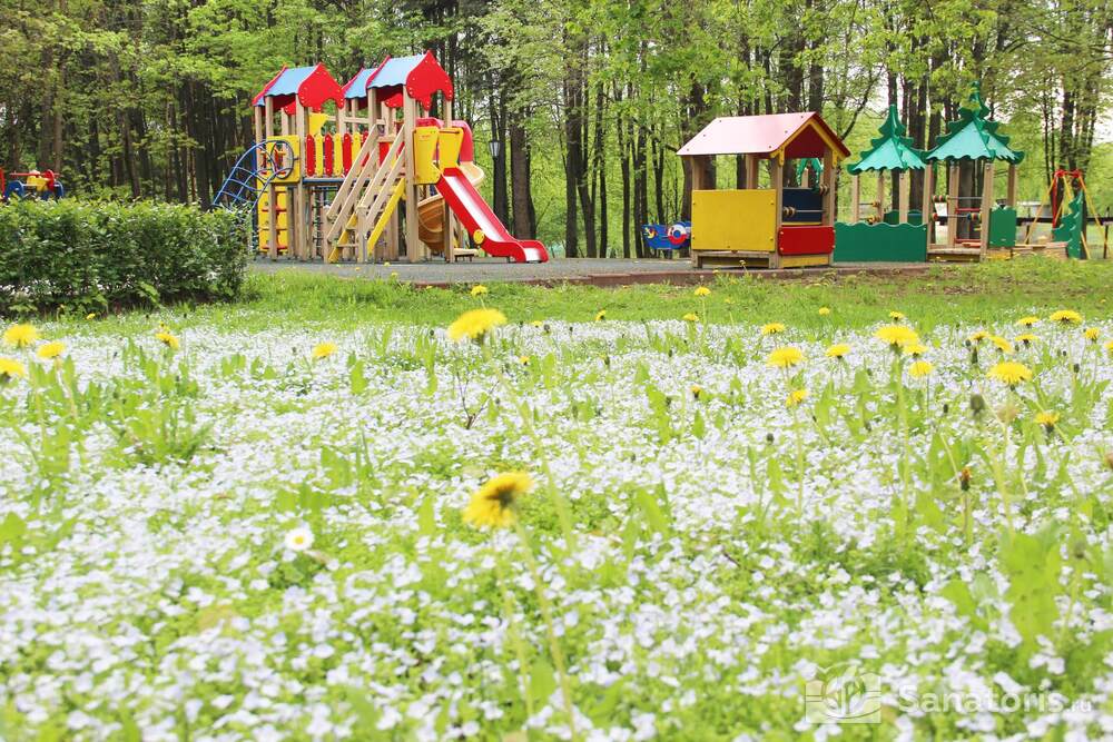 Находится здание санатория в самом лесопарке. Что положительно сказывается на самом климате. Здравница представлена двумя корпусами. В жилом здании номера двух видов. Речь идет о люксе и стандарте. При этом все они оснащены балконом, отдельной ванной комнатой, а также мебелью и бытовой техникой. Панорама с каждого номера открывается захватывающая и ей можно любоваться бесконечно.