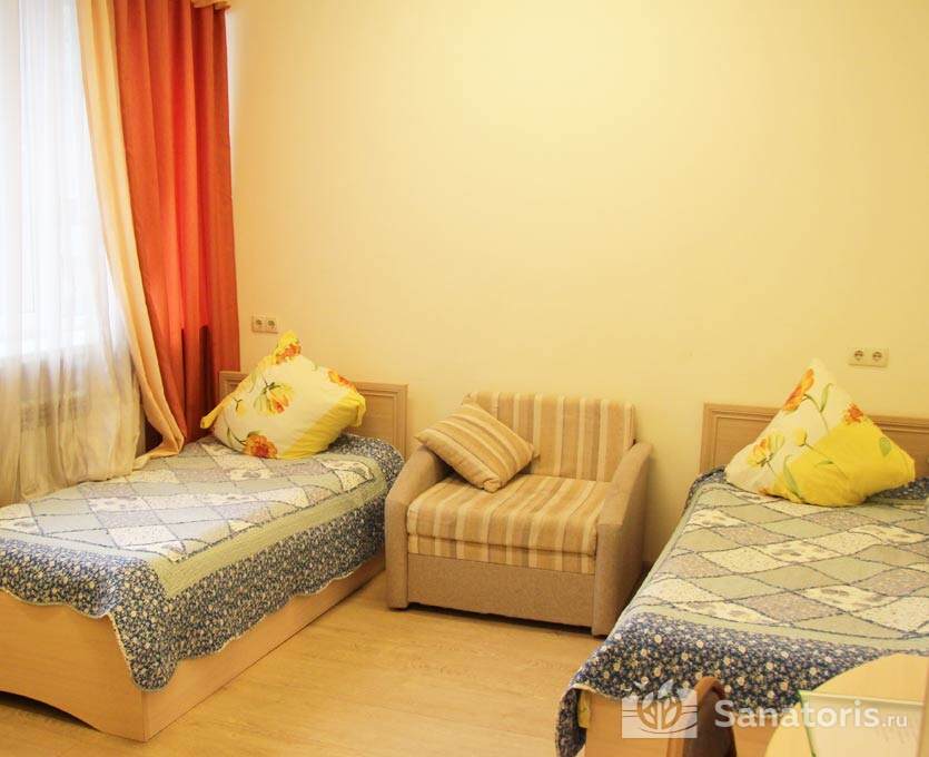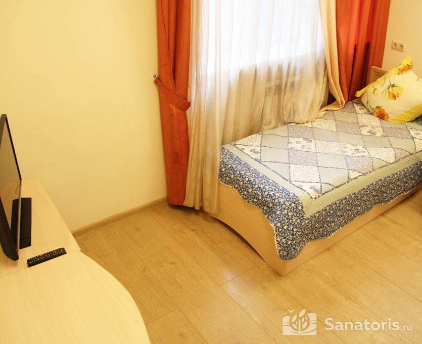 На территории оздоровительного комплекса находится 4 спальных корпуса. Одновременно санаторий может принять 355 человек. Есть спальные корпуса по три, и пять этажей. Некоторые соединяются со зданием администрации, а другие являются отдельно стоящими сооружениями. Для проживания гостей оборудованы комфортные апартаменты разной вместительности. Каждый турист может выбрать номер по своему вкусу и финансовым возможностям.