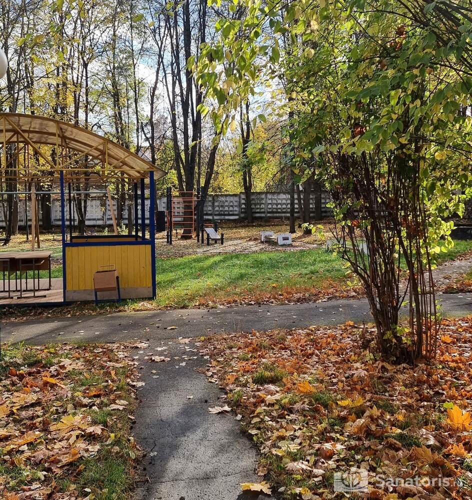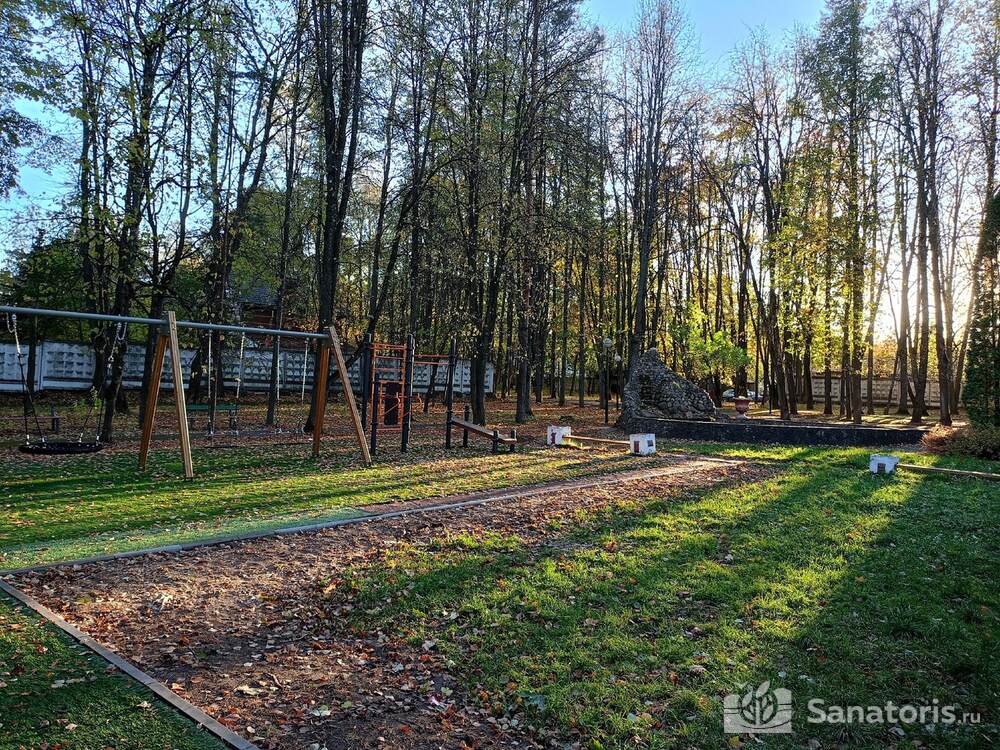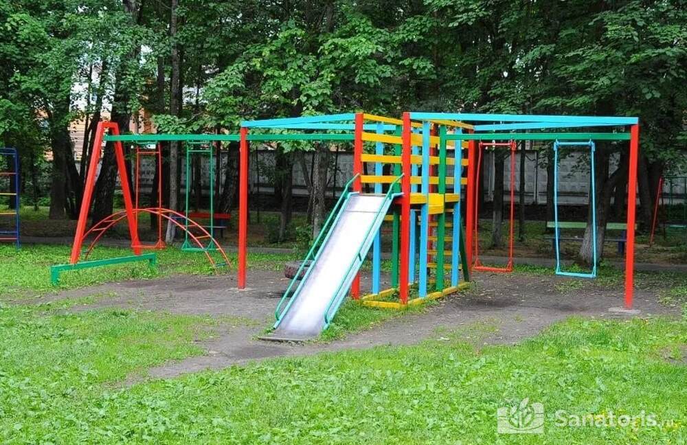 На территории санатория есть детская площадка с качелями, батутами и песочницами. В одном из спальных корпусов оборудована детская комната, где с малышами занимаются опытные педагоги и воспитатели.
