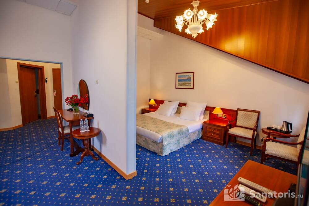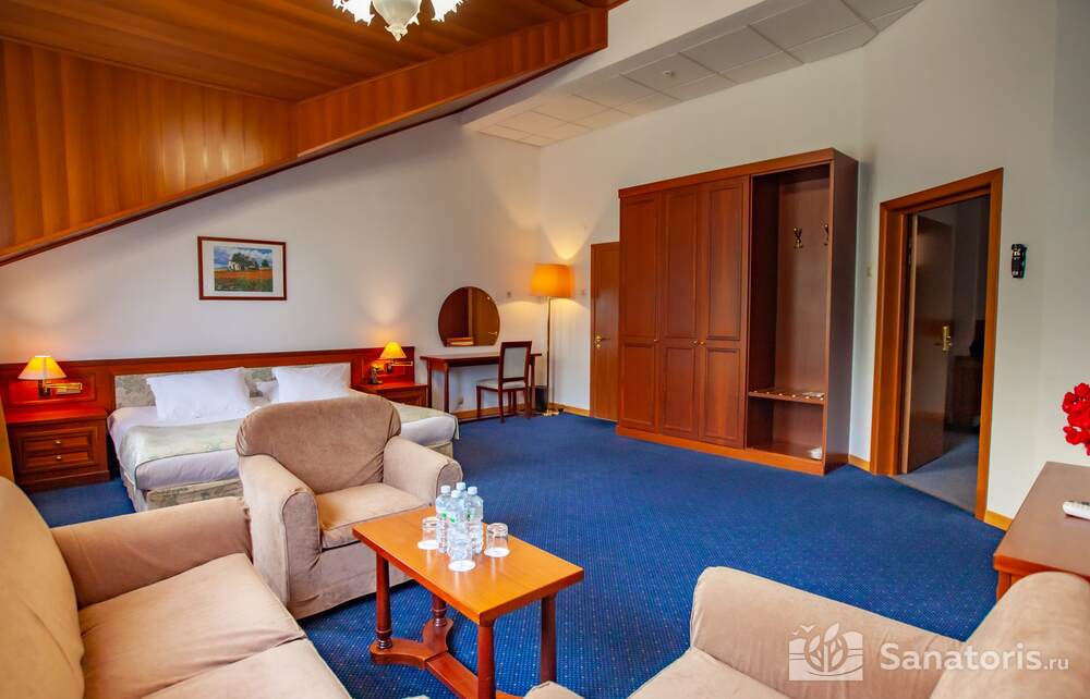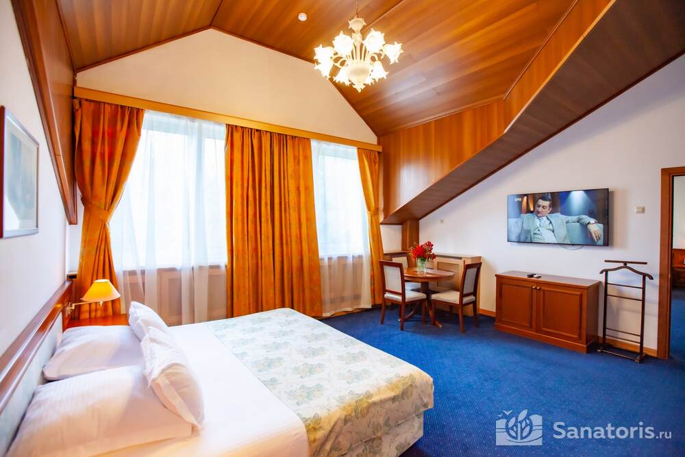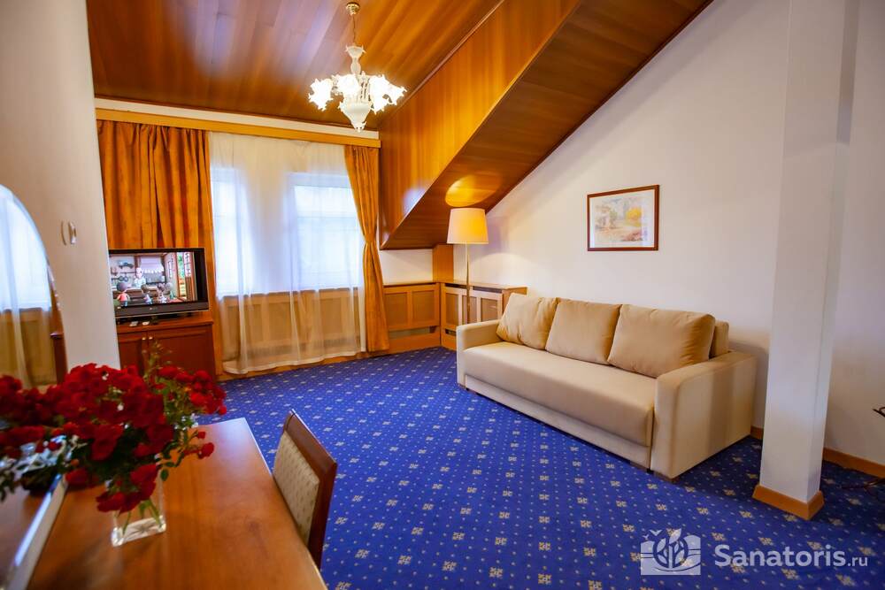 В состав пансионата входят пять трехэтажных корпусов, в которых находятся свыше ста номеров стандартного и повышенного уровня комфорта. Во всех номерах имеется туалет, душевая (или ванна), фен и мини-бар. Также в каждом номере находится телевизор и телефон. На территории расположены чайный домик, ресторанный комплекс, караоке-бар и корпус для спортивно-оздоровительных мероприятий.