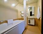 Апартаменты выполнены в светлых тонах. Здесь есть современная мебель, просторный балкон, бытовая техника, санузел, ванная комната. Из окон открывается прекрасный вид на сосновый лес и водоем.