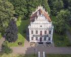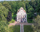 Интерьер усадьбы максимально роскошный. Здесь есть парадные залы с изысканной старинной мебелью. Ковры и колонны делают это помещение по-настоящему элитным. Здание имеет много панорамных окон, которые выходят на живописный парк.