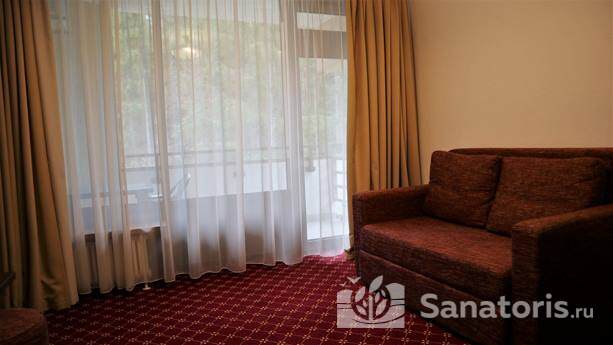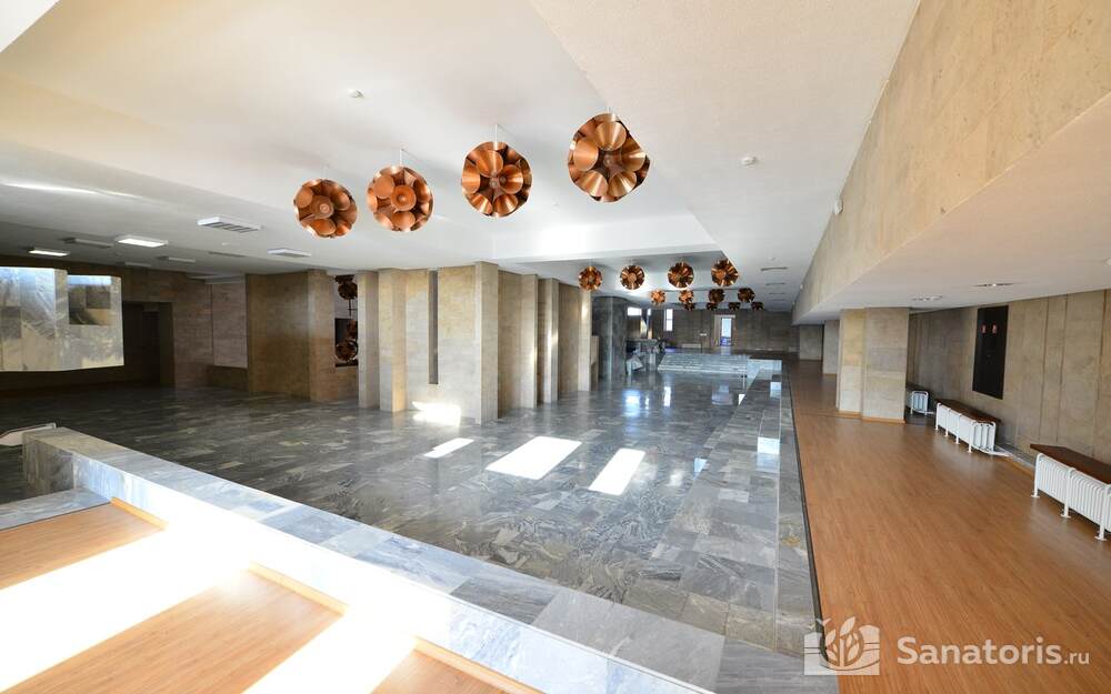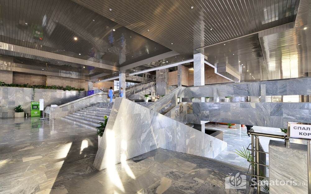 Так же в первом спальном корпусе расположена администрация санатория. Между жилым зданием и медицинским центром есть теплый переход. Питание осуществляется в просторной столовой.