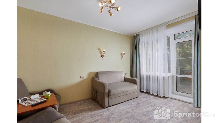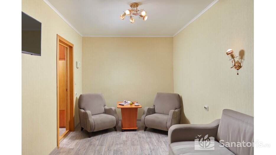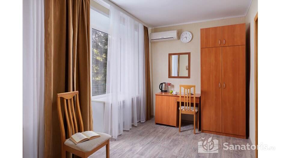 Зона санаторного комплекса огорожена и находится под постоянной охраной. На территории турбазы построен бассейн с четырьмя дорожками. Предоставляемые номера удобные и комфортные, располагающиеся в нескольких современных корпусах. В качестве досуга отдыхающим предлагается посещение местного читального зала, тренажерного зала, конного клуба. Также желающие могут поиграть в бильярд и настольный теннис. Скучать в перерывах между лечение и оздоровлением точно не приходиться.