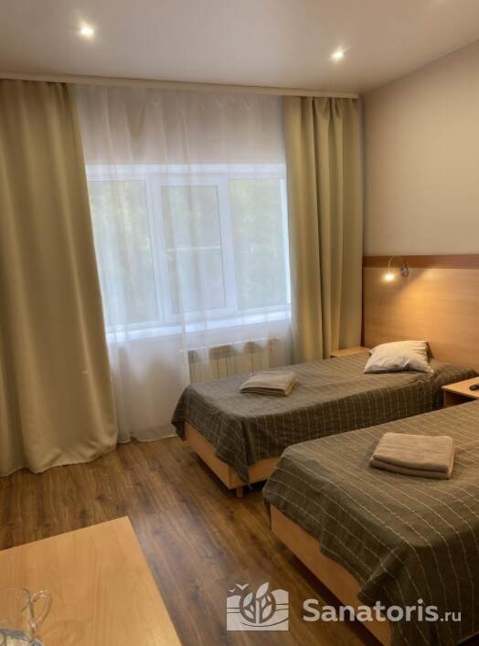 В санатории имеются все возможности как для умиротворенного отдыха в тихой обстановке, так и инфраструктура для лечебно-профилактических процедур. Принимают гостей санатория очень уютные номера. Категория комфорта 2-х типов: стандартные номера и полулюксы. Имеются все удобства. Размещают постояльцев и в домах по типу деревенских срубов. Они со всеми удобствами и рассчитаны на 2-4 персоны.