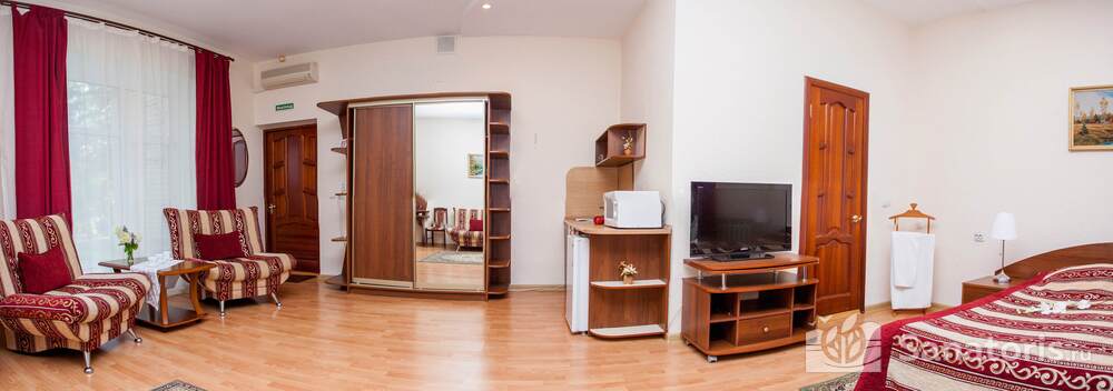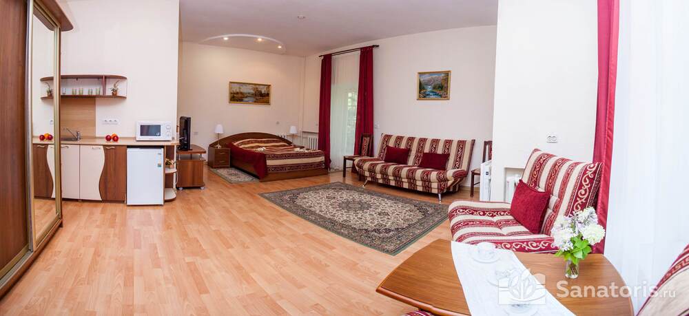 Для отдыхающих предлагают жилые домики и коттеджи люкс уровня. Рядом расположена столовая, где предлагаются разнообразные диетические блюда. Для проведения пикника всегда можно арендовать уютную беседку.