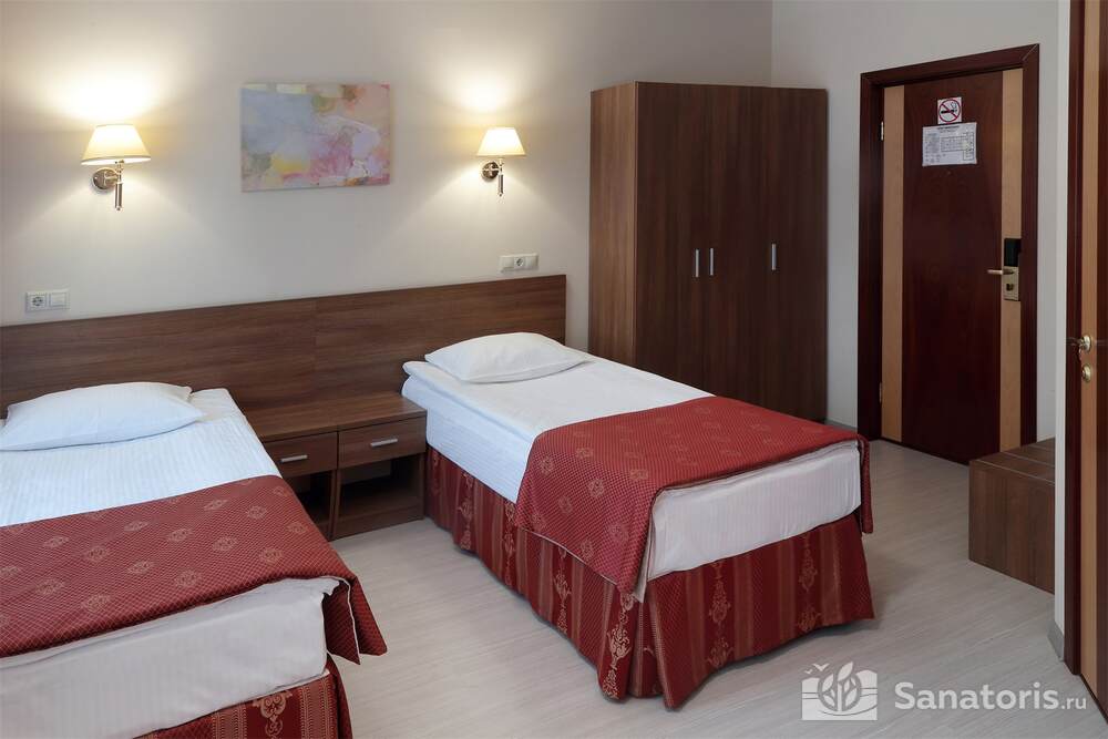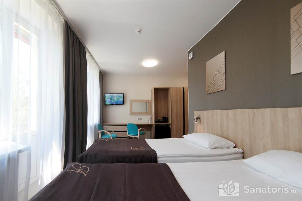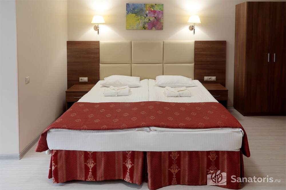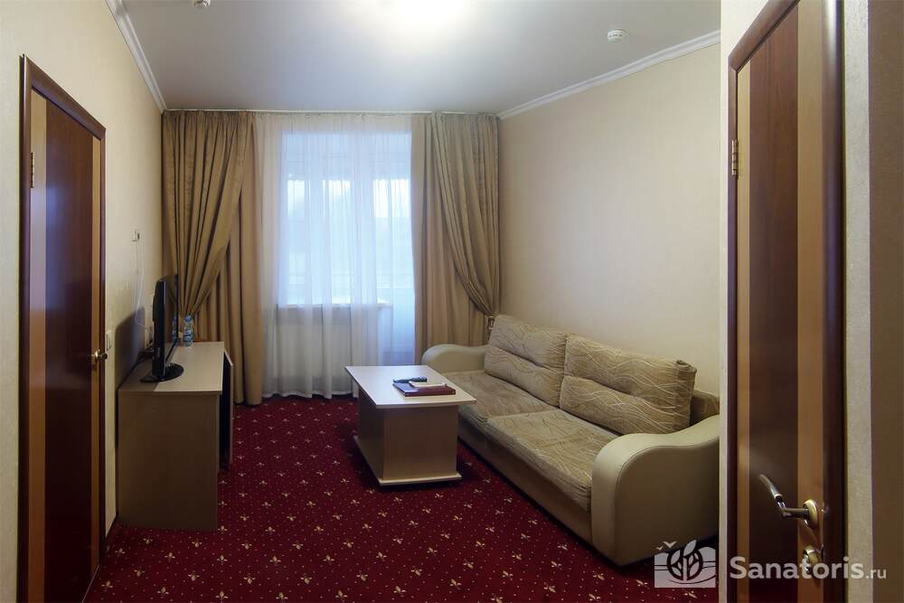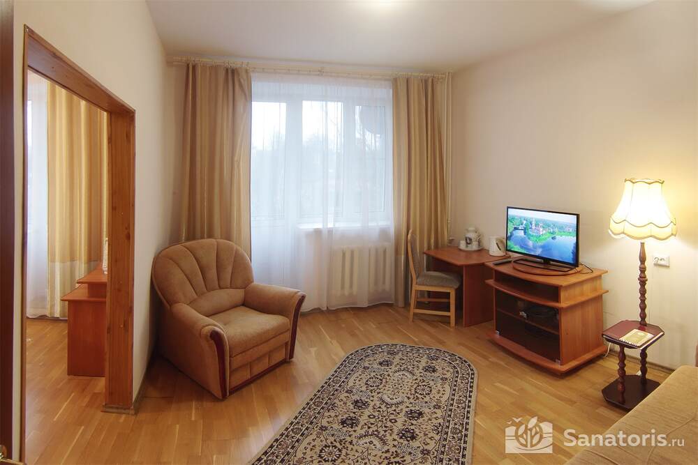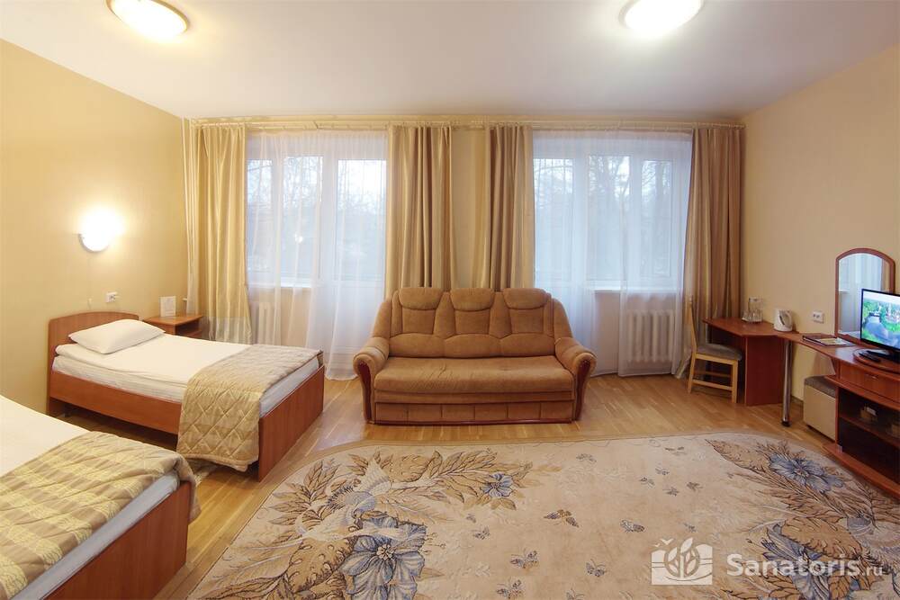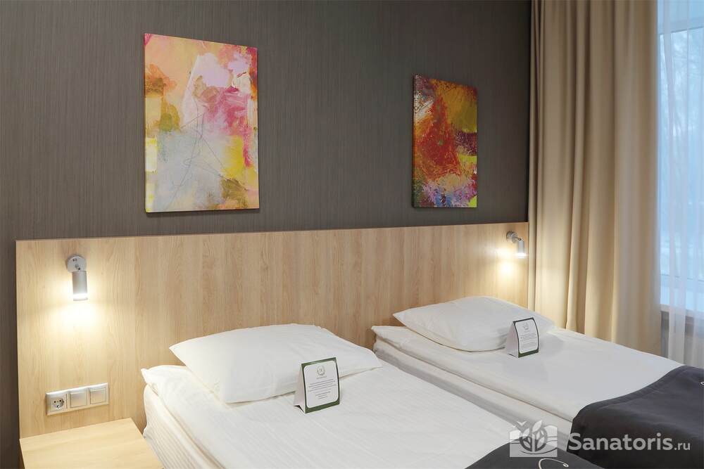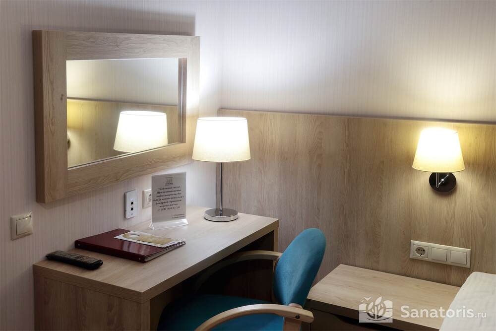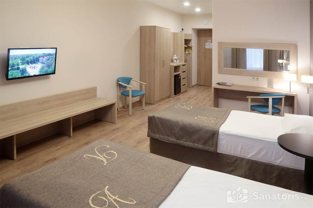 Жилой фонд состоит из отдельно стоящих зданий разной этажности: корпуса №3 и 6 – 5-этажные здания с лифтами, корпус №1 имеет 4 этажа, корпуса №4, 5, 10 – 3 этажа, корпуса №2 и 11 – 2 этажа. Одновременно санаторный комплекс может принять 619 гостей. Гостям предоставляются разные варианты размещения: блок-номера, имеющие общий санузел, номера повышенной комфортности и новые номера в корпусах, которые находятся в уютном парке. Какой бы вариант вы бы не предпочли, каждый из номеров светлый, просторный и оборудован необходимым для комфортного проживания набором мебели. В наличии ТВ, а в некоторых номерах предусмотрен небольшой холодильник, фен, телефон и прочее.