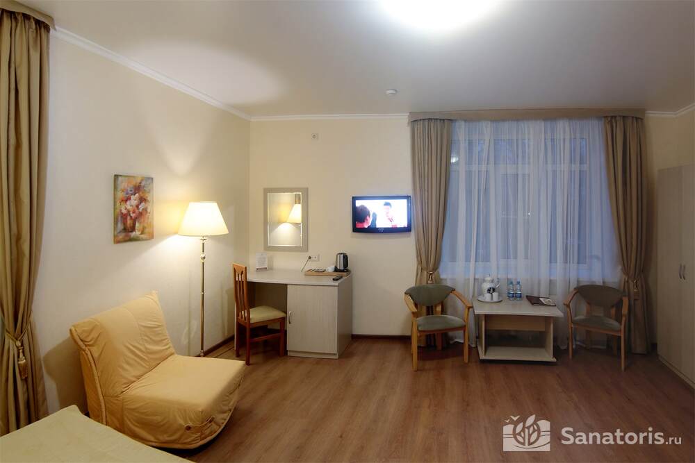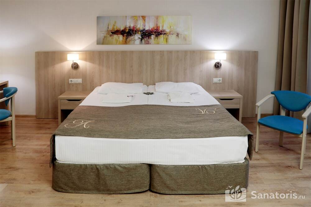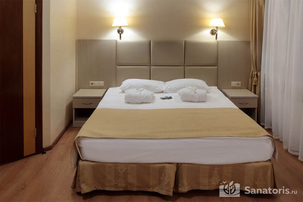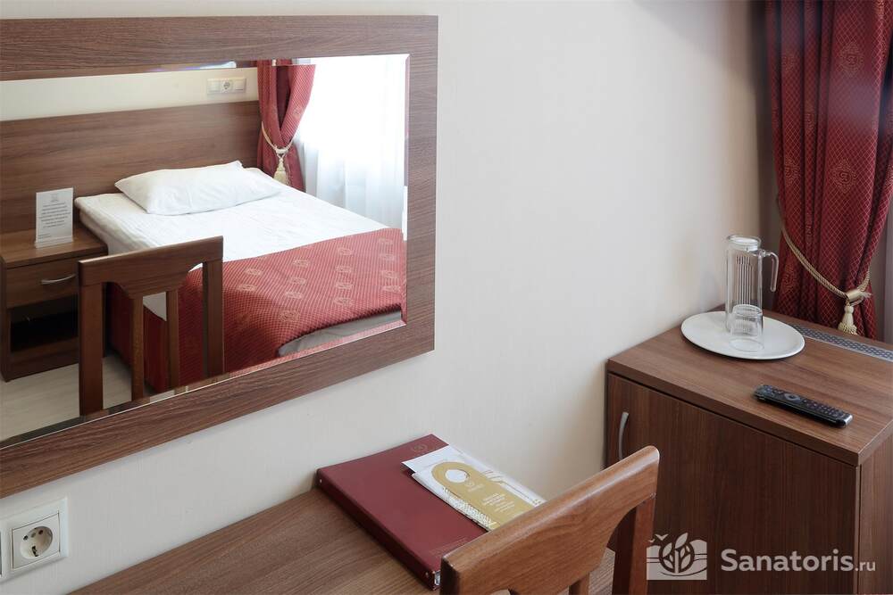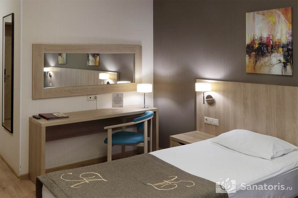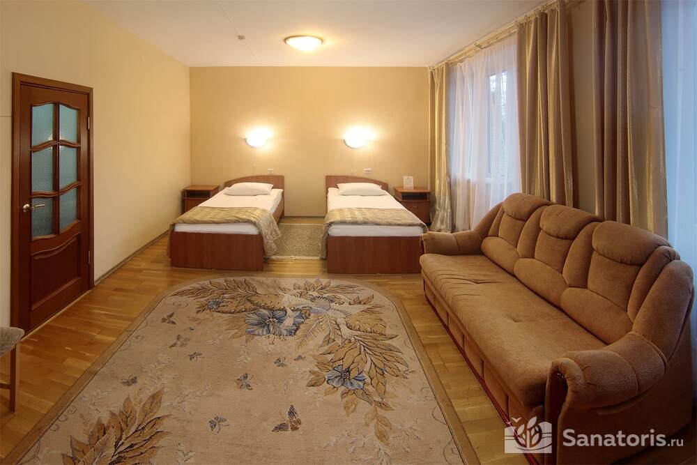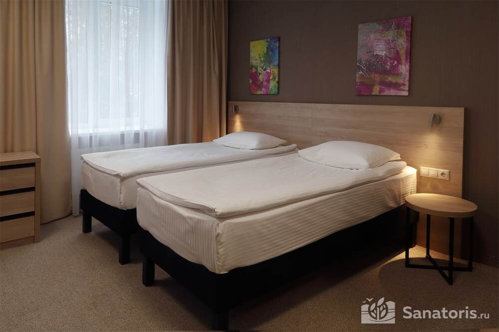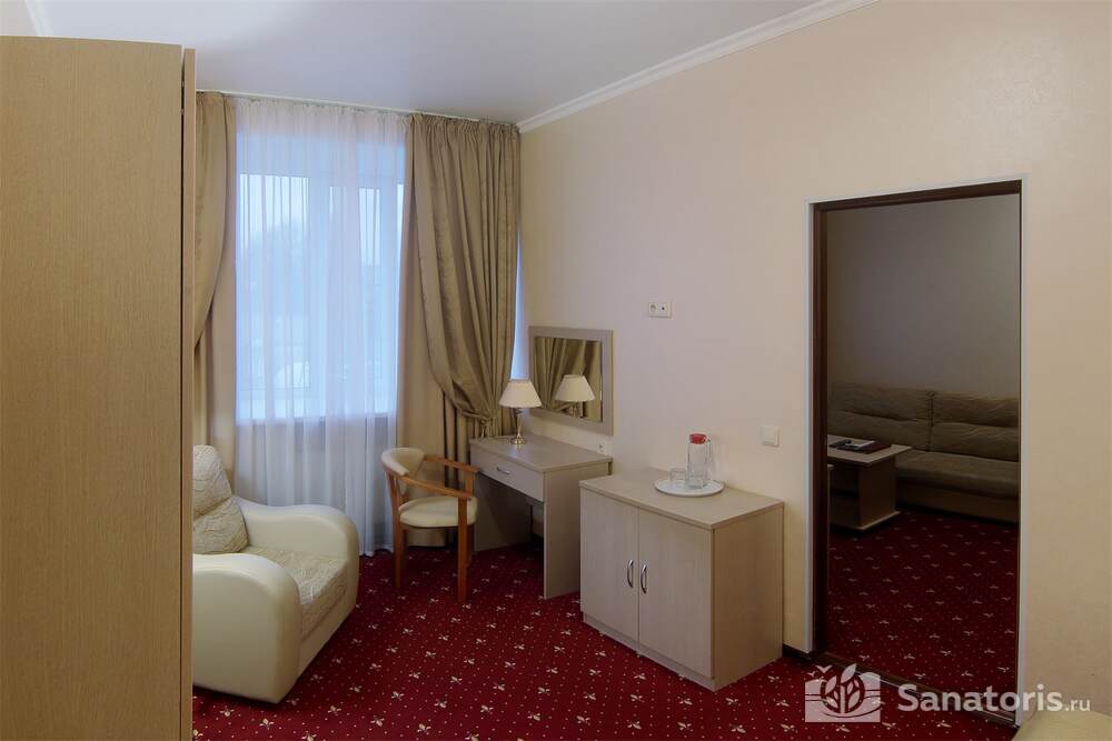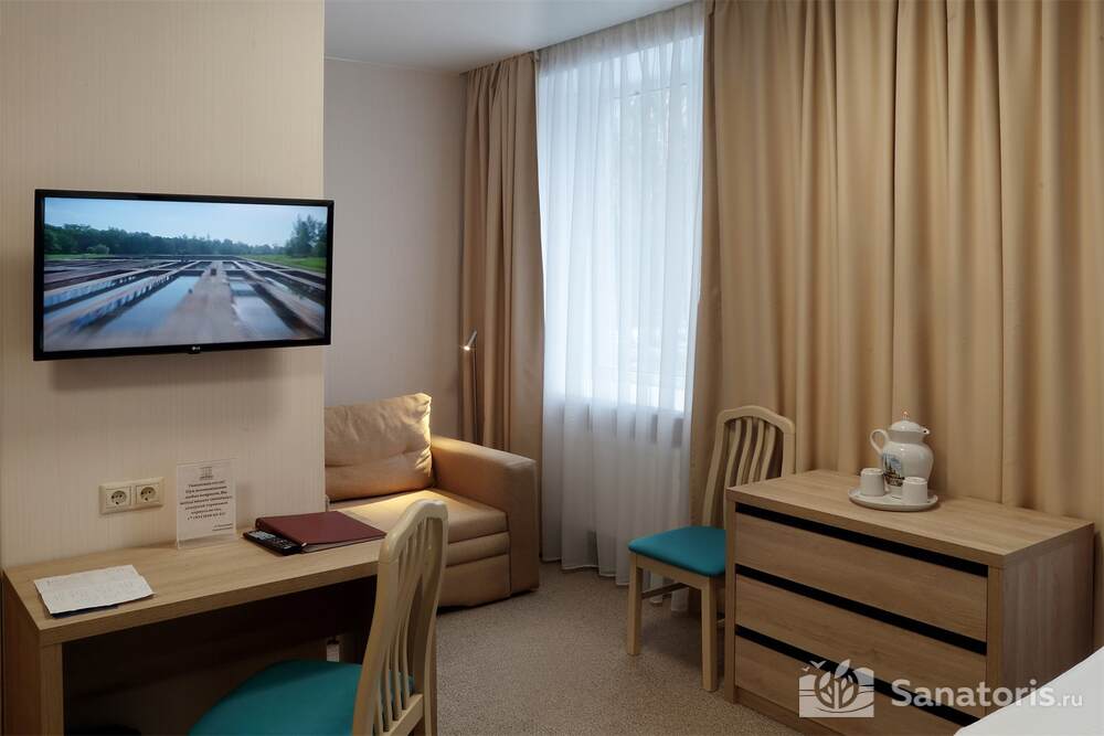 Жилой фонд состоит из отдельно стоящих зданий разной этажности: корпуса №3 и 6 – 5-этажные здания с лифтами, корпус №1 имеет 4 этажа, корпуса №4, 5, 10 – 3 этажа, корпуса №2 и 11 – 2 этажа. Одновременно санаторный комплекс может принять 619 гостей. Гостям предоставляются разные варианты размещения: блок-номера, имеющие общий санузел, номера повышенной комфортности и новые номера в корпусах, которые находятся в уютном парке. Какой бы вариант вы бы не предпочли, каждый из номеров светлый, просторный и оборудован необходимым для комфортного проживания набором мебели. В наличии ТВ, а в некоторых номерах предусмотрен небольшой холодильник, фен, телефон и прочее.