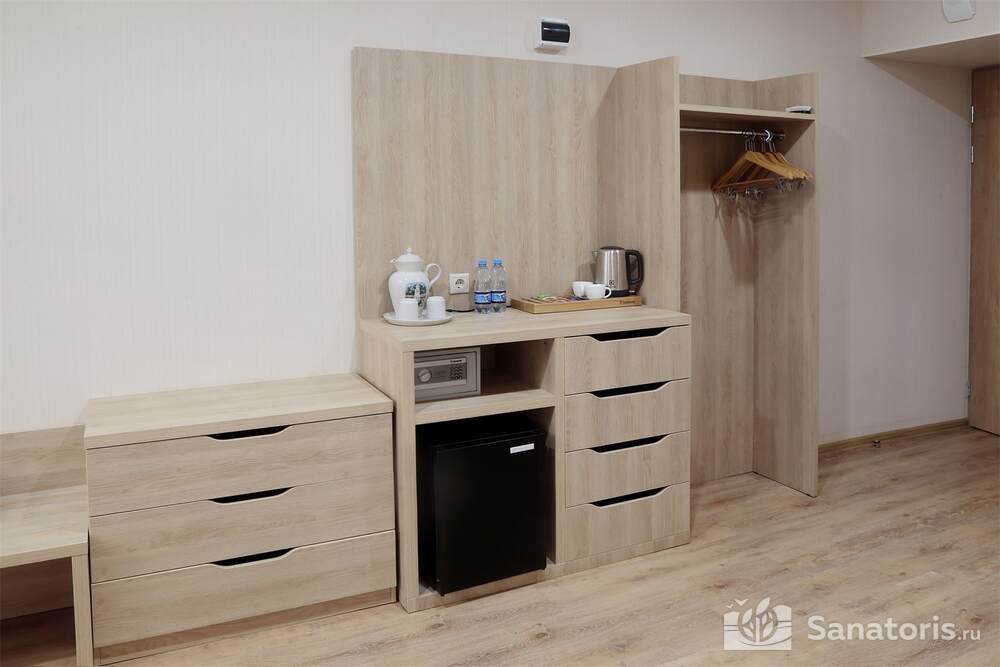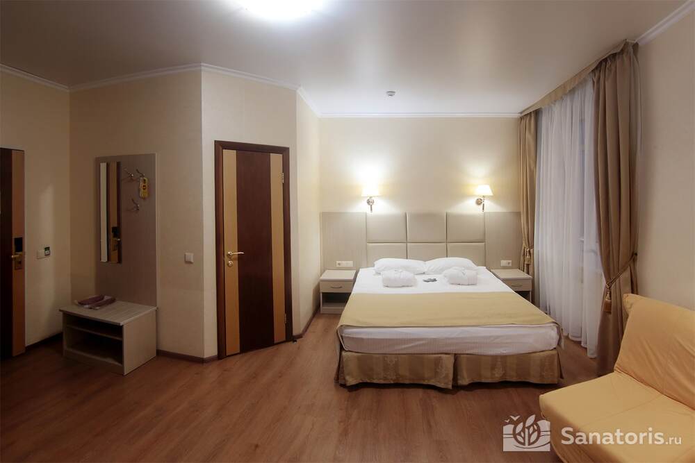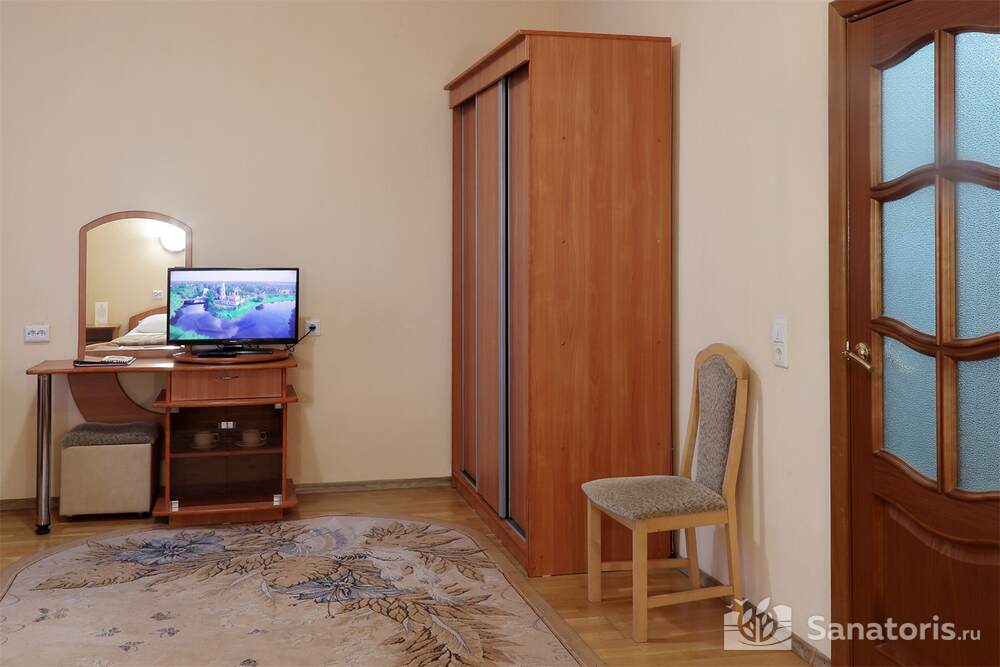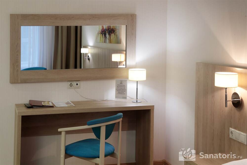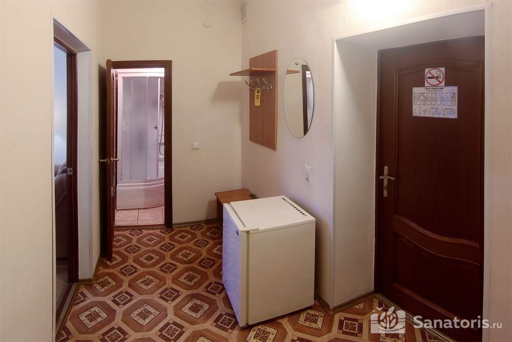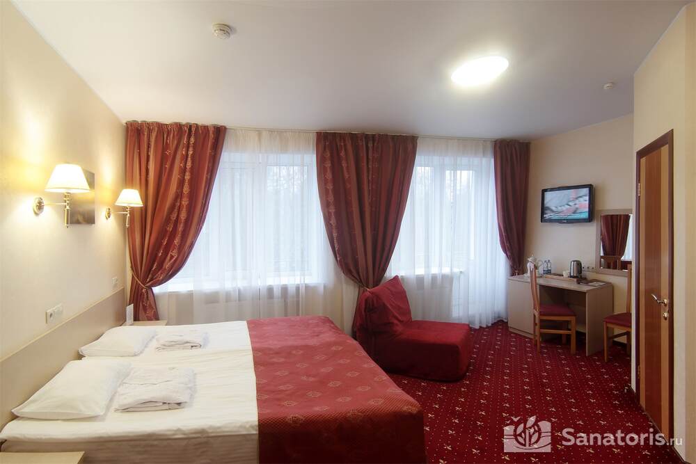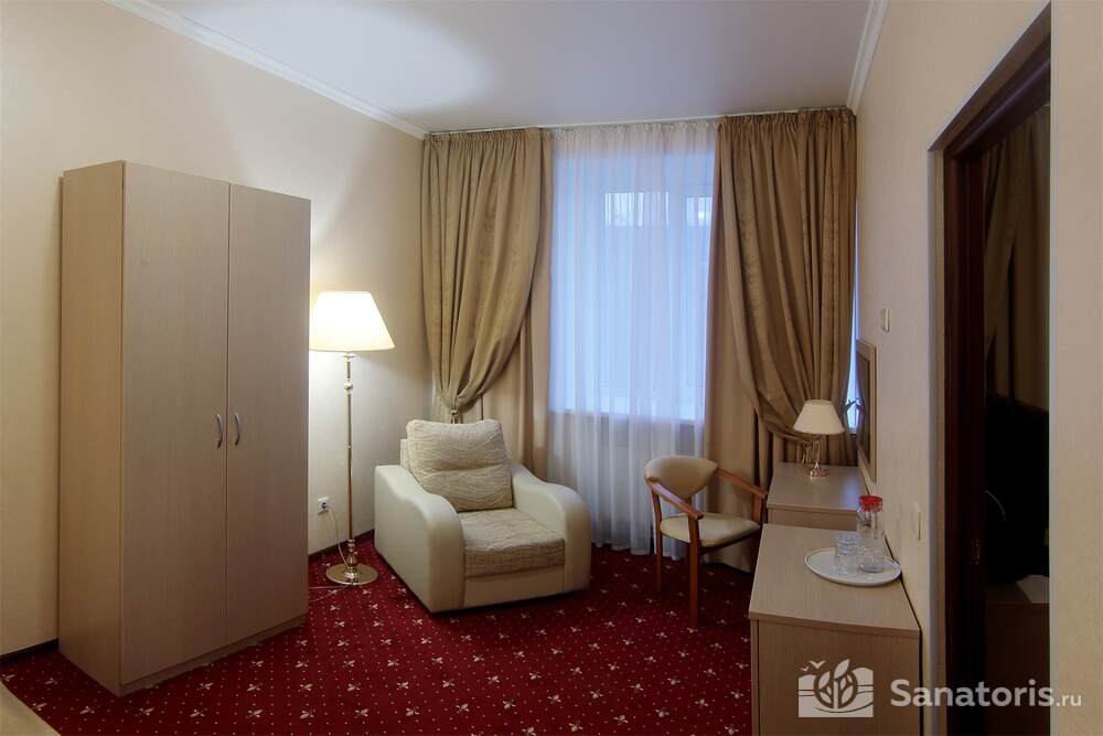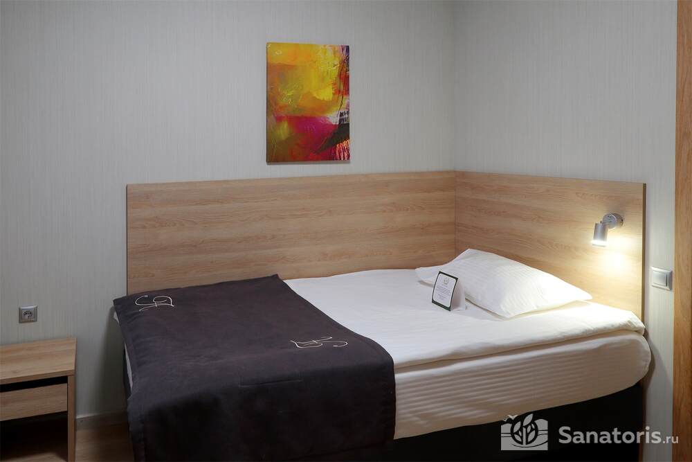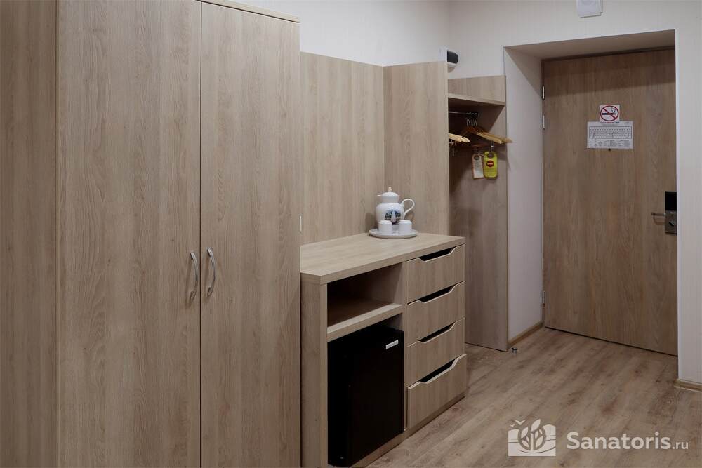 Жилой фонд состоит из отдельно стоящих зданий разной этажности: корпуса №3 и 6 – 5-этажные здания с лифтами, корпус №1 имеет 4 этажа, корпуса №4, 5, 10 – 3 этажа, корпуса №2 и 11 – 2 этажа. Одновременно санаторный комплекс может принять 619 гостей. Гостям предоставляются разные варианты размещения: блок-номера, имеющие общий санузел, номера повышенной комфортности и новые номера в корпусах, которые находятся в уютном парке. Какой бы вариант вы бы не предпочли, каждый из номеров светлый, просторный и оборудован необходимым для комфортного проживания набором мебели. В наличии ТВ, а в некоторых номерах предусмотрен небольшой холодильник, фен, телефон и прочее.