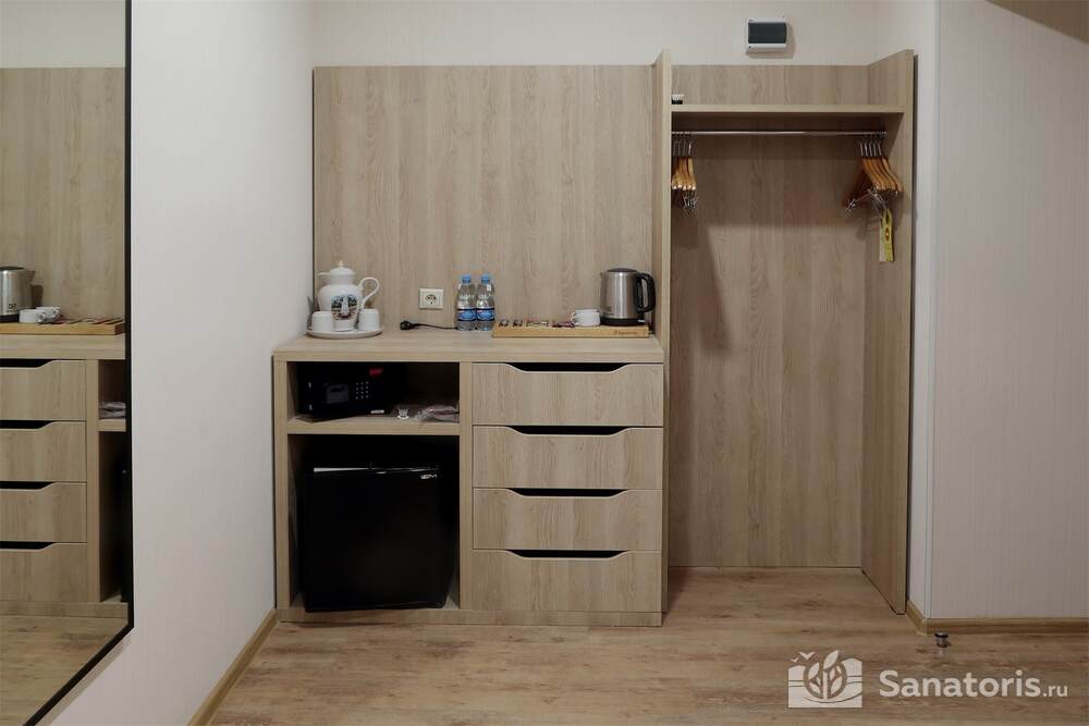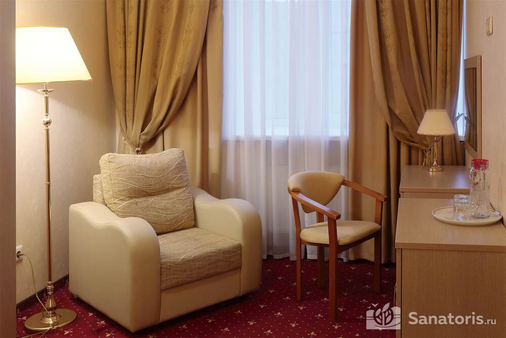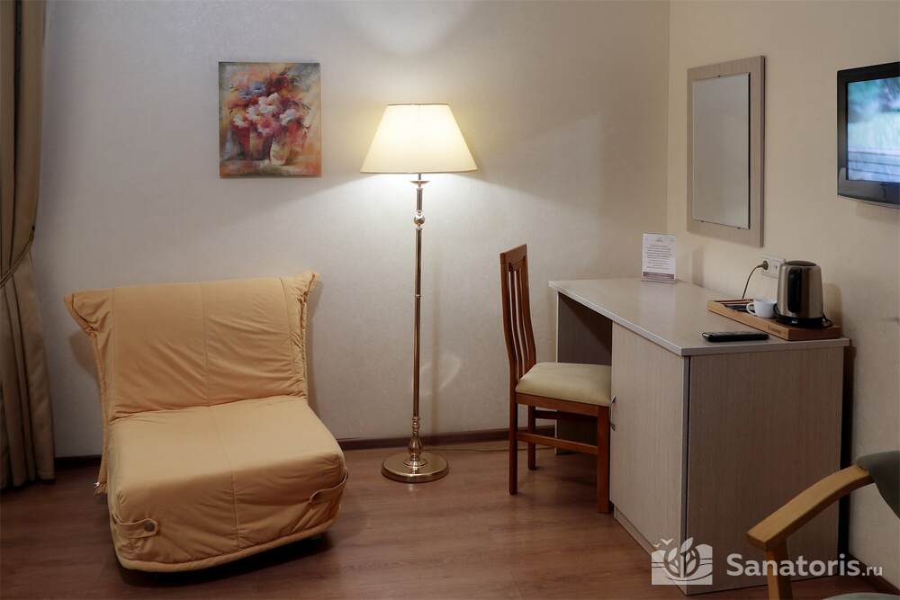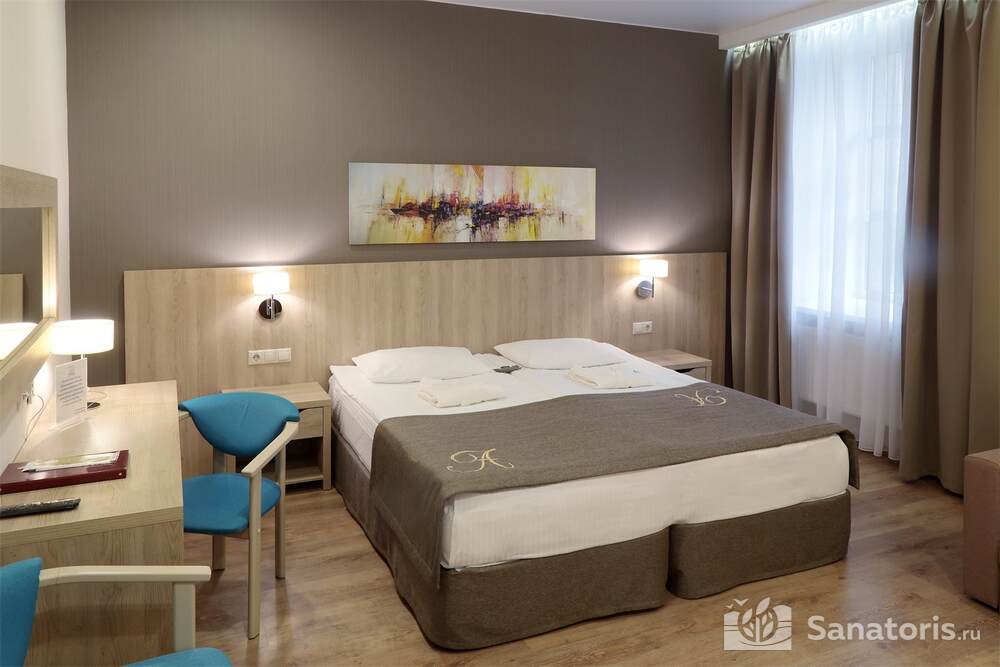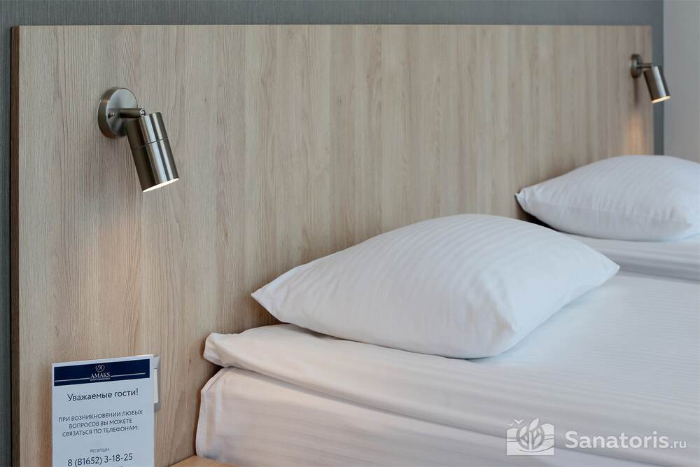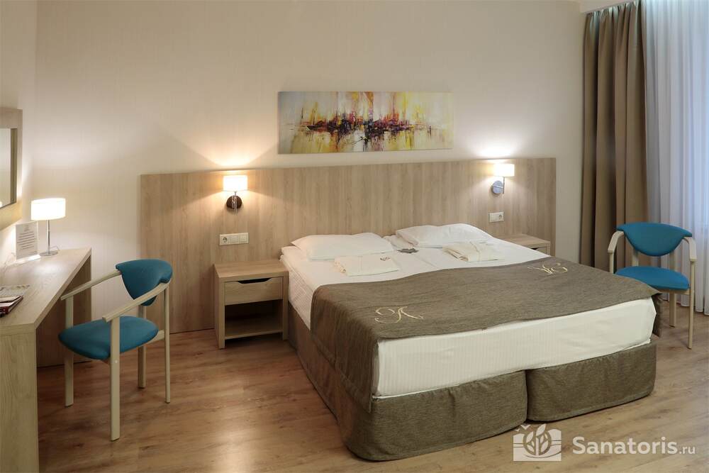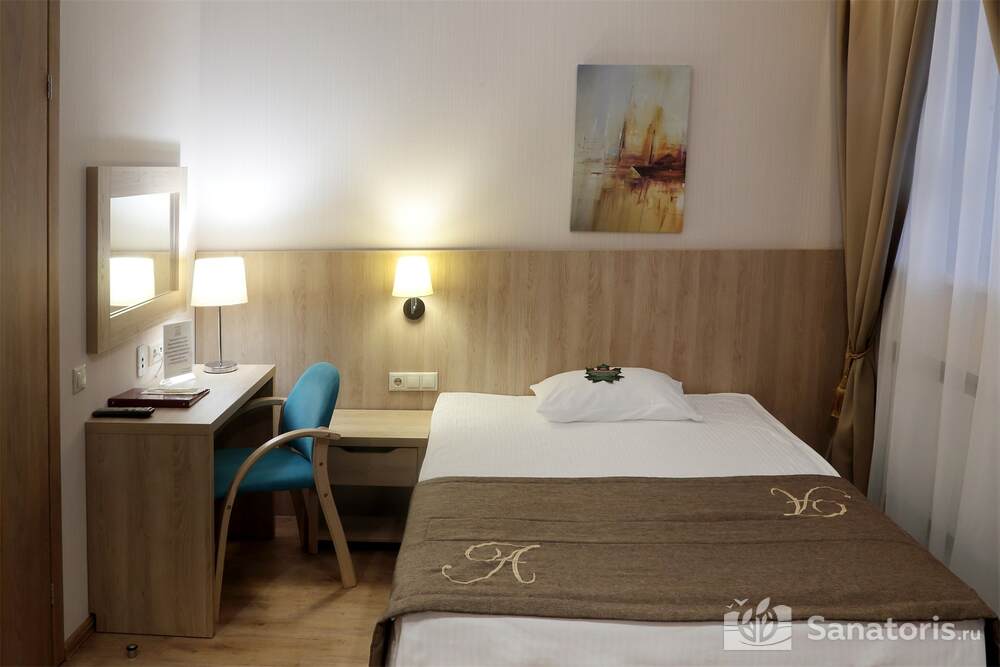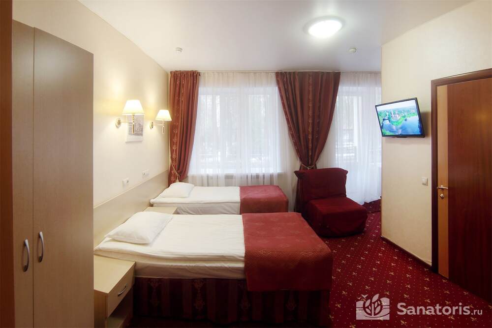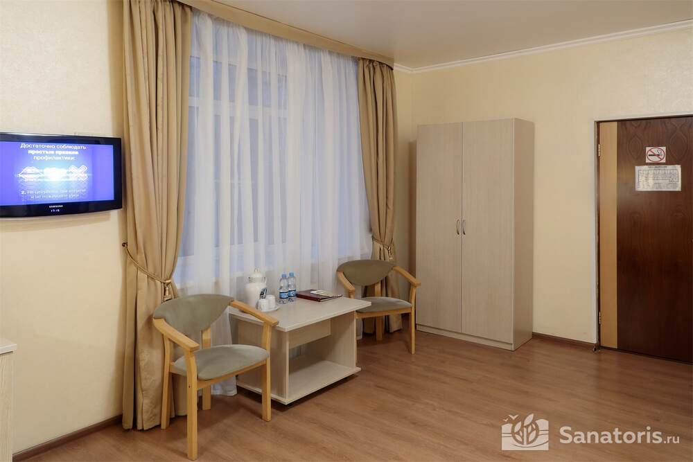 Жилой фонд состоит из отдельно стоящих зданий разной этажности: корпуса №3 и 6 – 5-этажные здания с лифтами, корпус №1 имеет 4 этажа, корпуса №4, 5, 10 – 3 этажа, корпуса №2 и 11 – 2 этажа. Одновременно санаторный комплекс может принять 619 гостей. Гостям предоставляются разные варианты размещения: блок-номера, имеющие общий санузел, номера повышенной комфортности и новые номера в корпусах, которые находятся в уютном парке. Какой бы вариант вы бы не предпочли, каждый из номеров светлый, просторный и оборудован необходимым для комфортного проживания набором мебели. В наличии ТВ, а в некоторых номерах предусмотрен небольшой холодильник, фен, телефон и прочее.