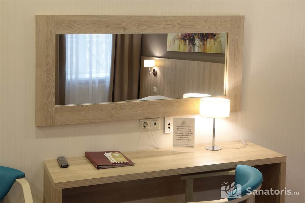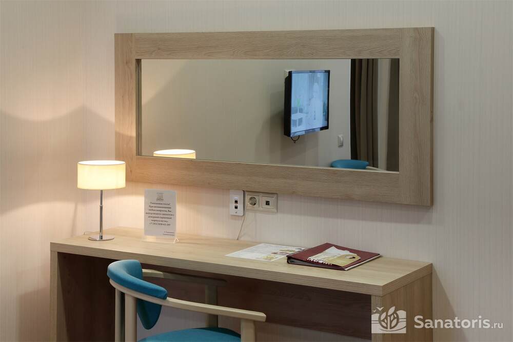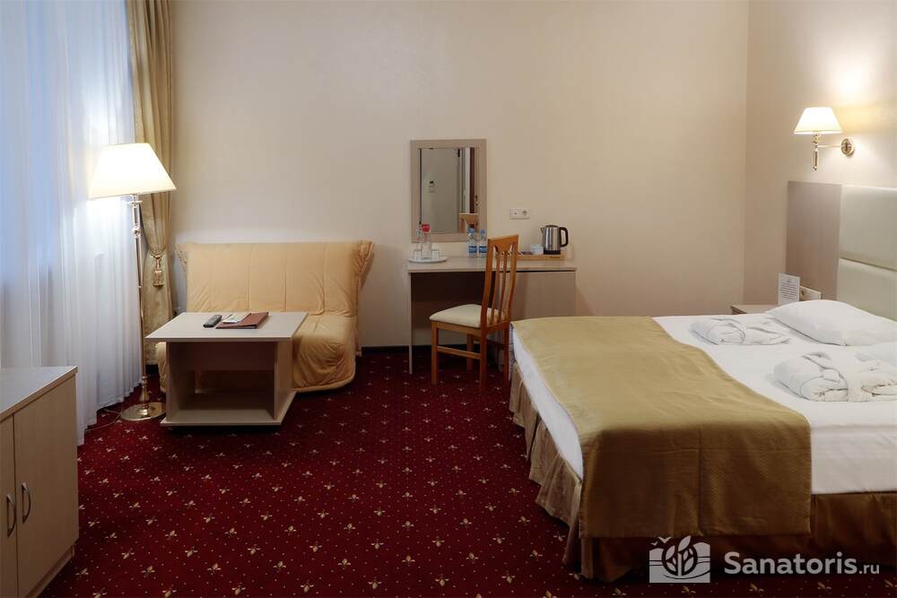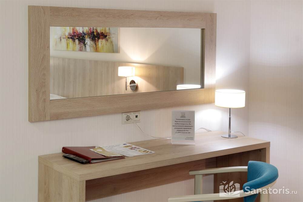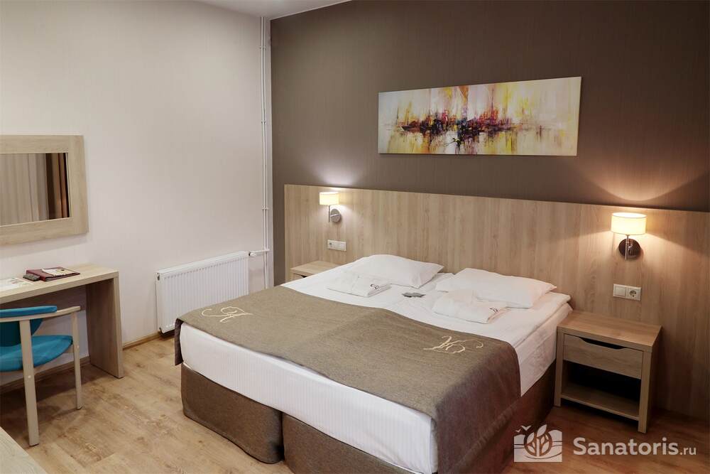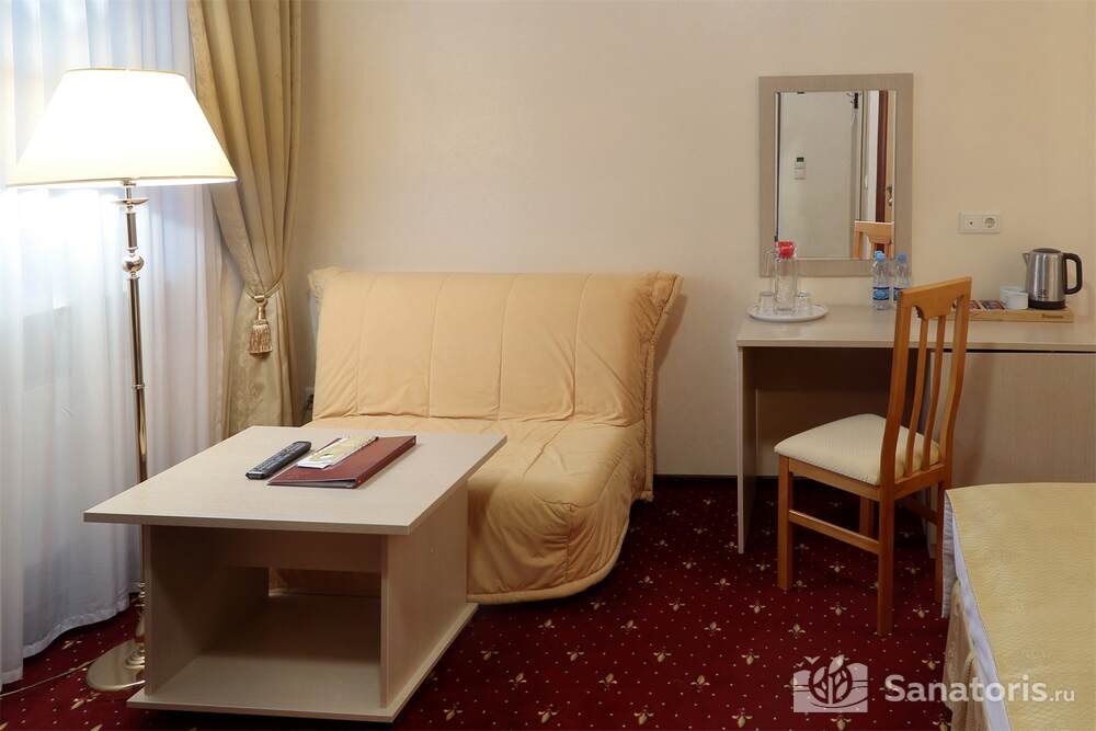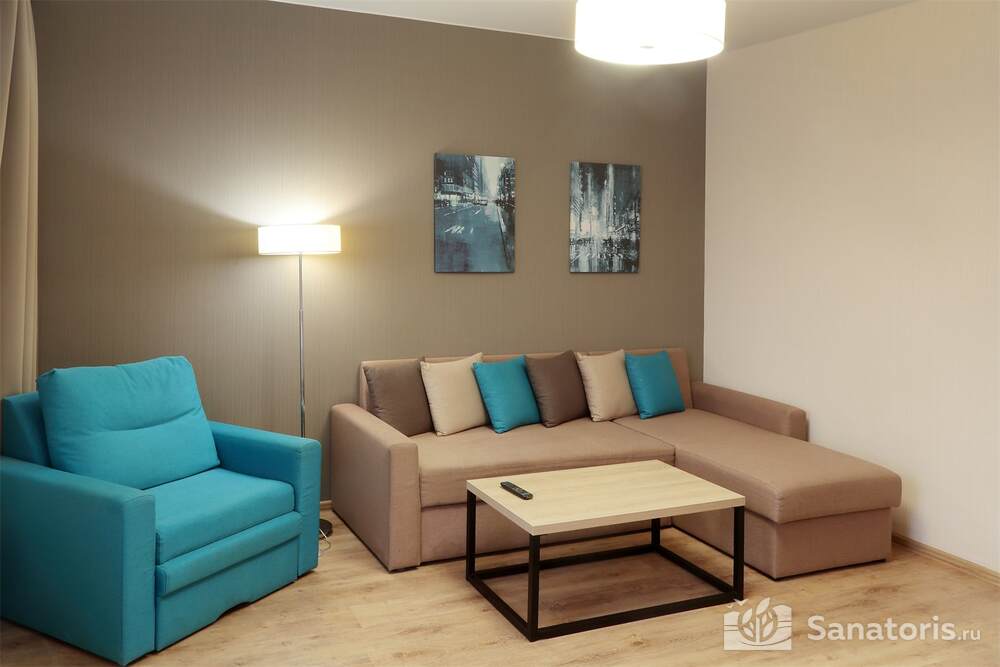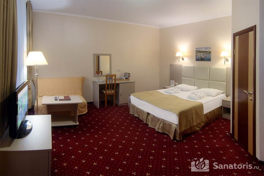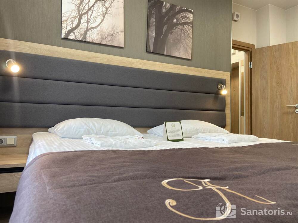 Жилой фонд состоит из отдельно стоящих зданий разной этажности: корпуса №3 и 6 – 5-этажные здания с лифтами, корпус №1 имеет 4 этажа, корпуса №4, 5, 10 – 3 этажа, корпуса №2 и 11 – 2 этажа. Одновременно санаторный комплекс может принять 619 гостей. Гостям предоставляются разные варианты размещения: блок-номера, имеющие общий санузел, номера повышенной комфортности и новые номера в корпусах, которые находятся в уютном парке. Какой бы вариант вы бы не предпочли, каждый из номеров светлый, просторный и оборудован необходимым для комфортного проживания набором мебели. В наличии ТВ, а в некоторых номерах предусмотрен небольшой холодильник, фен, телефон и прочее.