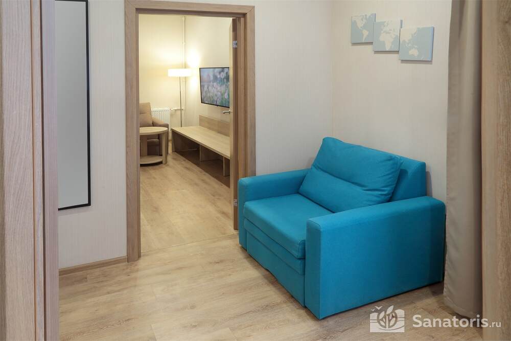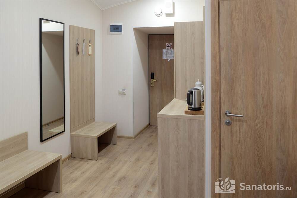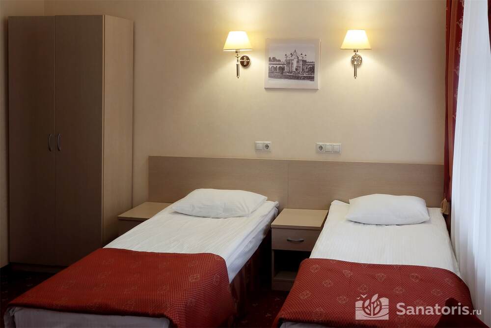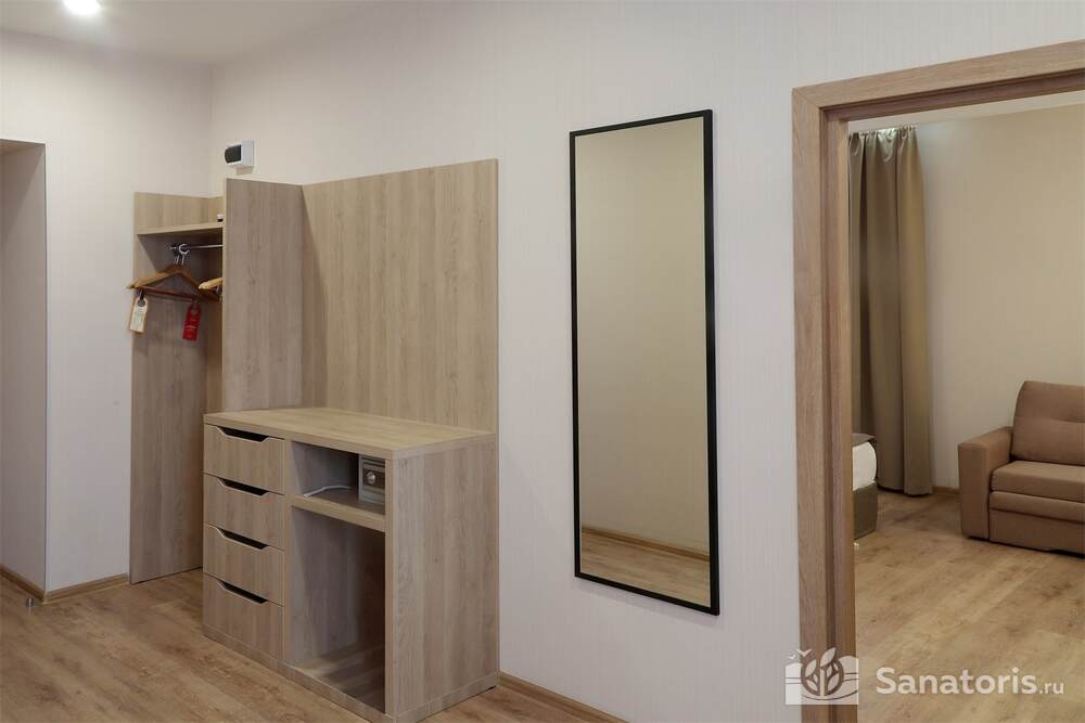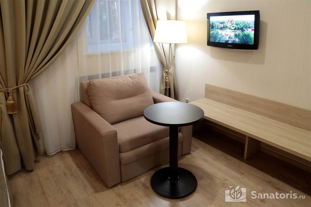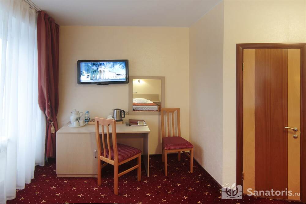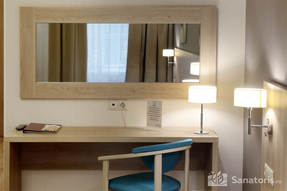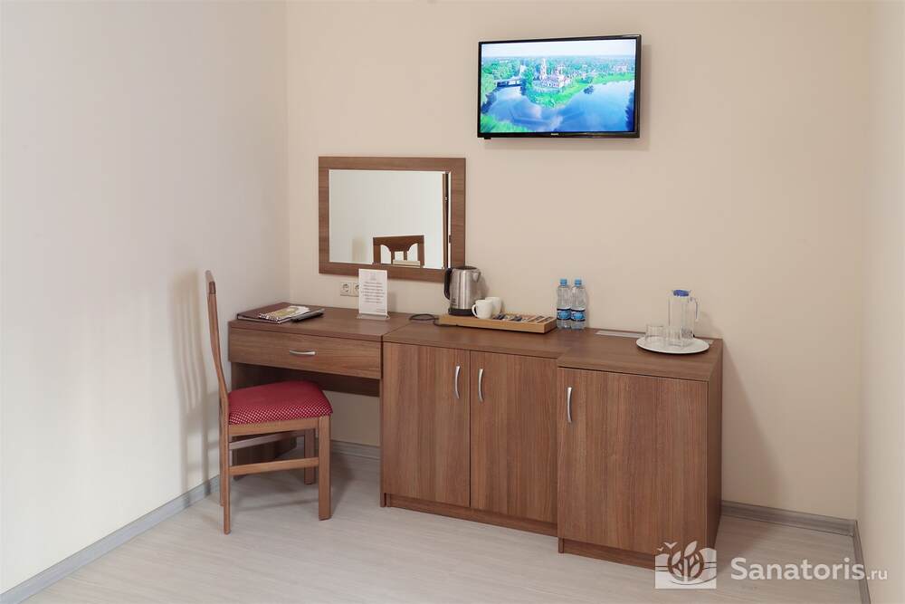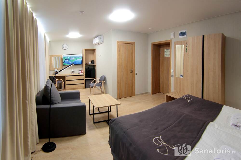 Жилой фонд состоит из отдельно стоящих зданий разной этажности: корпуса №3 и 6 – 5-этажные здания с лифтами, корпус №1 имеет 4 этажа, корпуса №4, 5, 10 – 3 этажа, корпуса №2 и 11 – 2 этажа. Одновременно санаторный комплекс может принять 619 гостей. Гостям предоставляются разные варианты размещения: блок-номера, имеющие общий санузел, номера повышенной комфортности и новые номера в корпусах, которые находятся в уютном парке. Какой бы вариант вы бы не предпочли, каждый из номеров светлый, просторный и оборудован необходимым для комфортного проживания набором мебели. В наличии ТВ, а в некоторых номерах предусмотрен небольшой холодильник, фен, телефон и прочее.