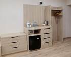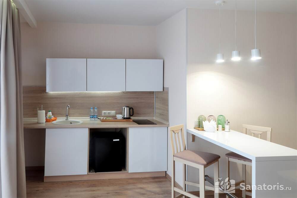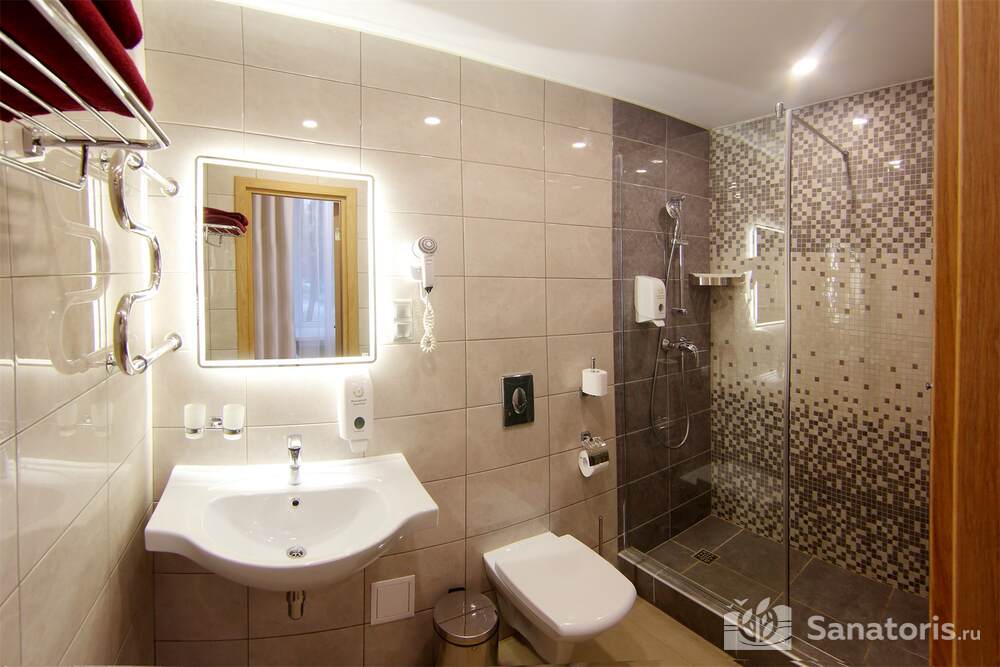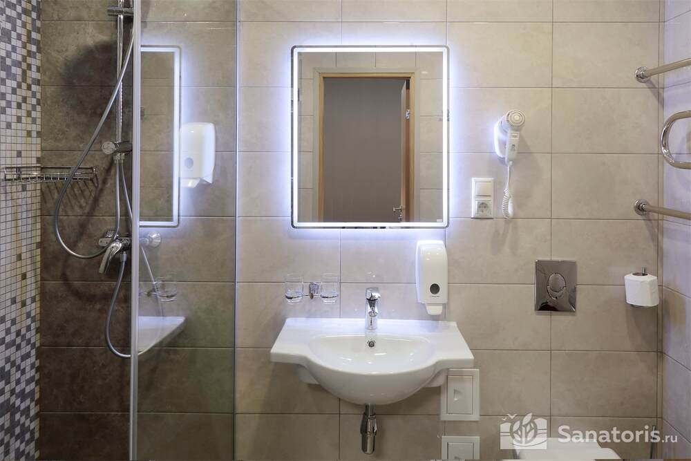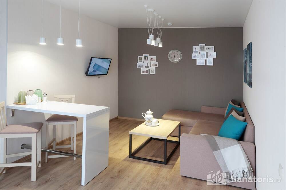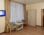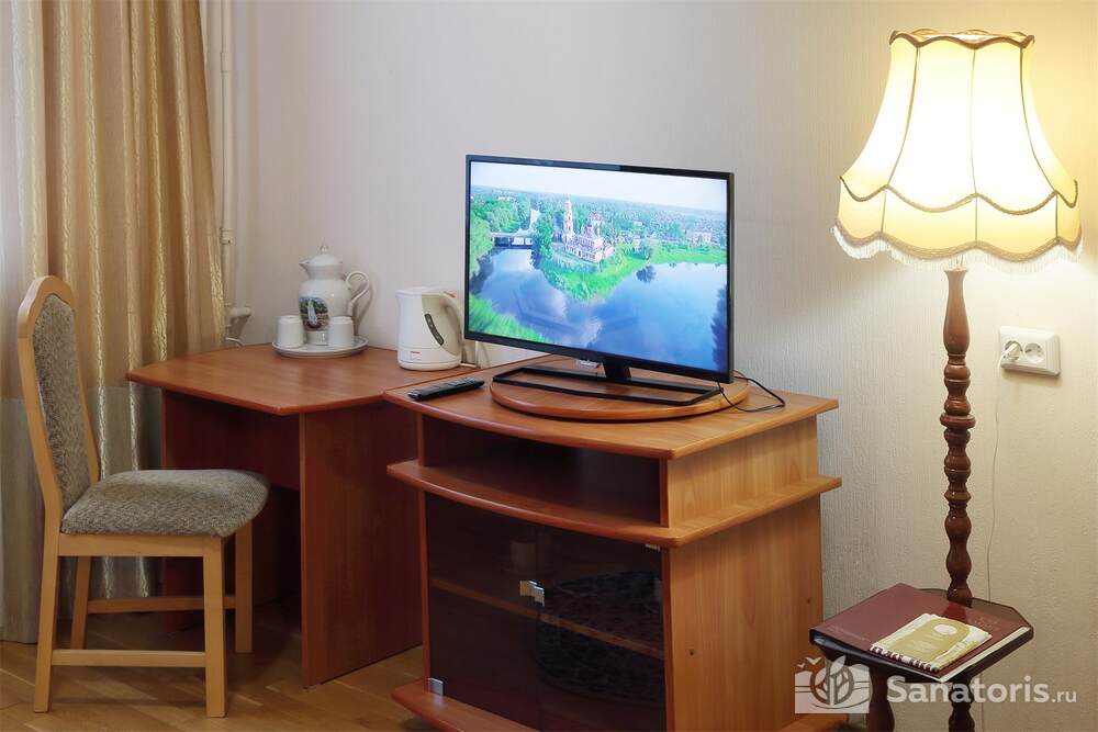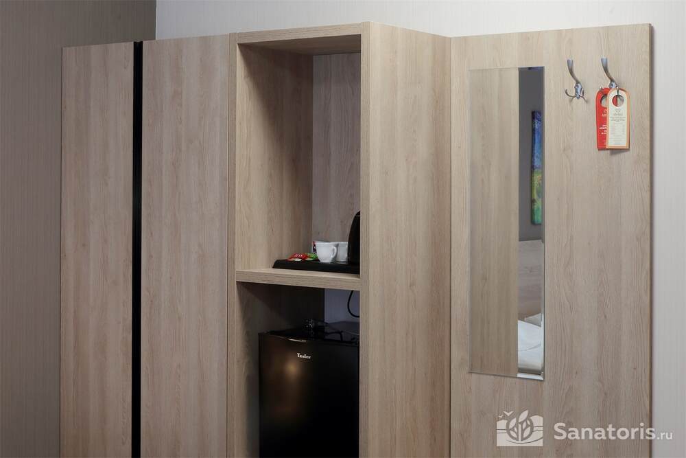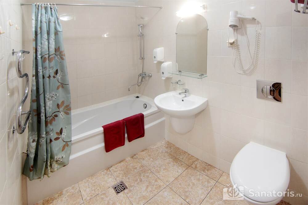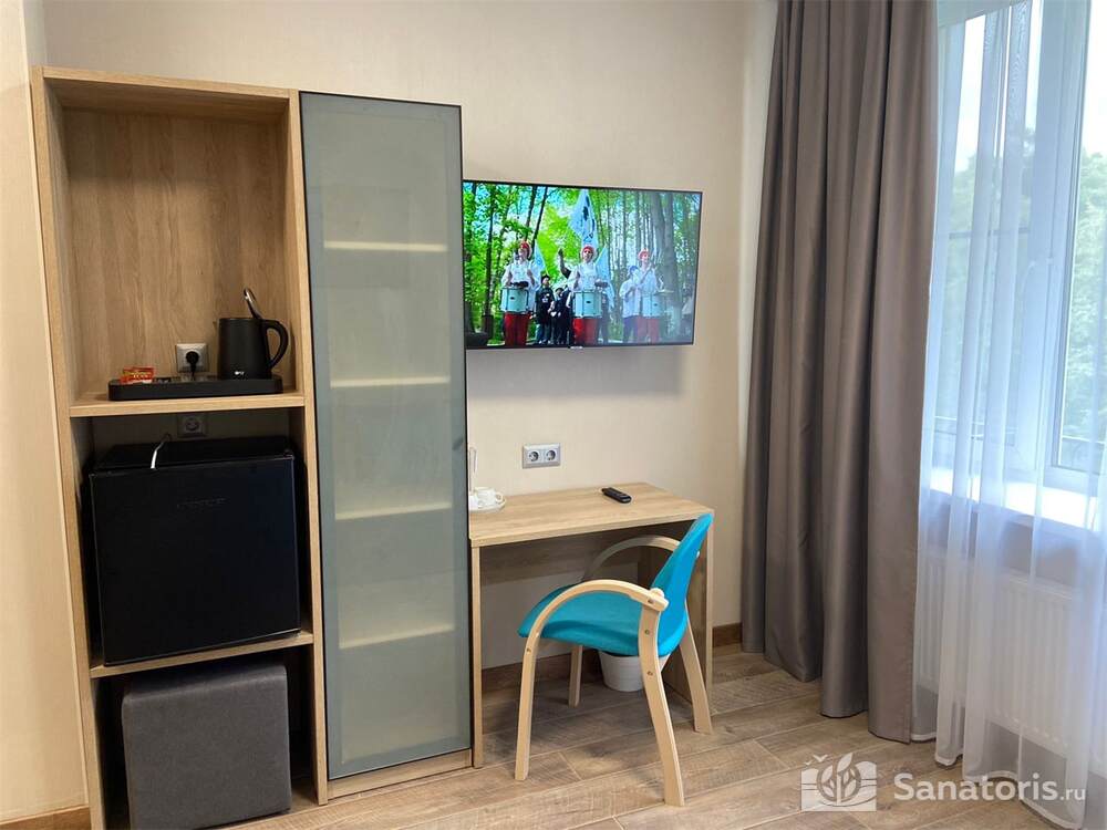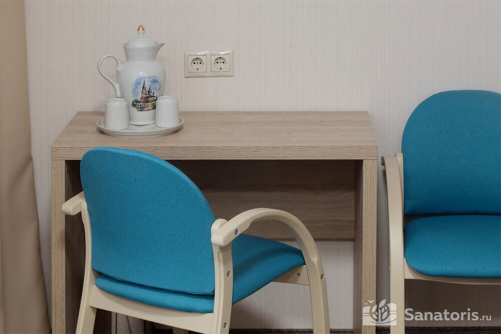 Жилой фонд состоит из отдельно стоящих зданий разной этажности: корпуса №3 и 6 – 5-этажные здания с лифтами, корпус №1 имеет 4 этажа, корпуса №4, 5, 10 – 3 этажа, корпуса №2 и 11 – 2 этажа. Одновременно санаторный комплекс может принять 619 гостей. Гостям предоставляются разные варианты размещения: блок-номера, имеющие общий санузел, номера повышенной комфортности и новые номера в корпусах, которые находятся в уютном парке. Какой бы вариант вы бы не предпочли, каждый из номеров светлый, просторный и оборудован необходимым для комфортного проживания набором мебели. В наличии ТВ, а в некоторых номерах предусмотрен небольшой холодильник, фен, телефон и прочее.