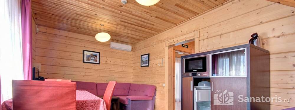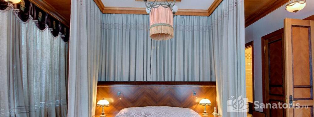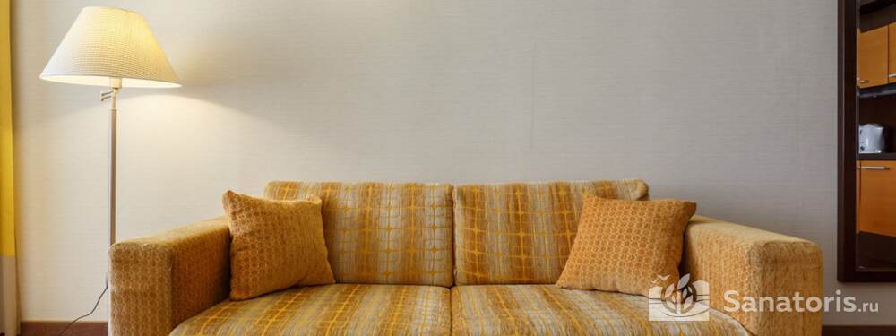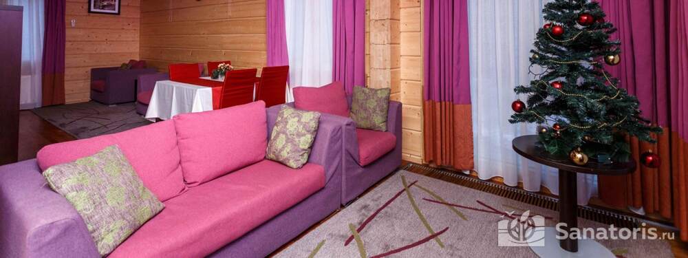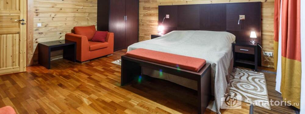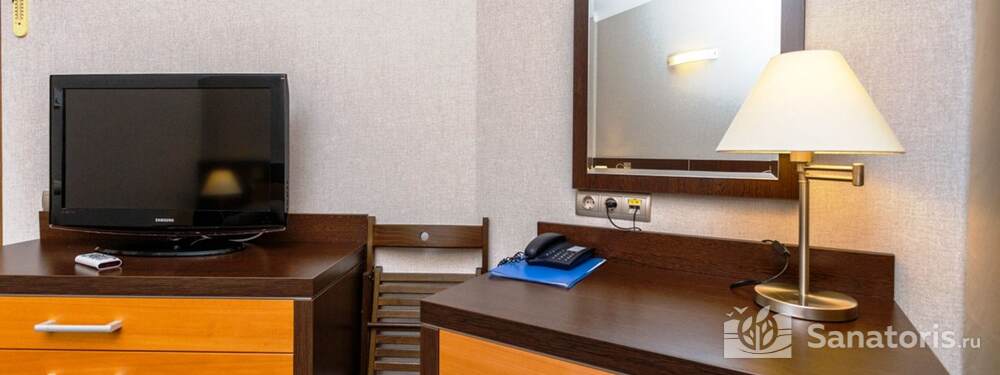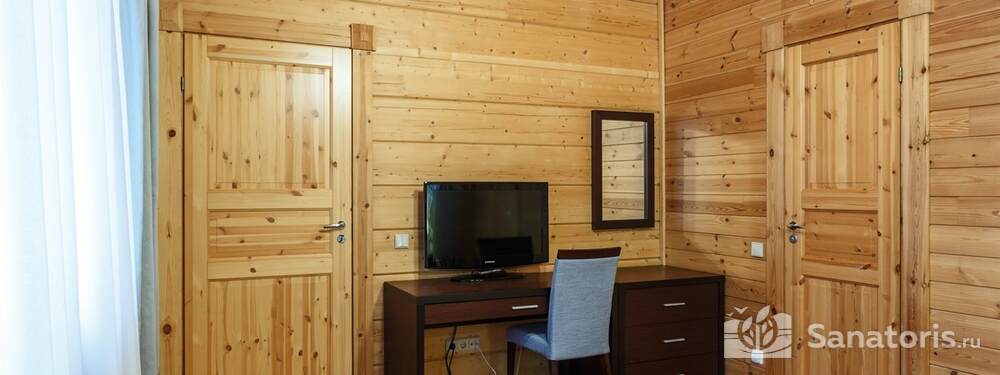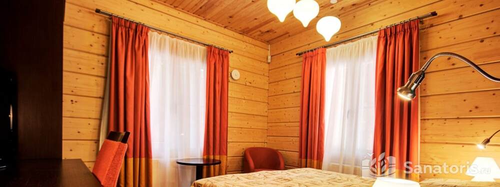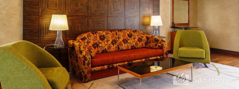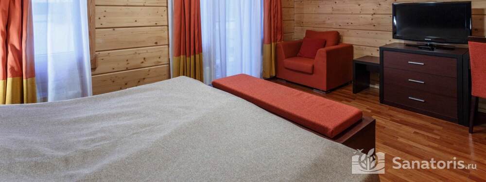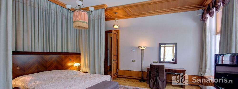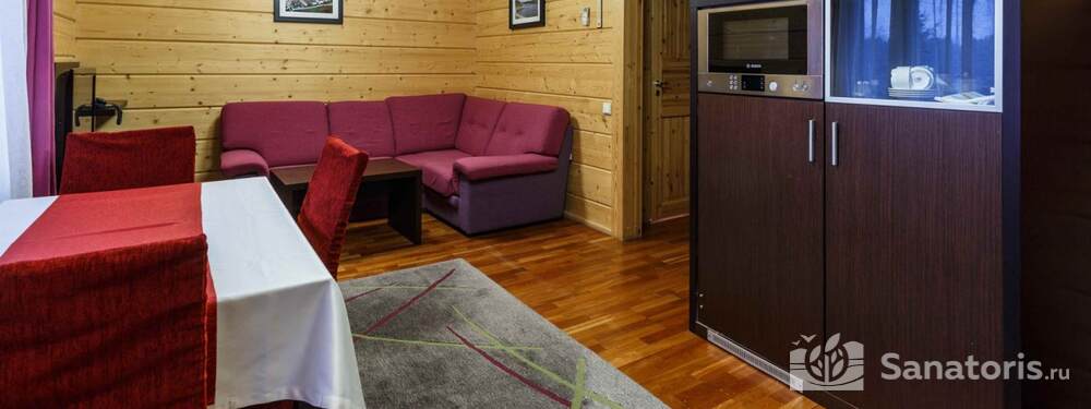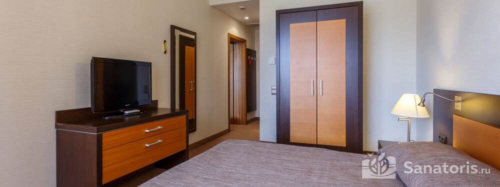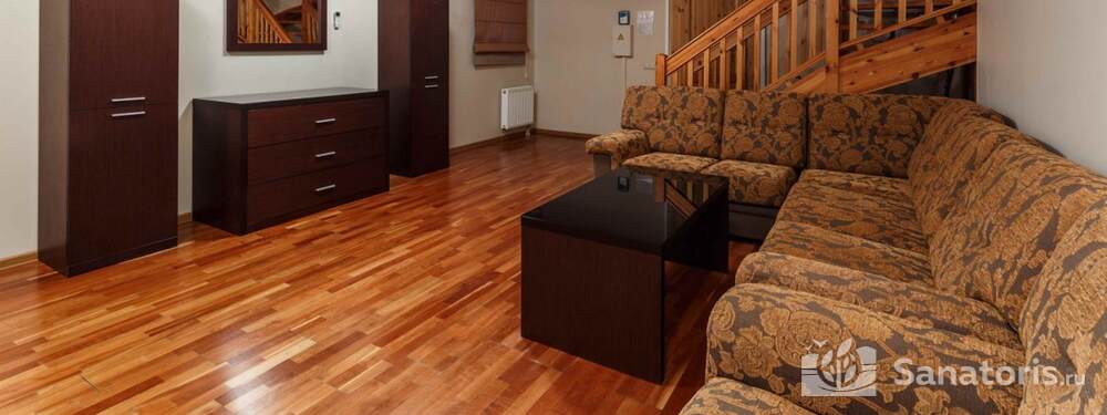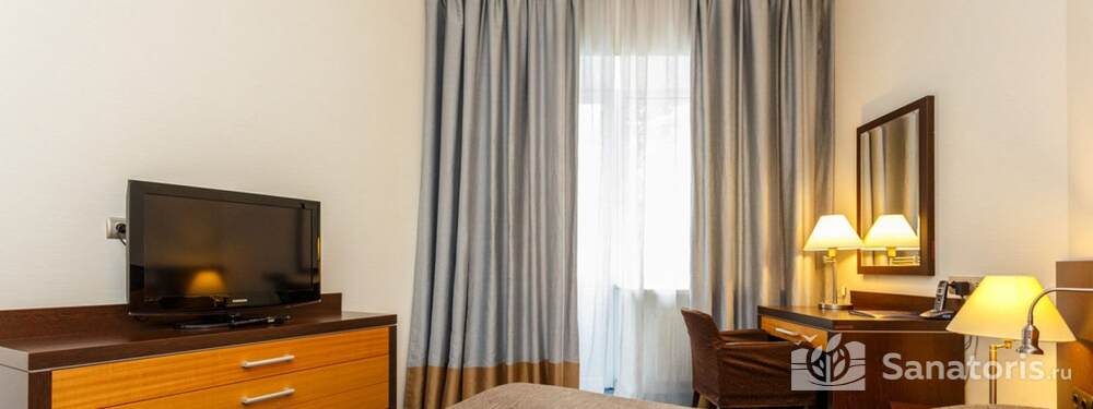 На территории санатория имеются апартаменты, которые могут вместить до трех отдыхающих, что позволяет организовать в нем пребывания всей семьей. Номера обустроены всем необходимым, начиная от журнального столика и заканчивая холодильником. В помещениях класса люкс встречается телевизор, сейф, кондиционер и даже фен. Все это упрощает пребывания в санатории и делает отдых более комфортабельным.