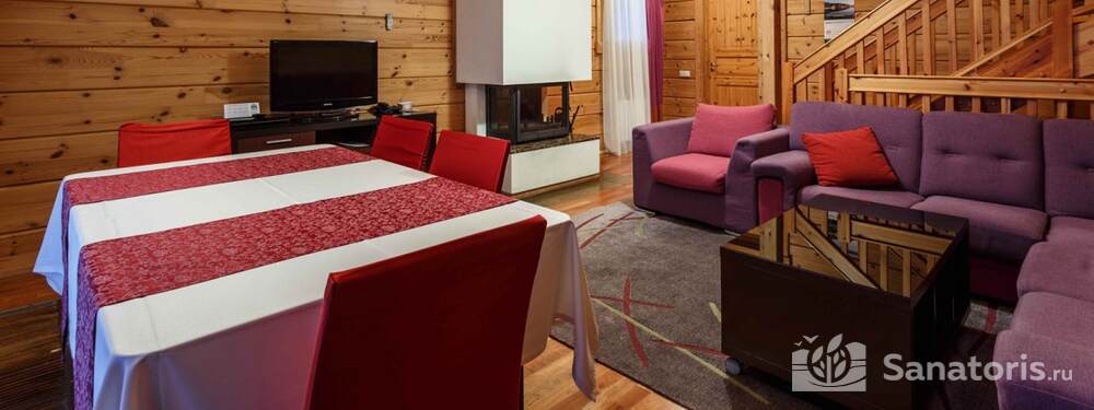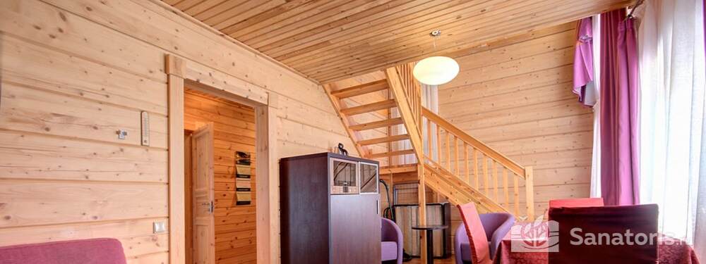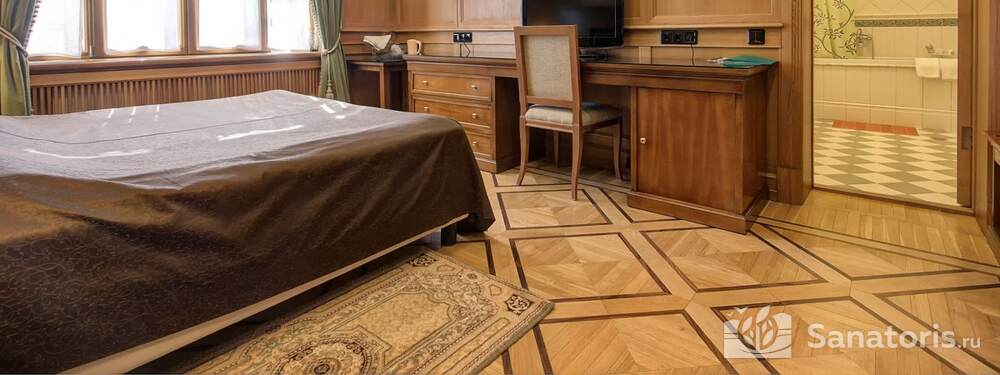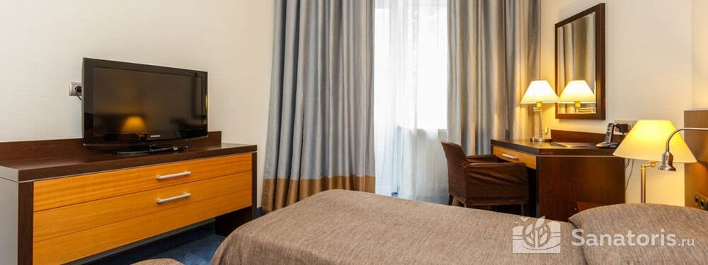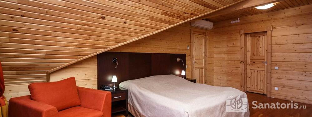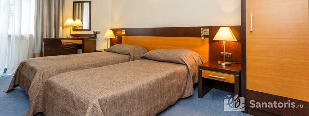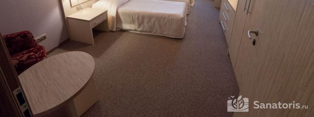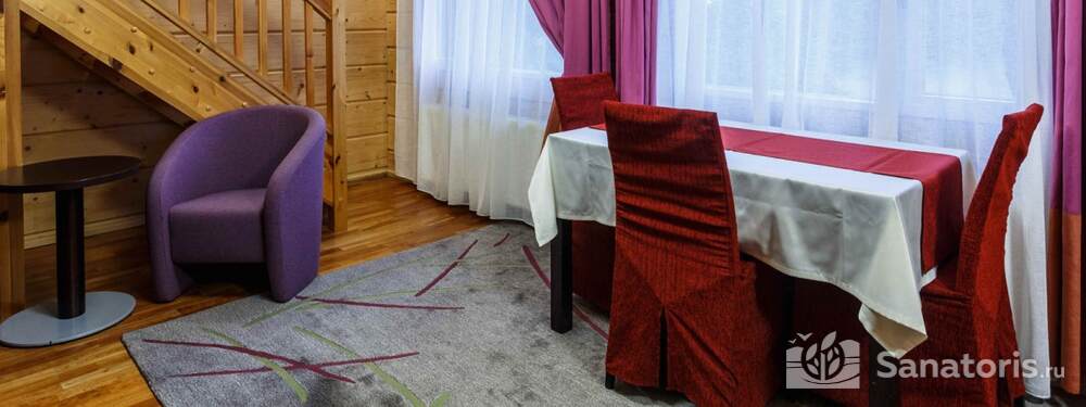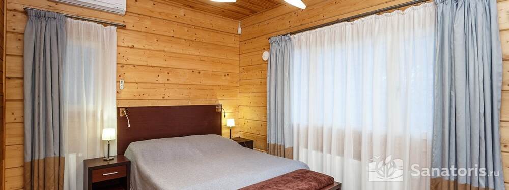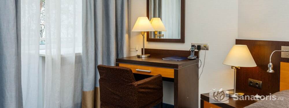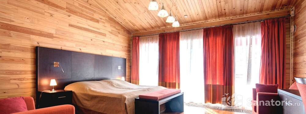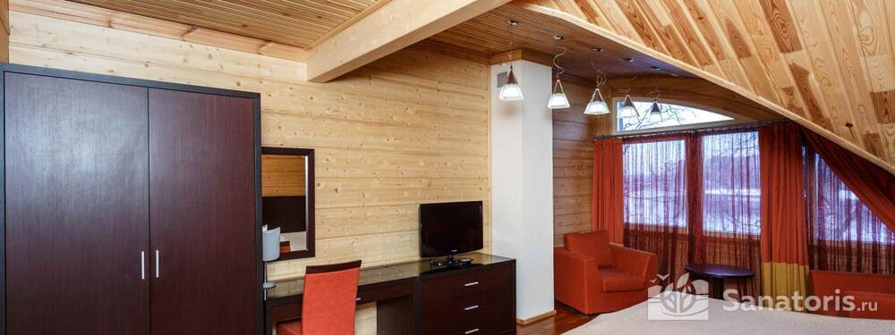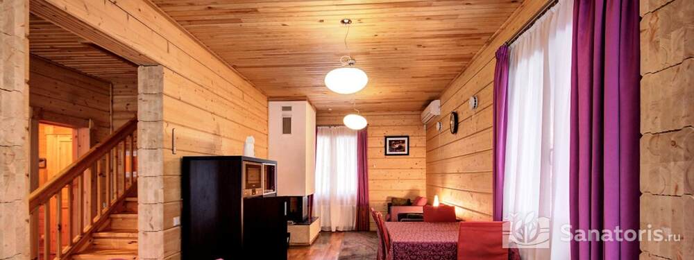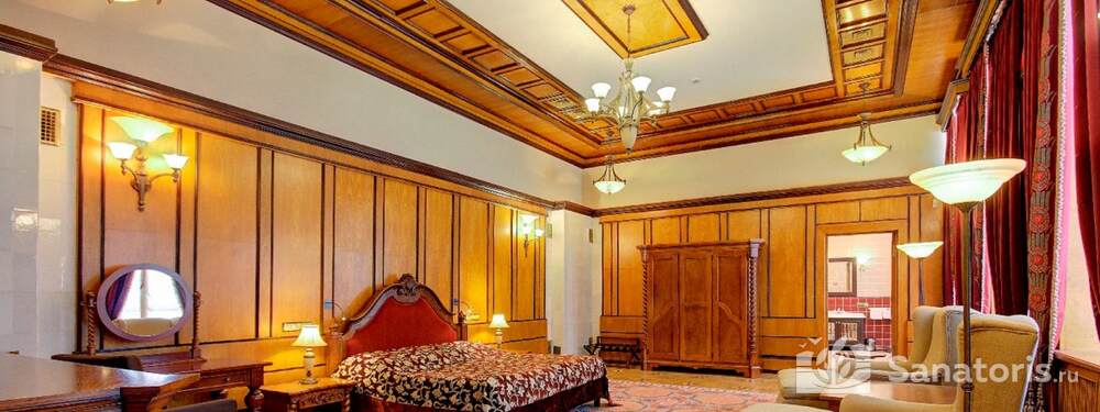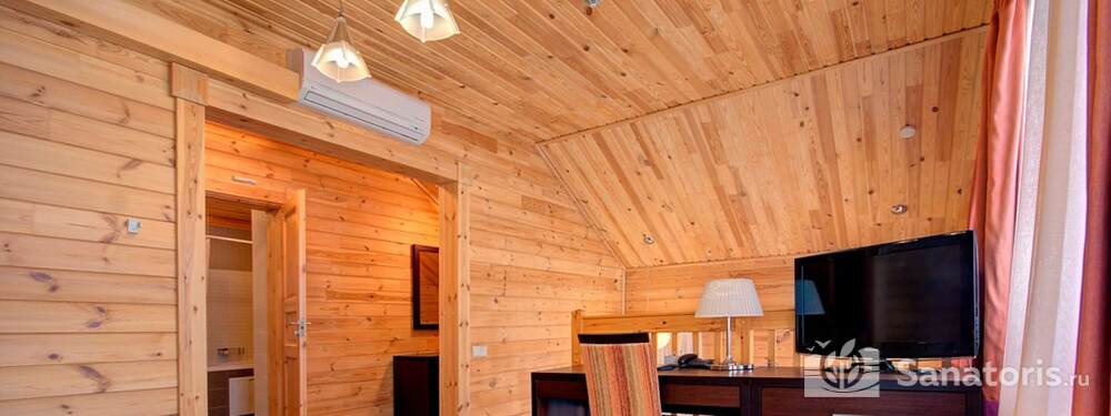 На территории санатория имеются апартаменты, которые могут вместить до трех отдыхающих, что позволяет организовать в нем пребывания всей семьей. Номера обустроены всем необходимым, начиная от журнального столика и заканчивая холодильником. В помещениях класса люкс встречается телевизор, сейф, кондиционер и даже фен. Все это упрощает пребывания в санатории и делает отдых более комфортабельным.