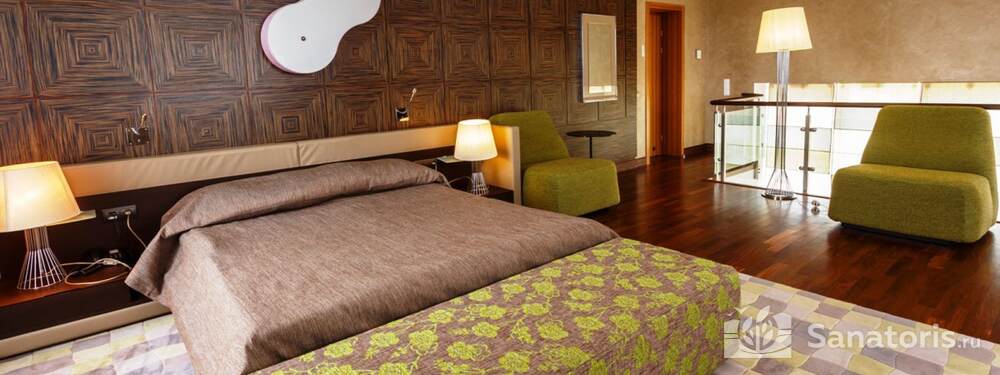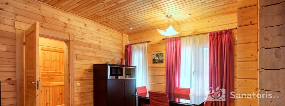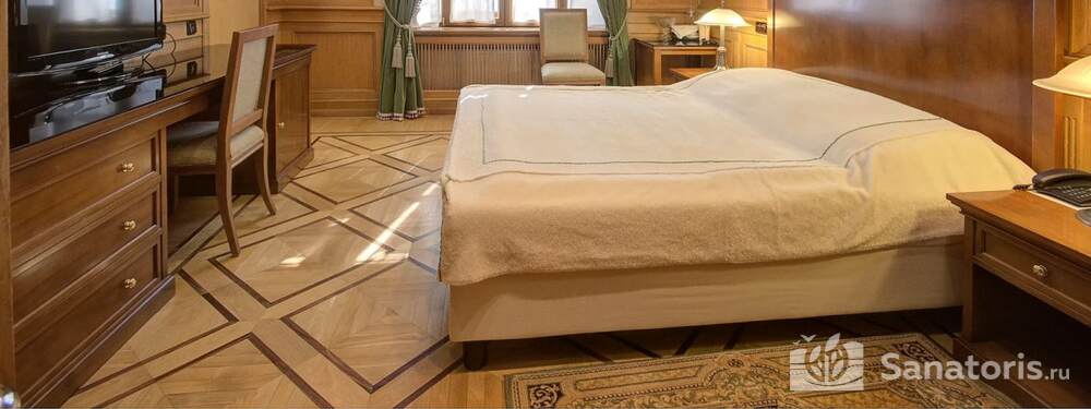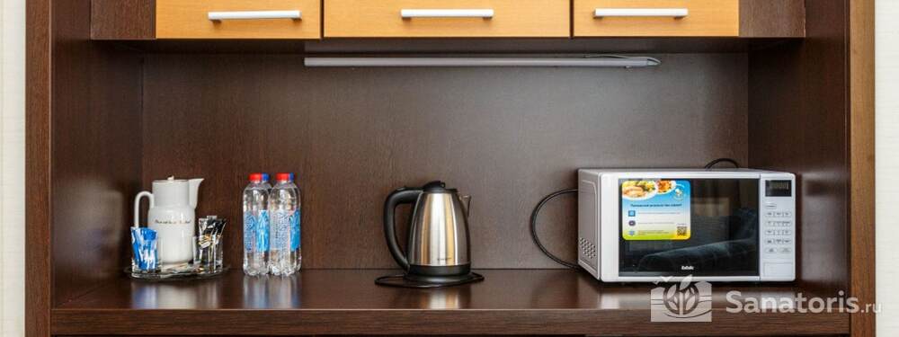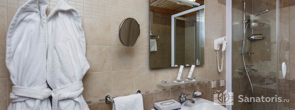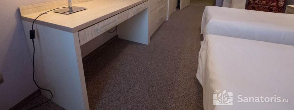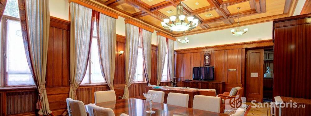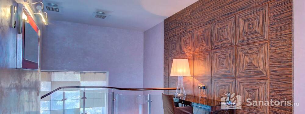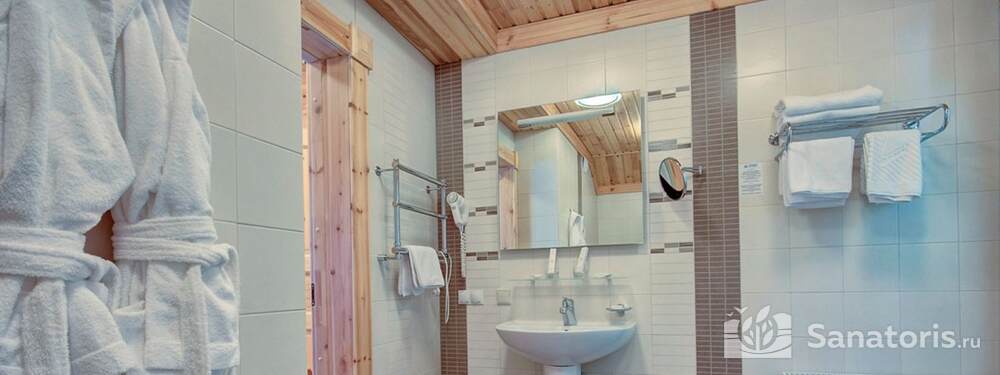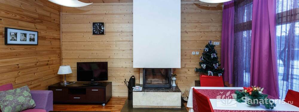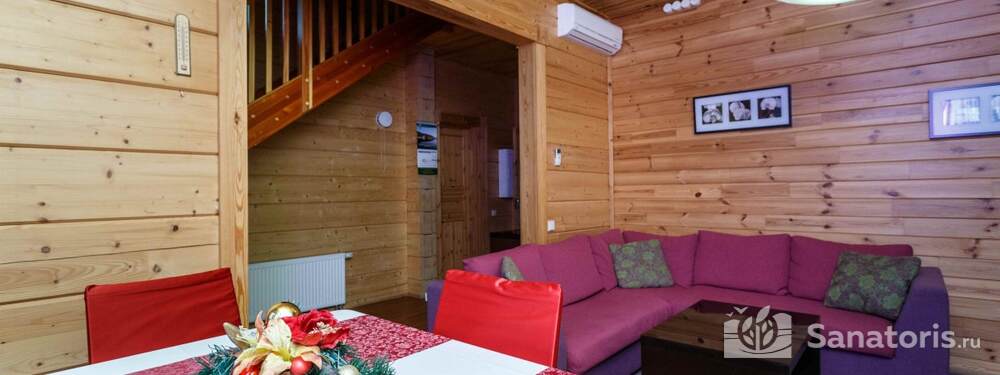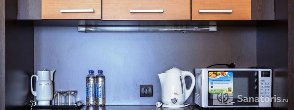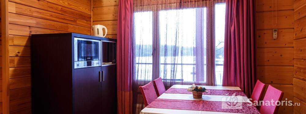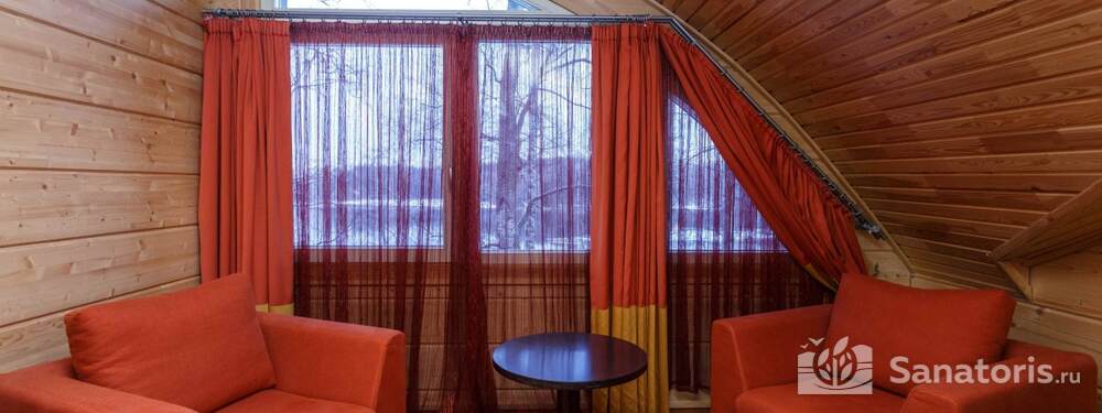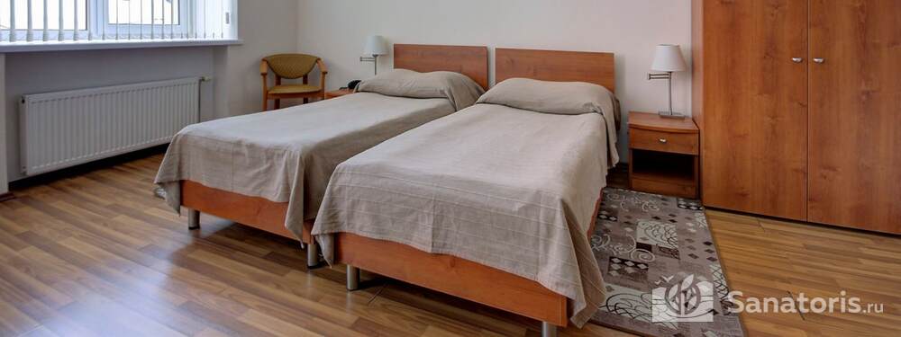 На территории санатория имеются апартаменты, которые могут вместить до трех отдыхающих, что позволяет организовать в нем пребывания всей семьей. Номера обустроены всем необходимым, начиная от журнального столика и заканчивая холодильником. В помещениях класса люкс встречается телевизор, сейф, кондиционер и даже фен. Все это упрощает пребывания в санатории и делает отдых более комфортабельным.