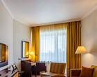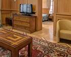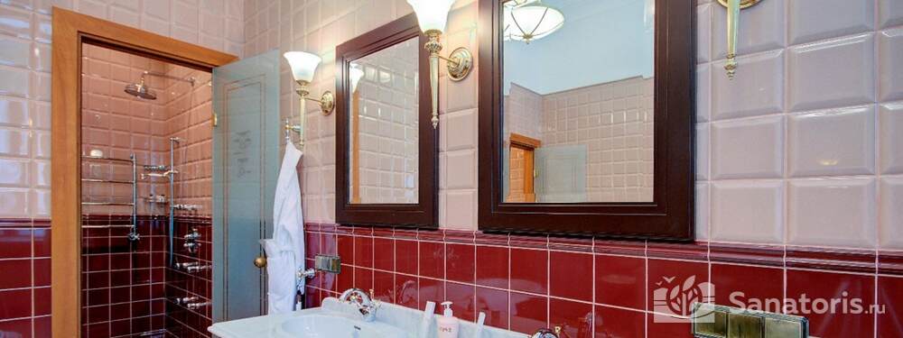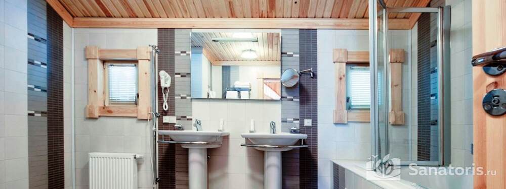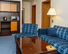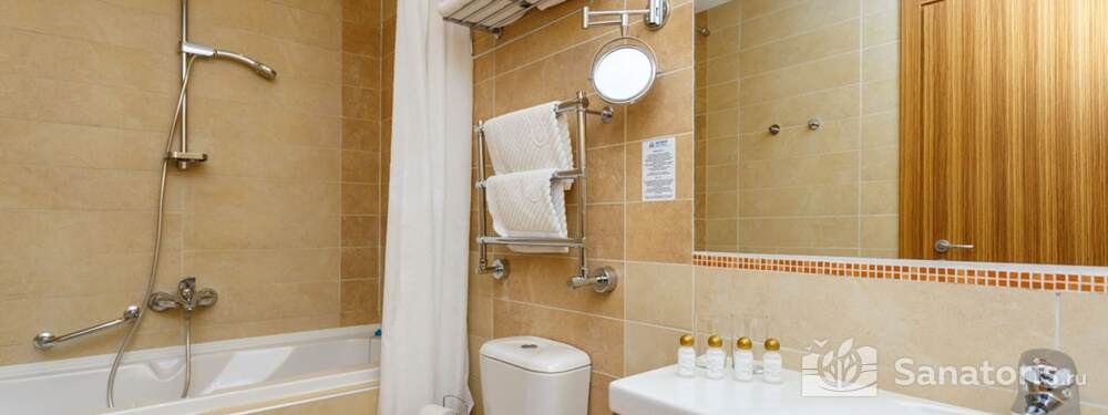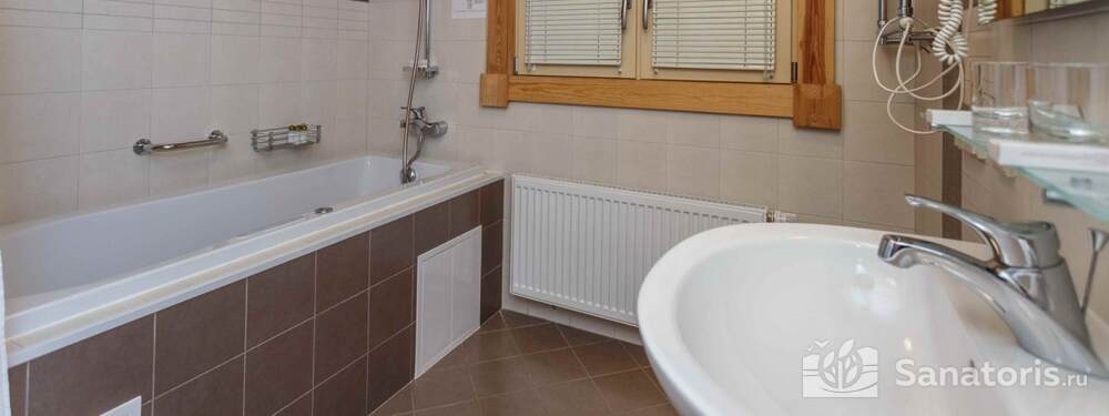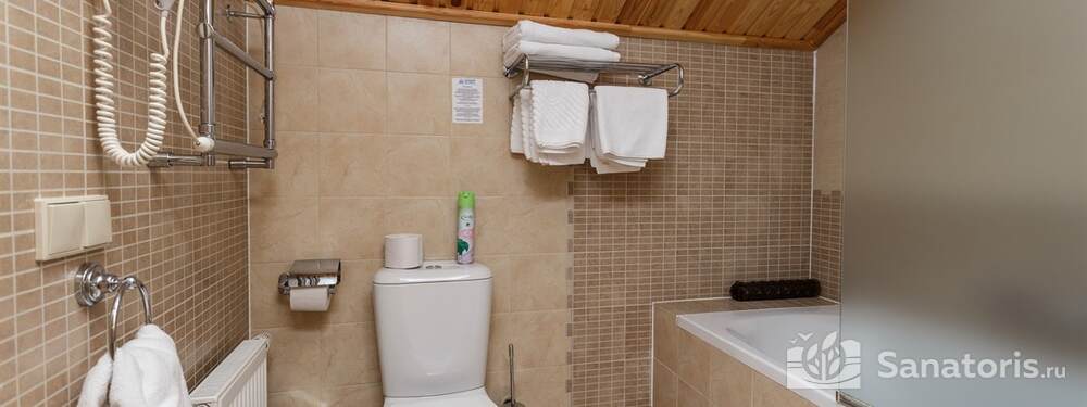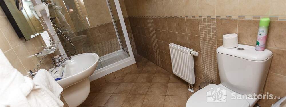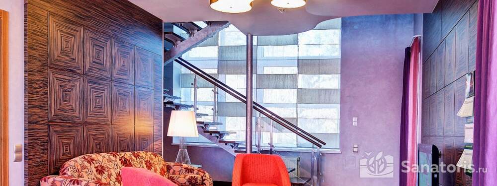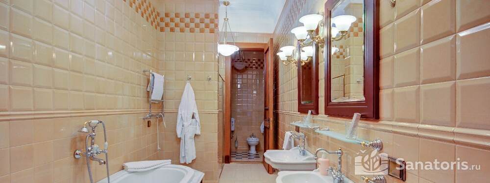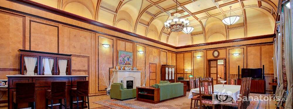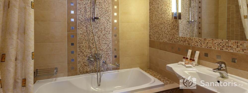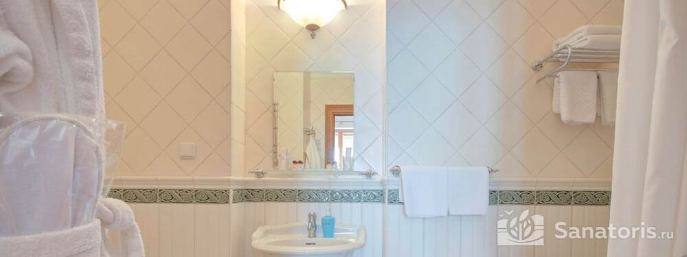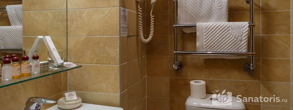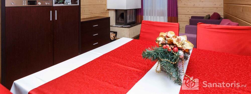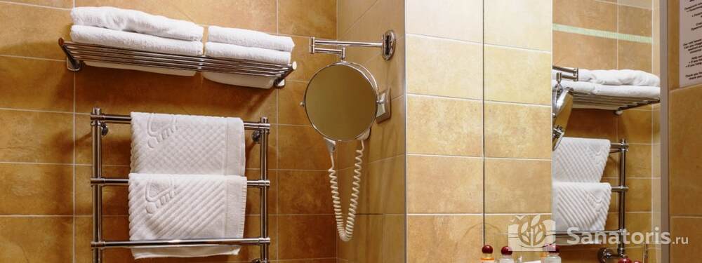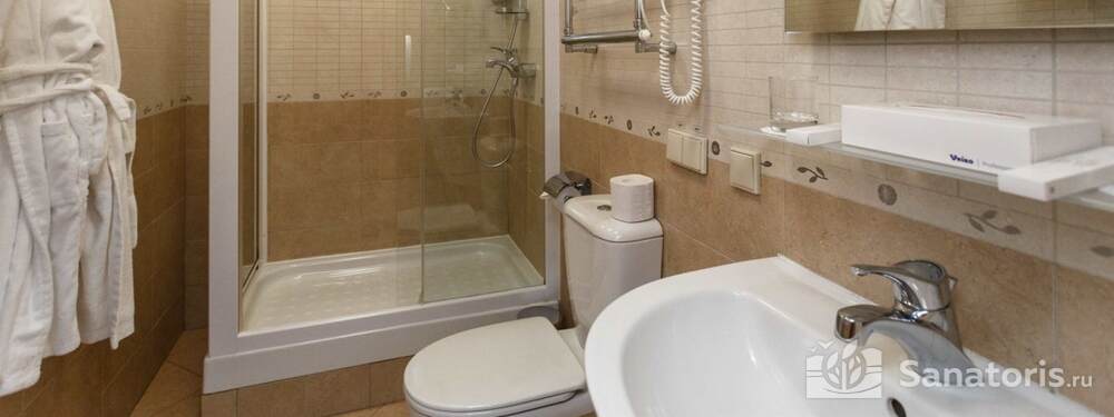На территории санатория имеются апартаменты, которые могут вместить до трех отдыхающих, что позволяет организовать в нем пребывания всей семьей. Номера обустроены всем необходимым, начиная от журнального столика и заканчивая холодильником. В помещениях класса люкс встречается телевизор, сейф, кондиционер и даже фен. Все это упрощает пребывания в санатории и делает отдых более комфортабельным.