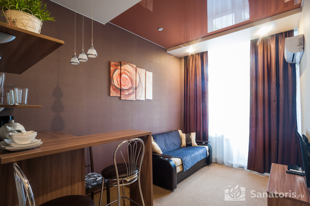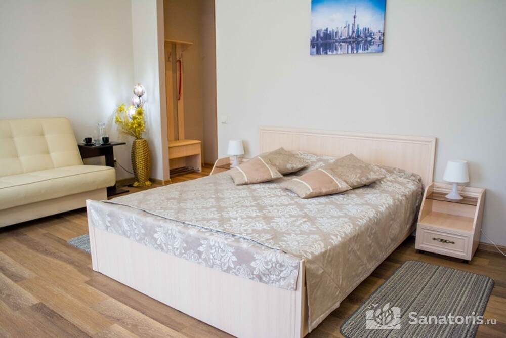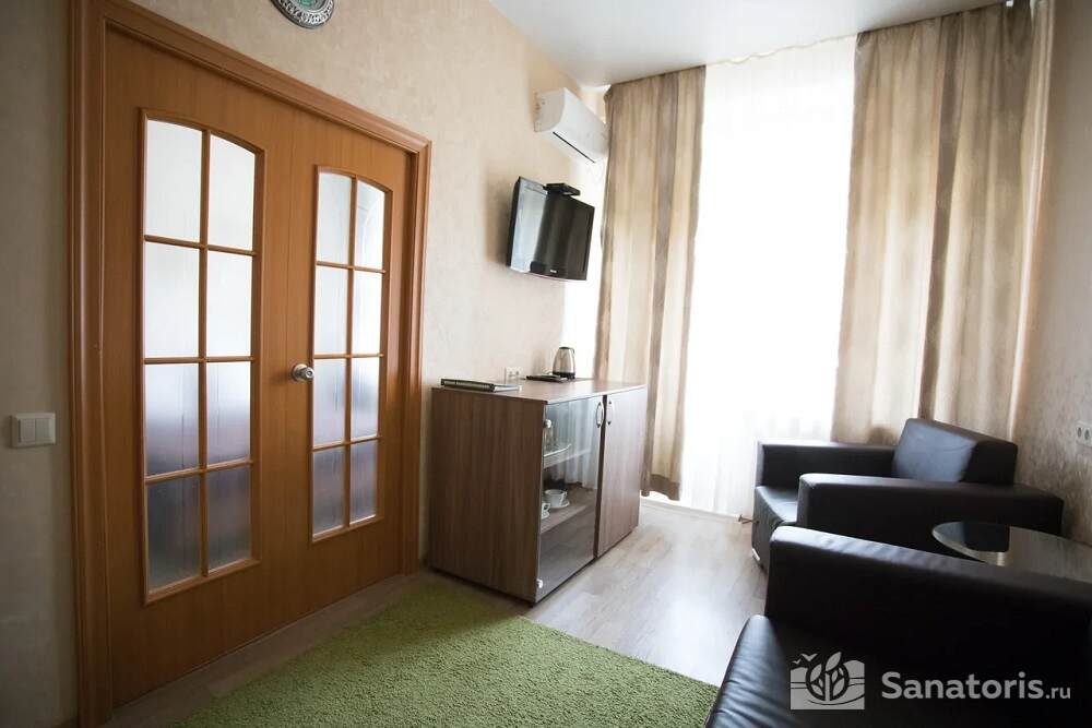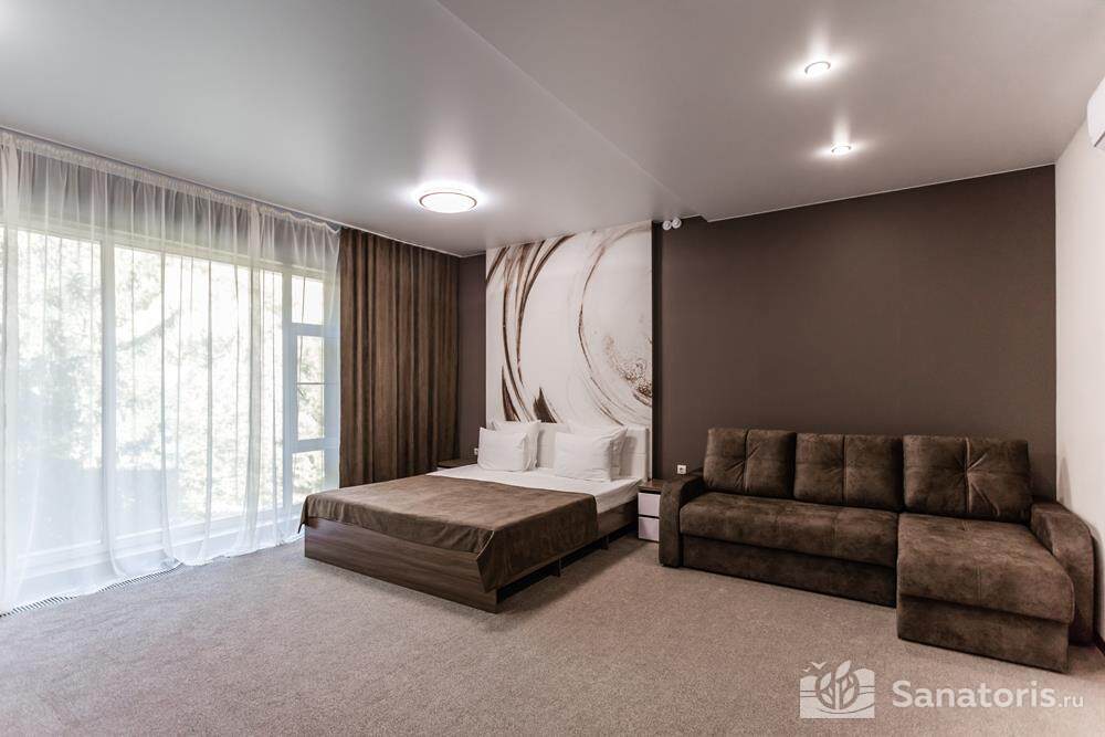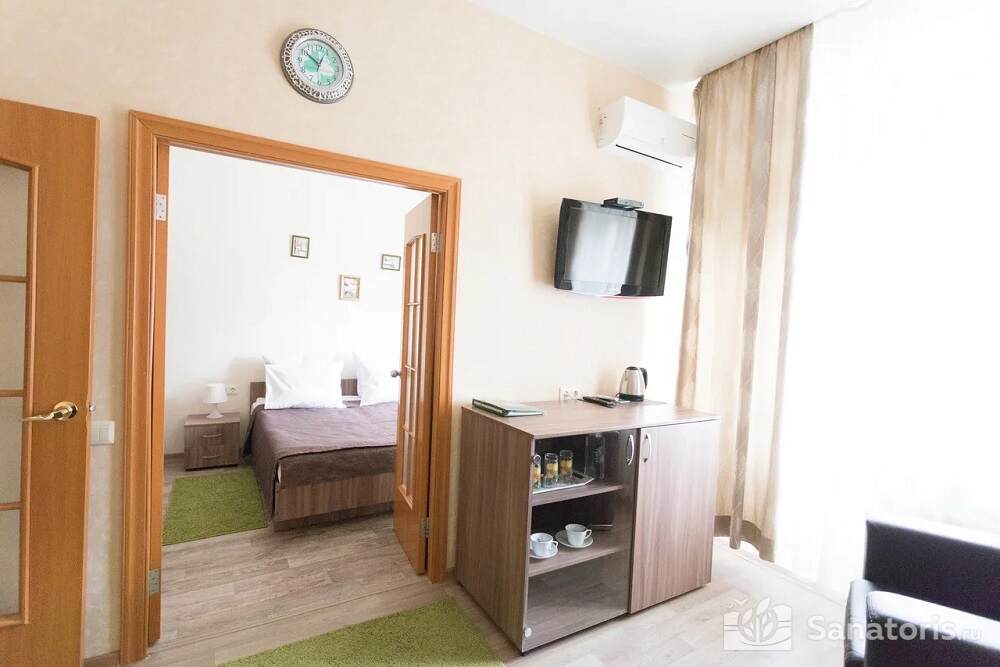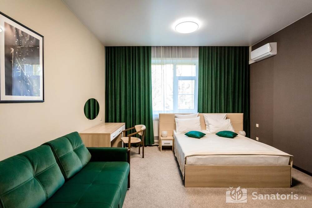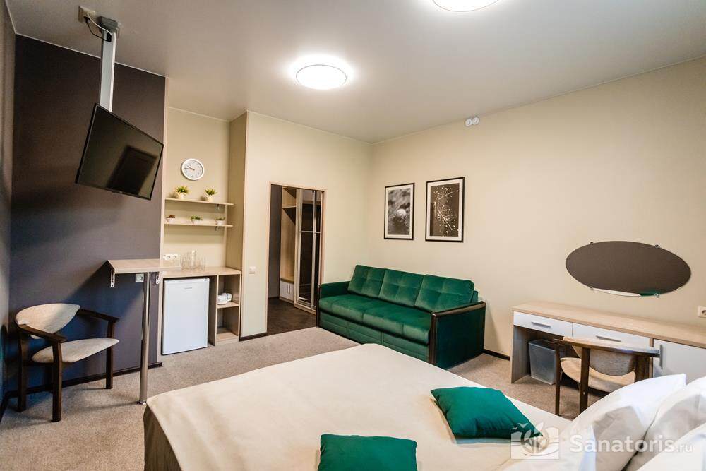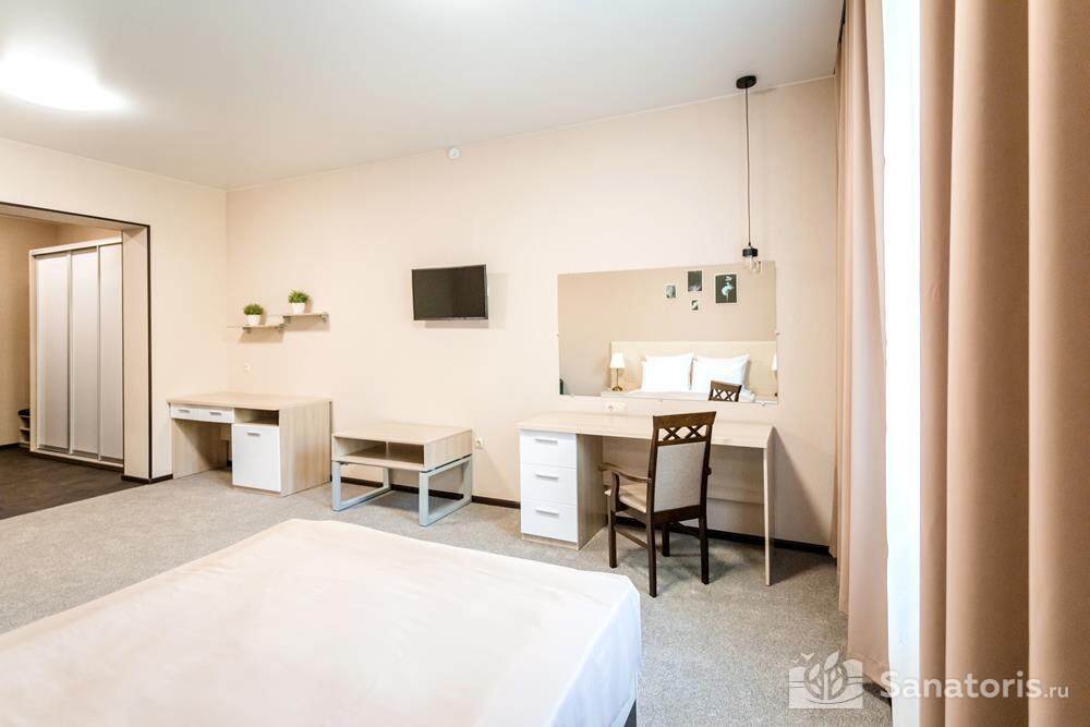 Гости санатория могут выбрать номер по вкусу и бюджету. Здесь есть одноместные апартаменты класса «эконом», а так же комфортабельные номера класса «люкс». Гости комплекса могут пользоваться бесплатным Интернетом. В каждом номере есть современная мебель и бытовая техника.