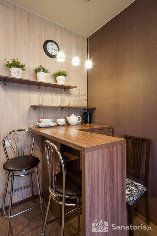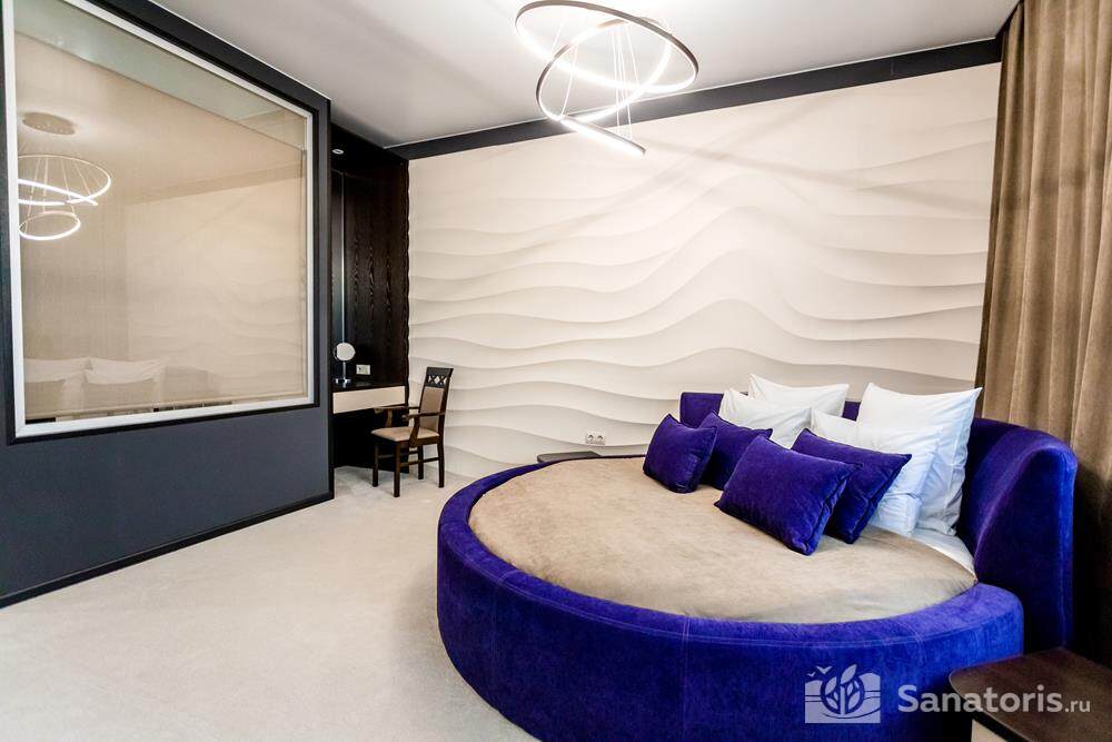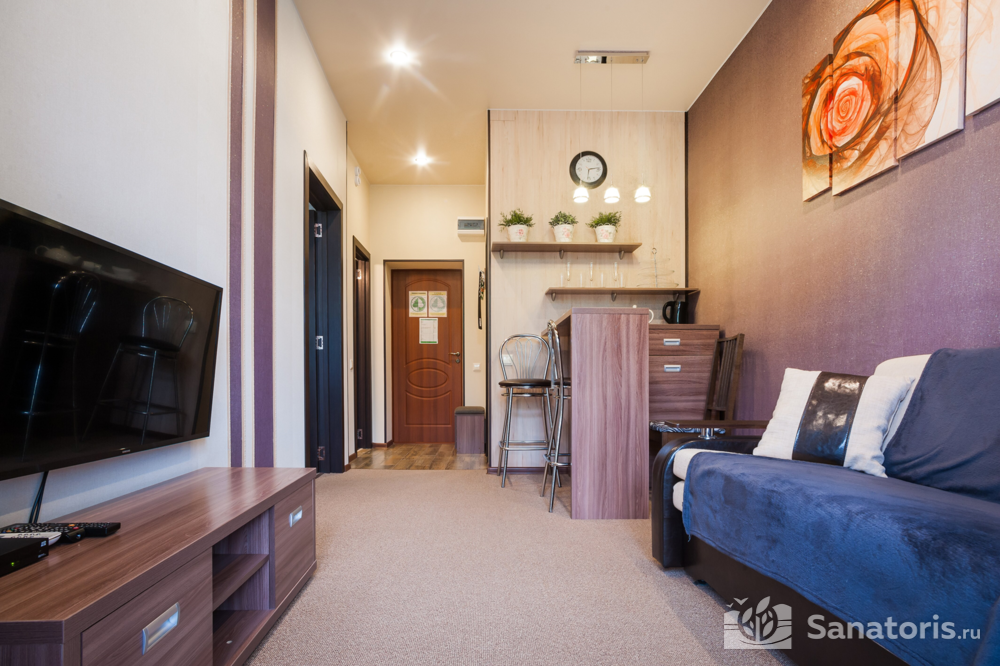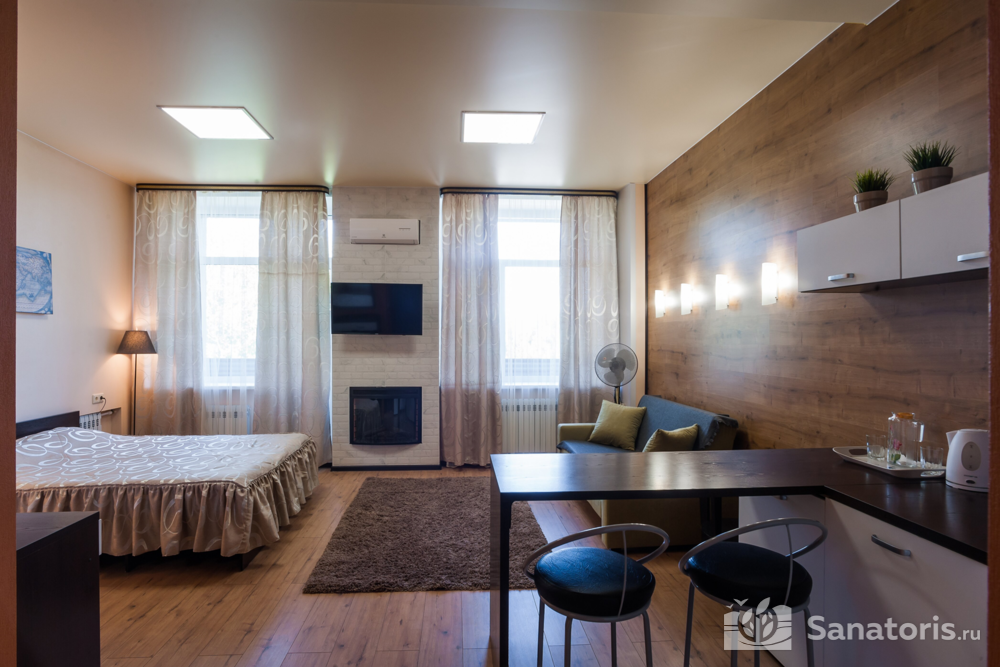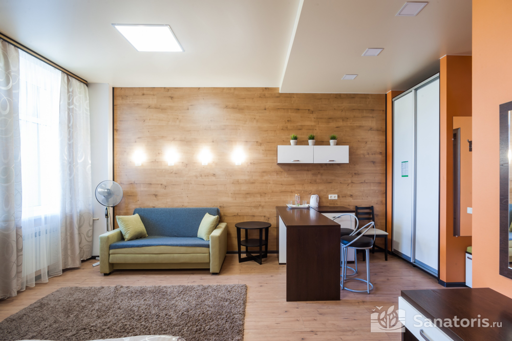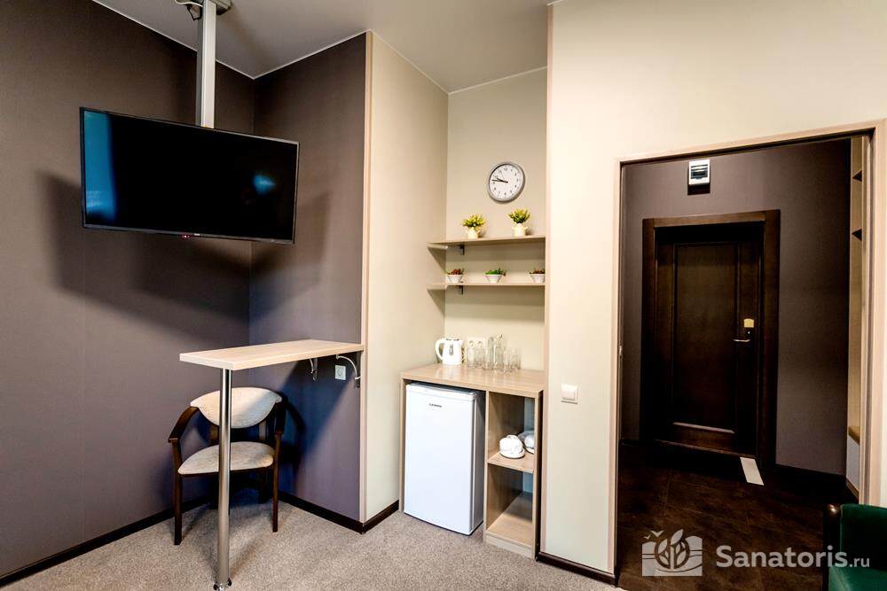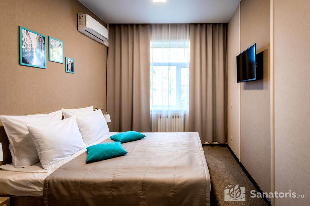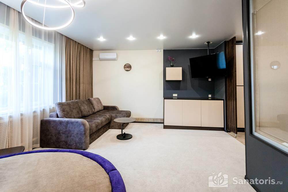 Гости санатория могут выбрать номер по вкусу и бюджету. Здесь есть одноместные апартаменты класса «эконом», а так же комфортабельные номера класса «люкс». Гости комплекса могут пользоваться бесплатным Интернетом. В каждом номере есть современная мебель и бытовая техника.